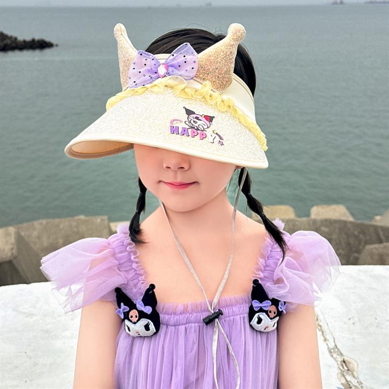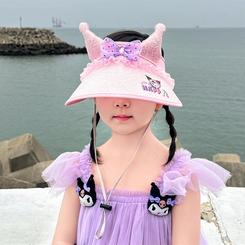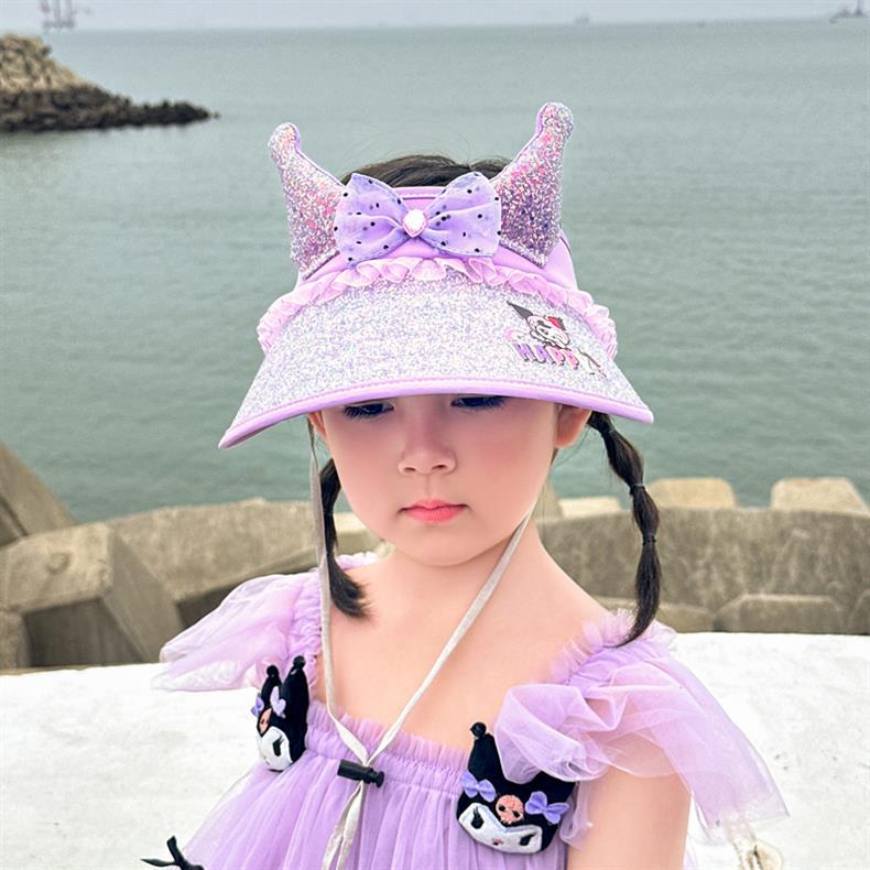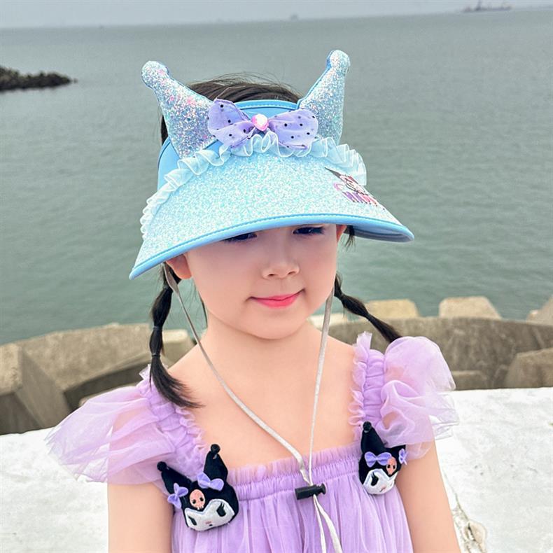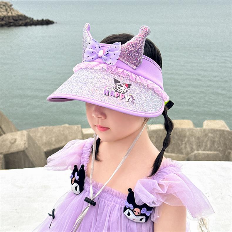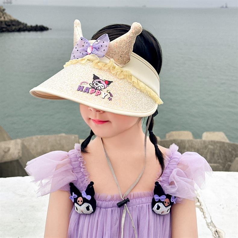 여름 Kuromi 어린이 태양 보호 모자 소녀 공주 만화 빈 모자 소녀 충전식 팬 태양 모자스토어 가기