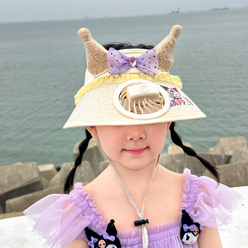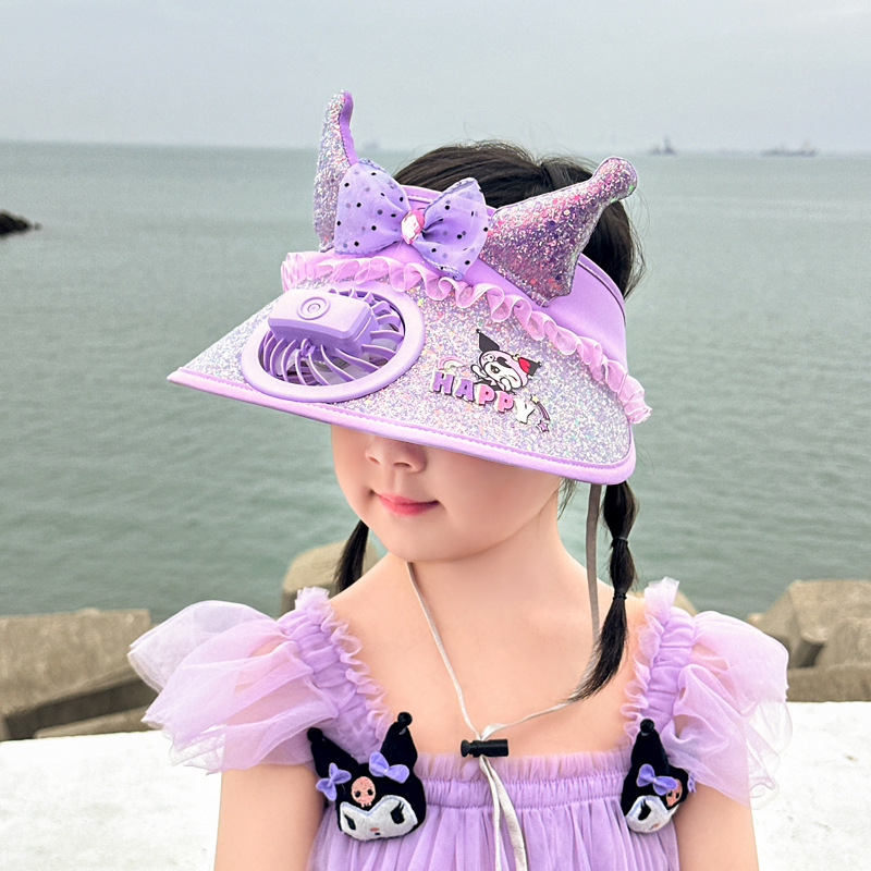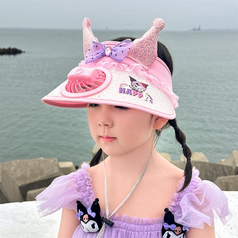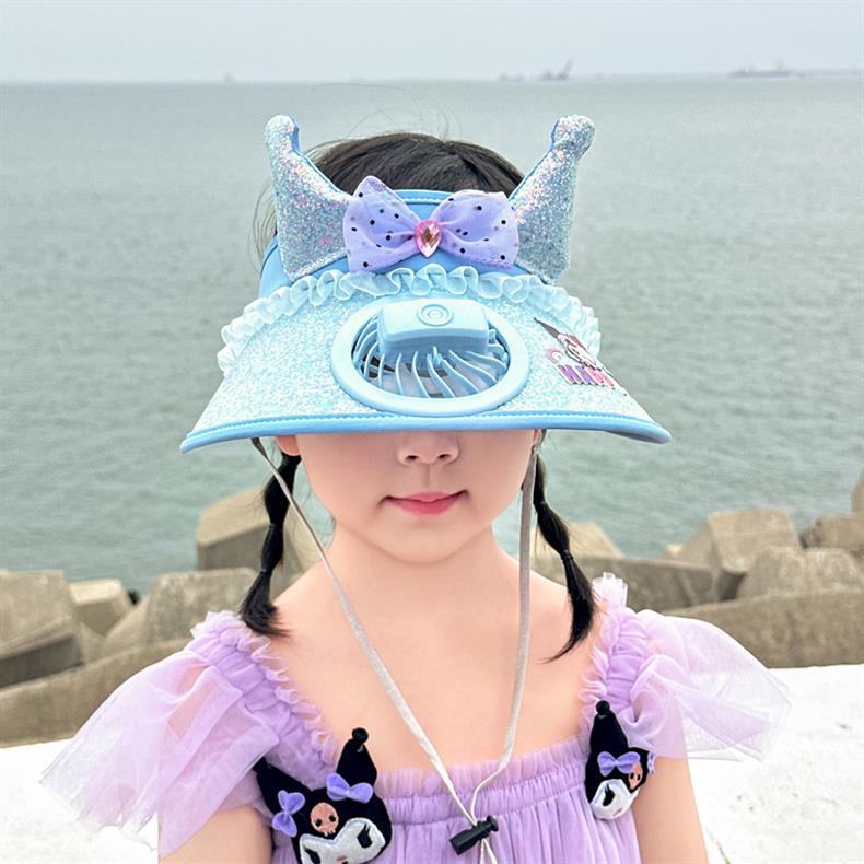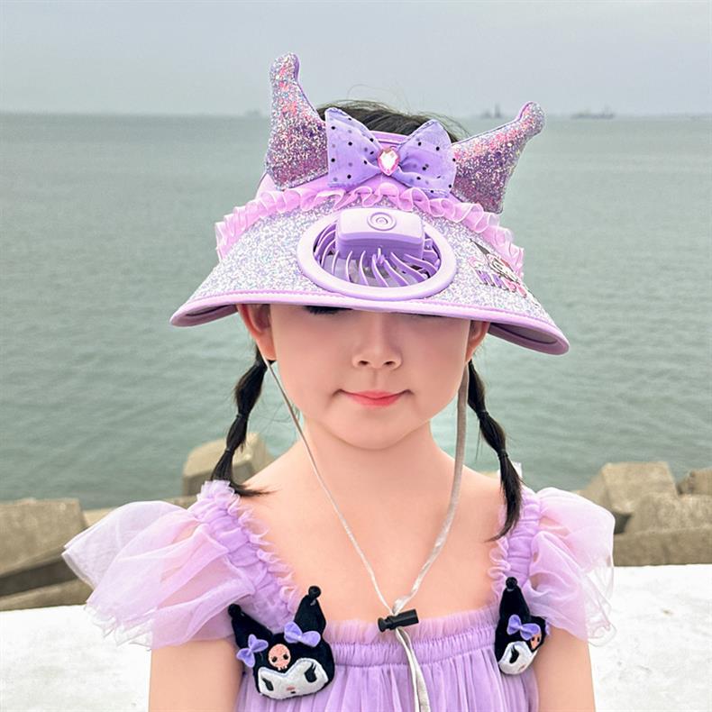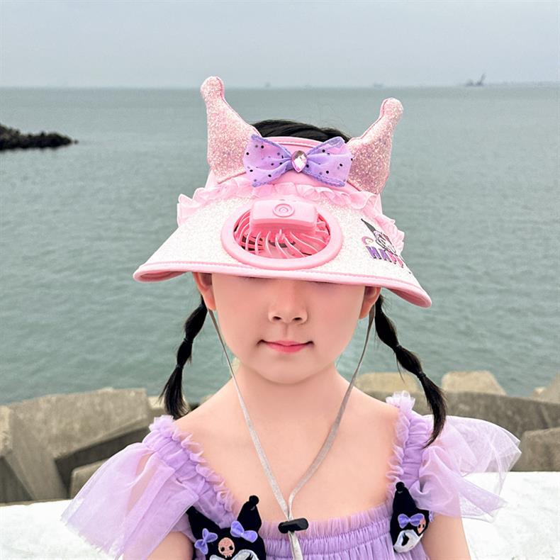 여름 Kuromi 어린이 태양 보호 모자 소녀 공주 만화 빈 모자 소녀 충전식 팬 태양 모자