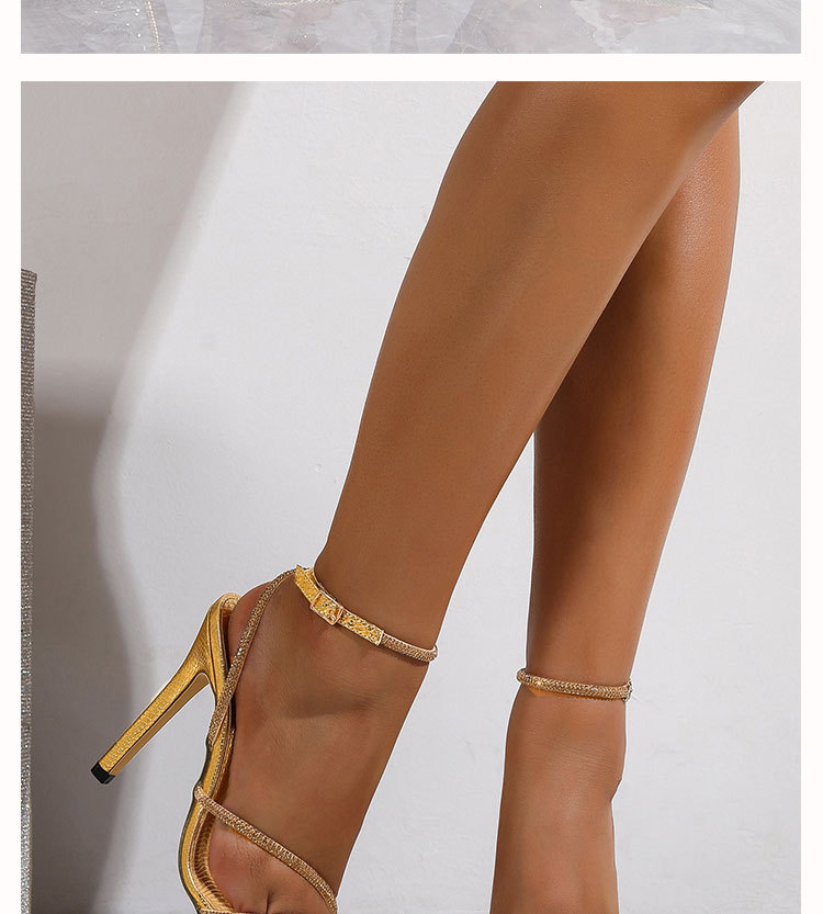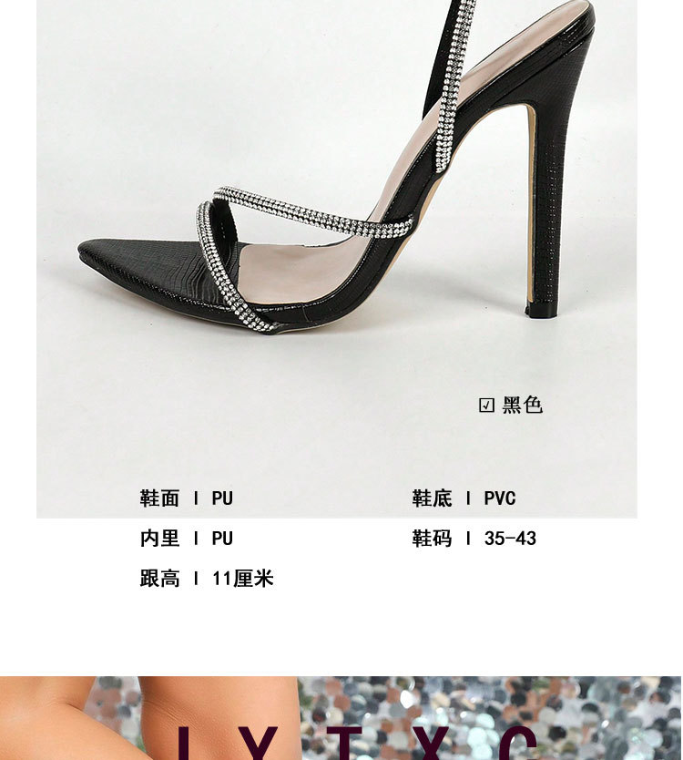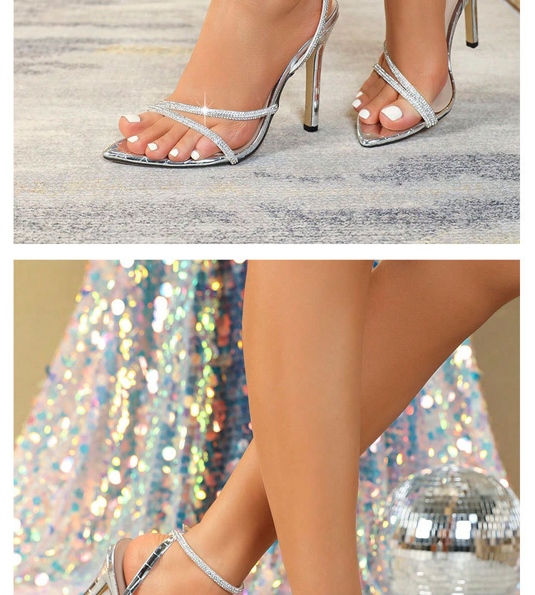 스팟 크로스보더 유럽과 미국 여성의 새로운 스타일 라인스톤 레이스 업 크로스백 스트랩 포인티드 토 오픈 토 스틸레토 샌들 여성화