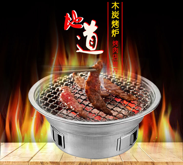 둥근 숯불 그릴 그릴 그릴 한국식 스테인레스 스틸 가정용 상업용 숯불 그릴 그릴 메쉬 장착 가능스토어 가기