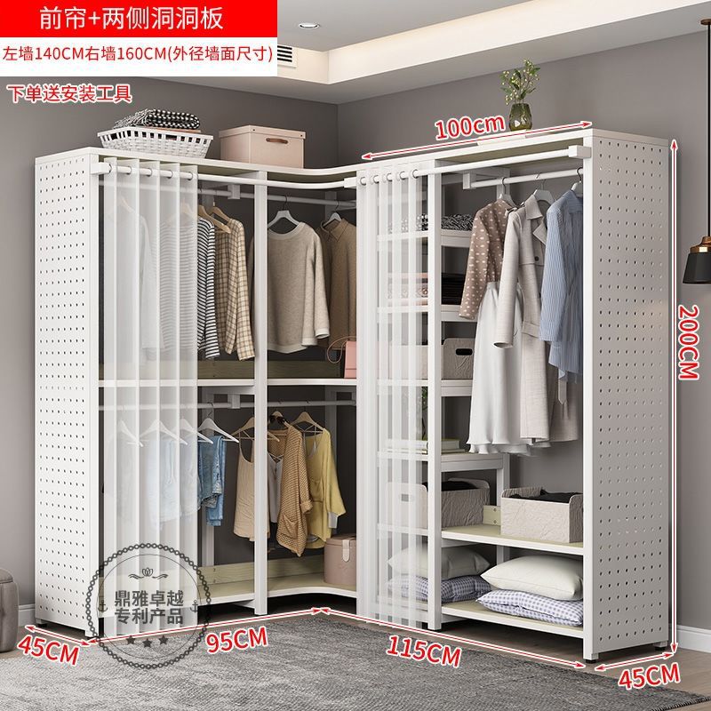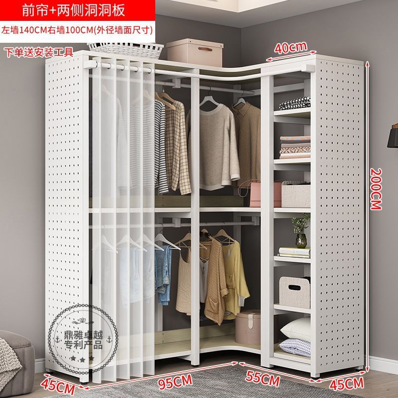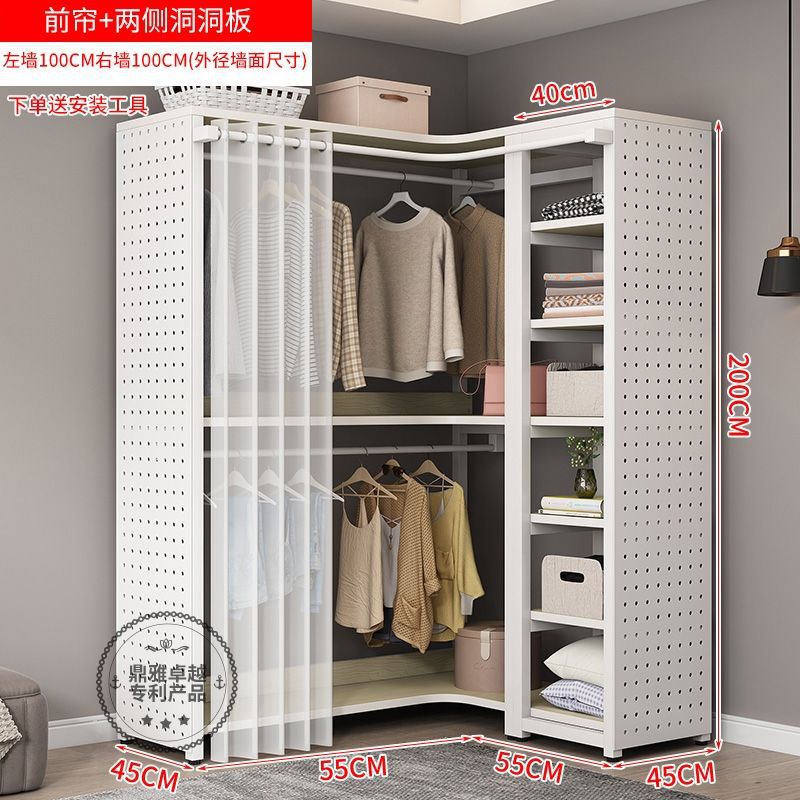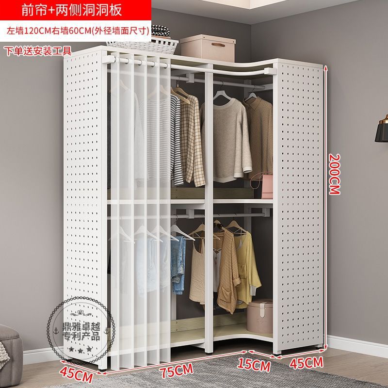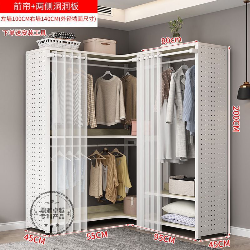 워크인 옷장 코너 금속 옷걸이 바닥에서 천장까지 침실 구멍 보드 옷걸이 수납 선반 옷장 홈스토어 가기