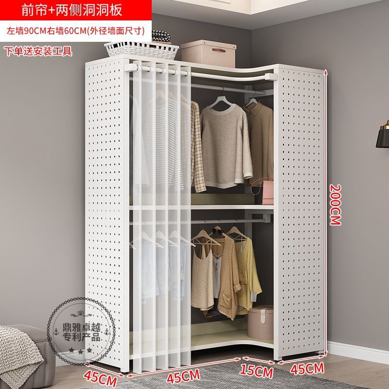워크인 옷장 코너 금속 옷걸이 바닥에서 천장까지 침실 구멍 보드 옷걸이 수납 선반 옷장 홈