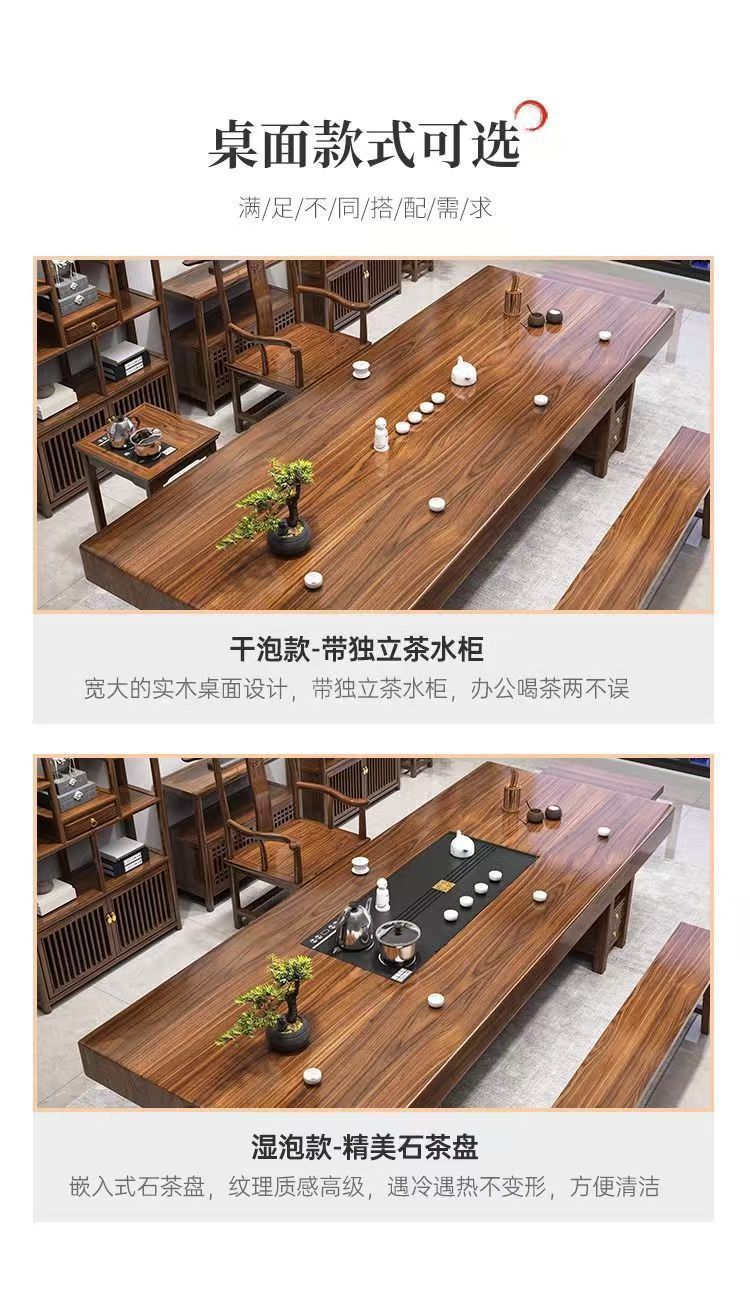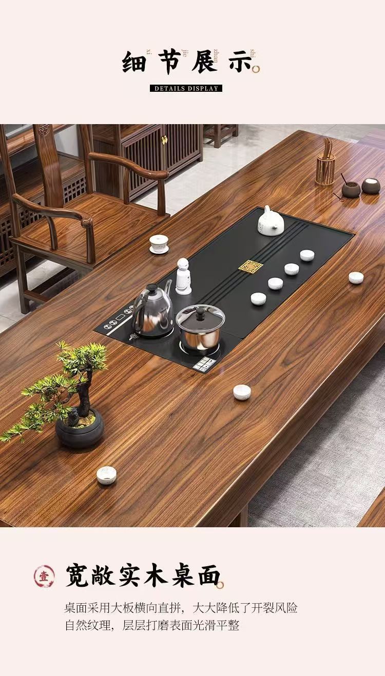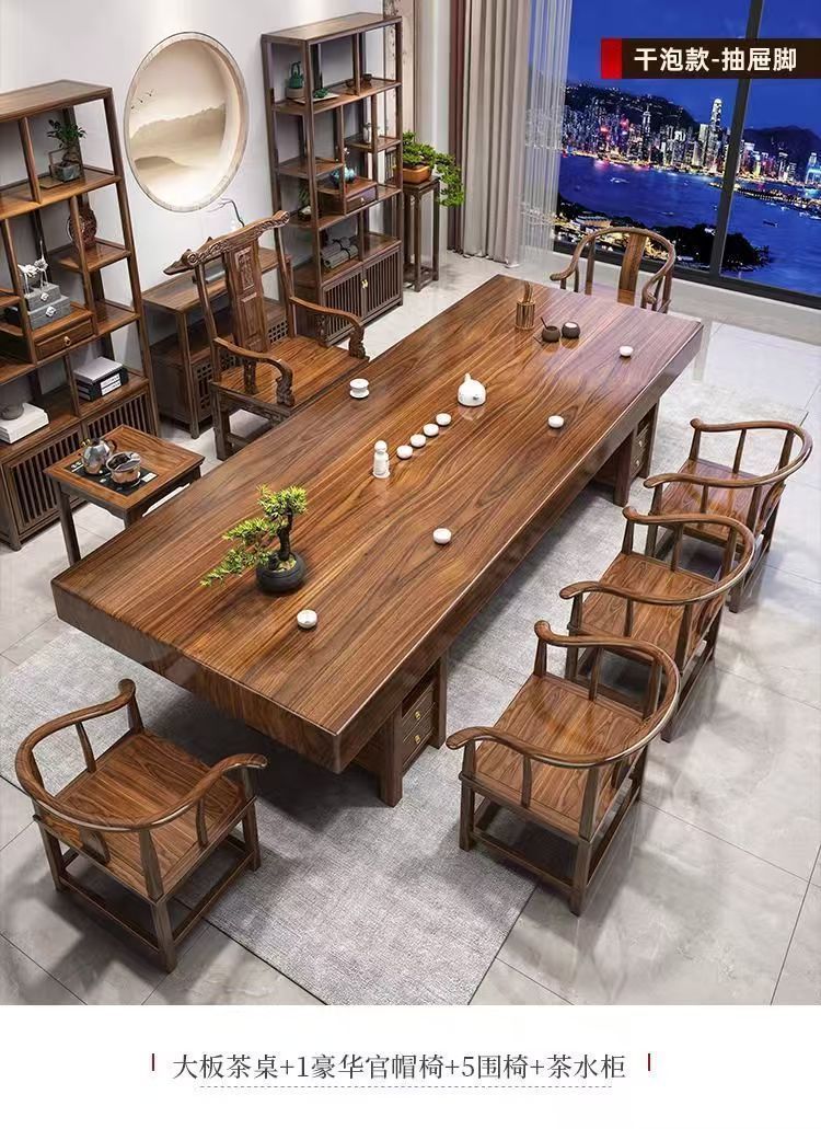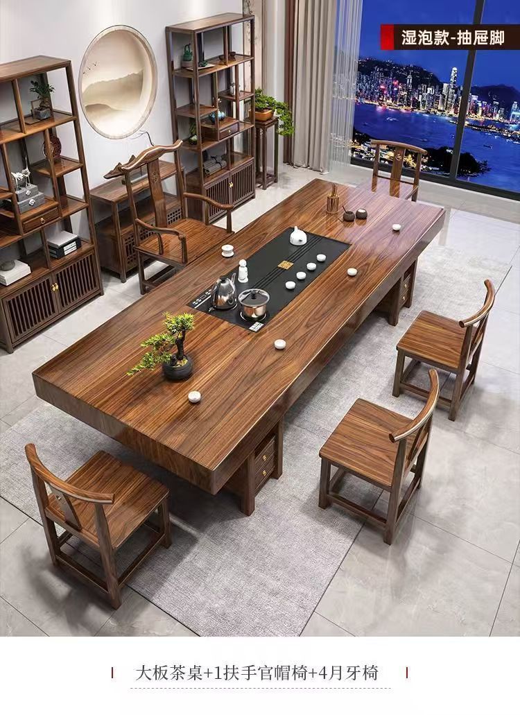 단단한 나무 대형 보드 티 테이블과 의자 조합 중국 스타일 홈 티 테이블 차 만들기 사무실 통나무 티 테이블 세트