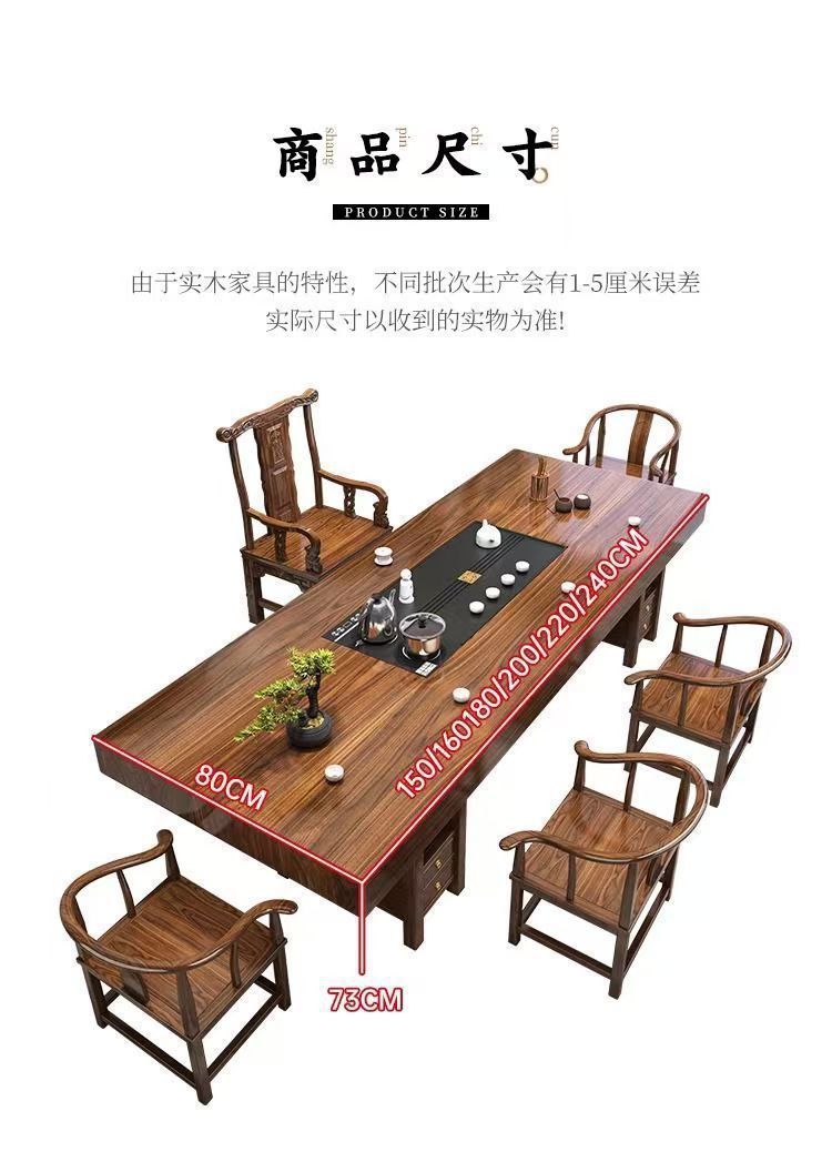 단단한 나무 대형 보드 티 테이블과 의자 조합 중국 스타일 홈 티 테이블 차 만들기 사무실 통나무 티 테이블 세트스토어 가기