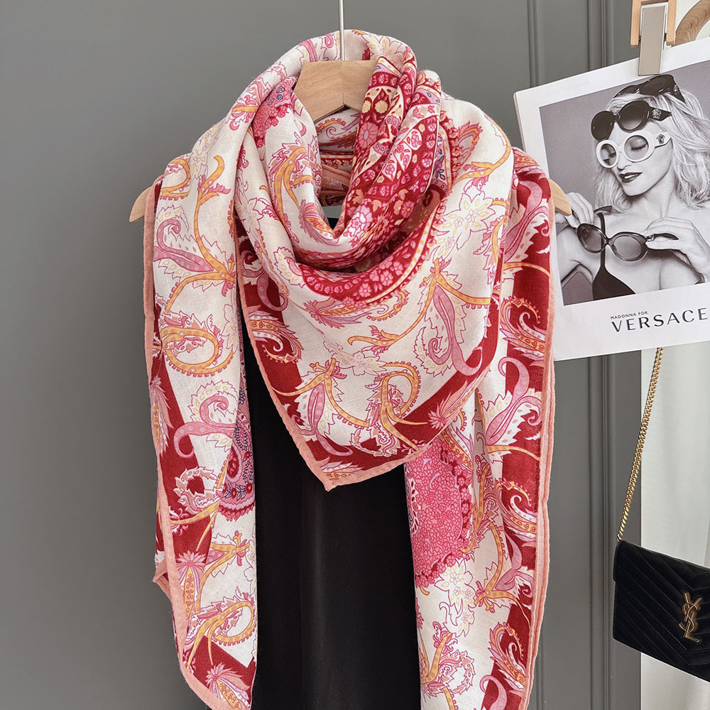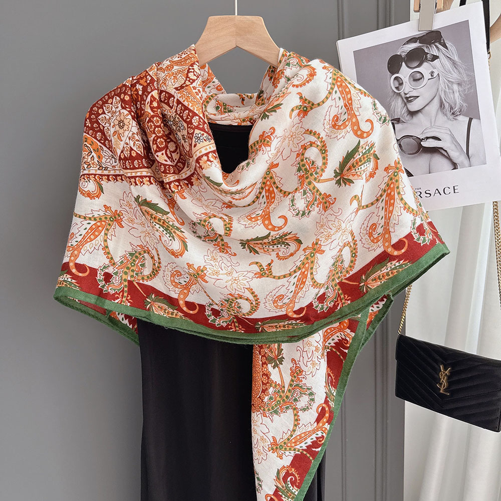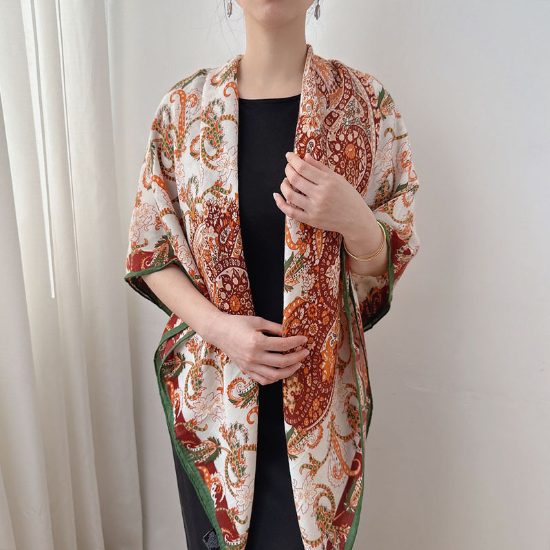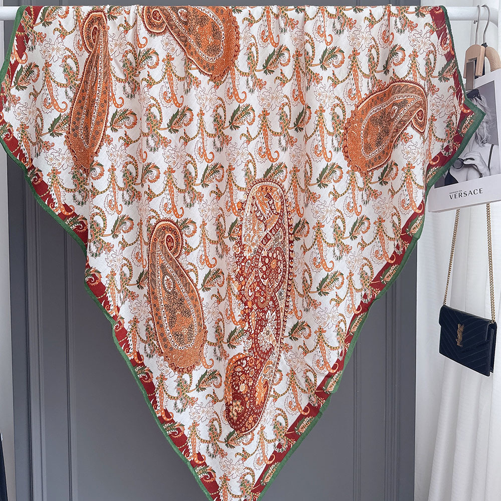 여성을위한 고급 스퀘어 스카프 고품질 대형 스퀘어 스카프 130x130 손으로 꿰맨 컬러 매칭 캐슈 스카프 숄스토어 가기