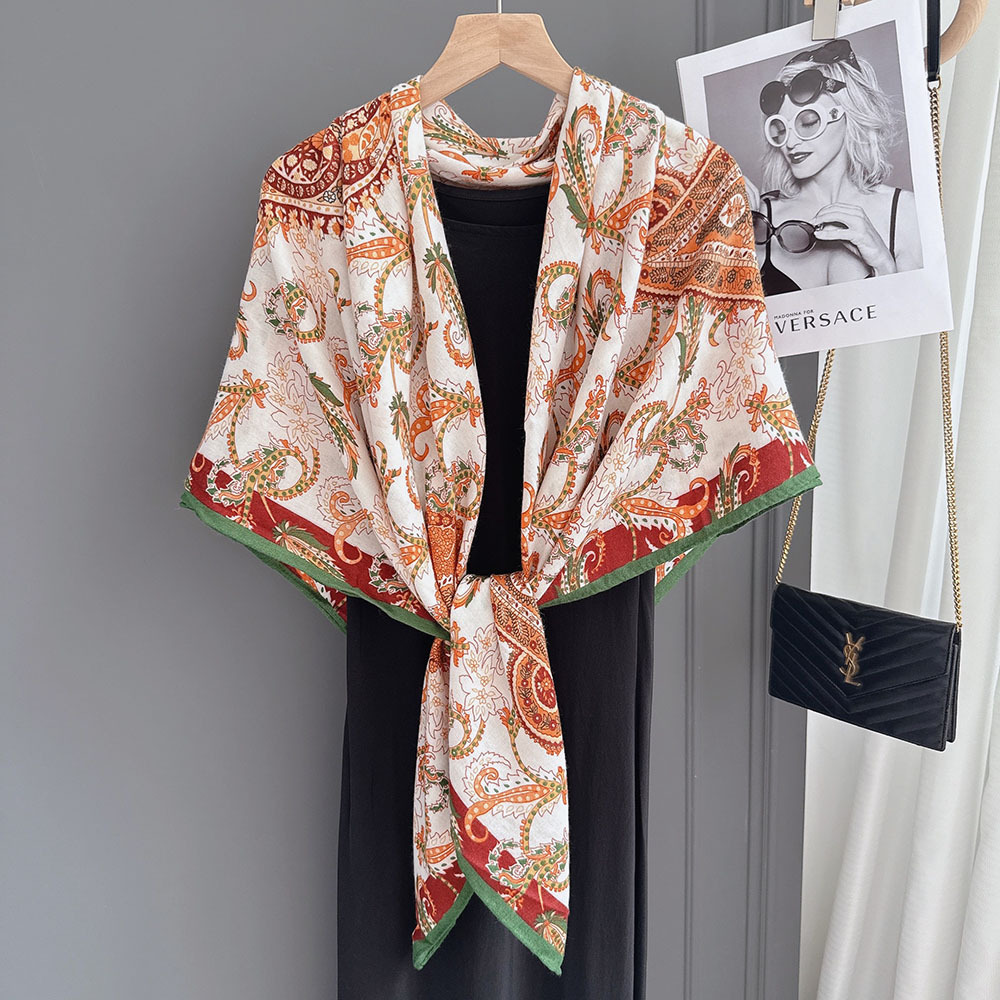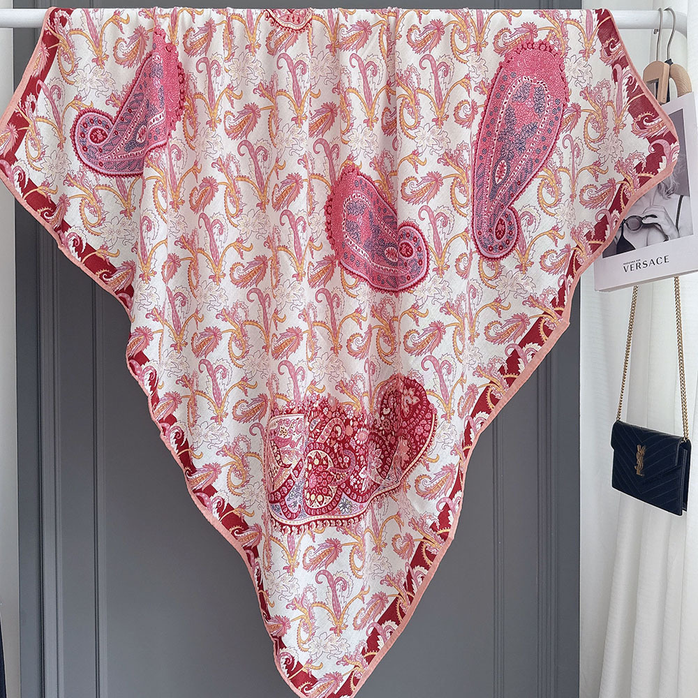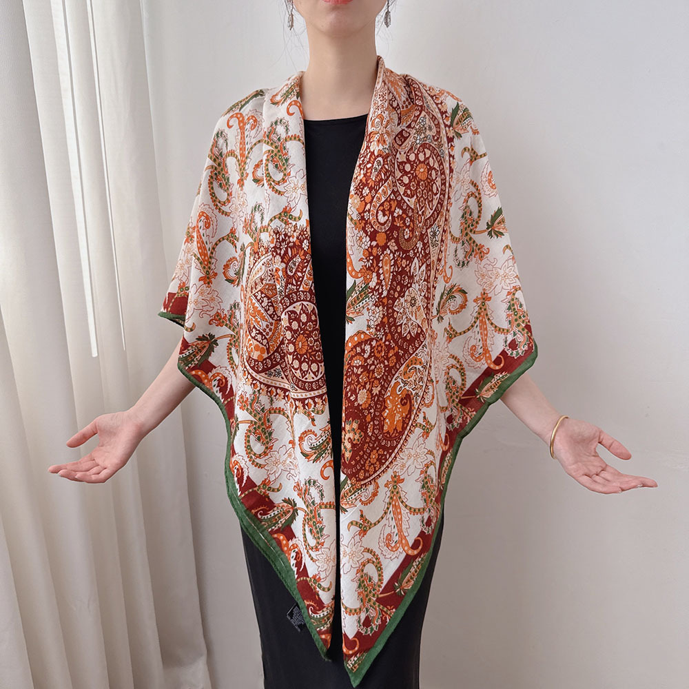 여성을위한 고급 스퀘어 스카프 고품질 대형 스퀘어 스카프 130x130 손으로 꿰맨 컬러 매칭 캐슈 스카프 숄