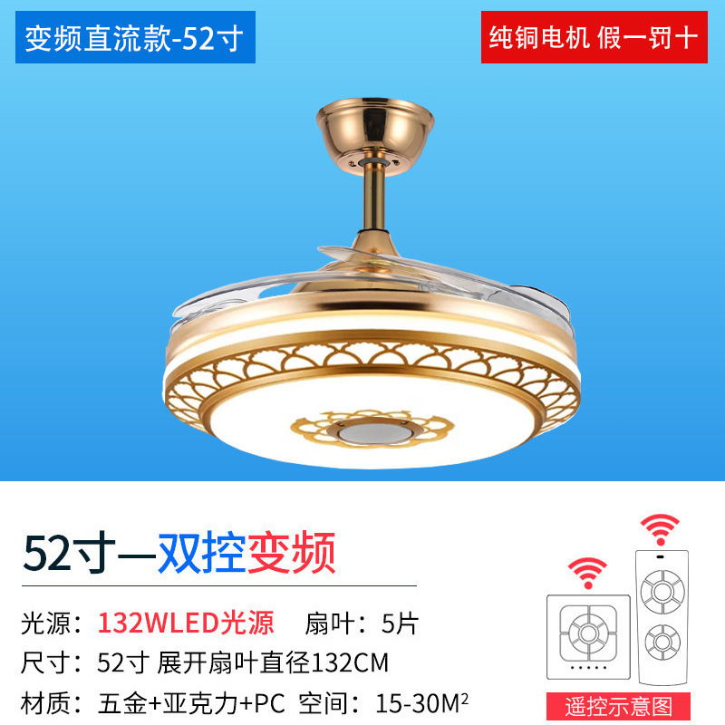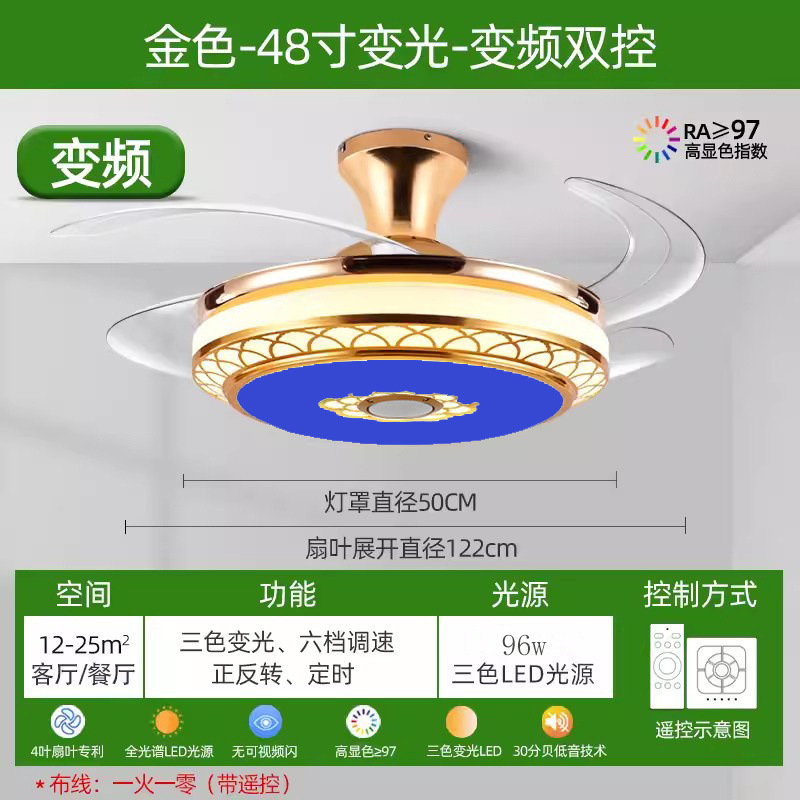 Tiandi Hongci 천장 팬 램프 보이지 않는 팬 램프 레스토랑 침실 샹들리에 조명 천장 팬 홈 램프 팬 통합 팬