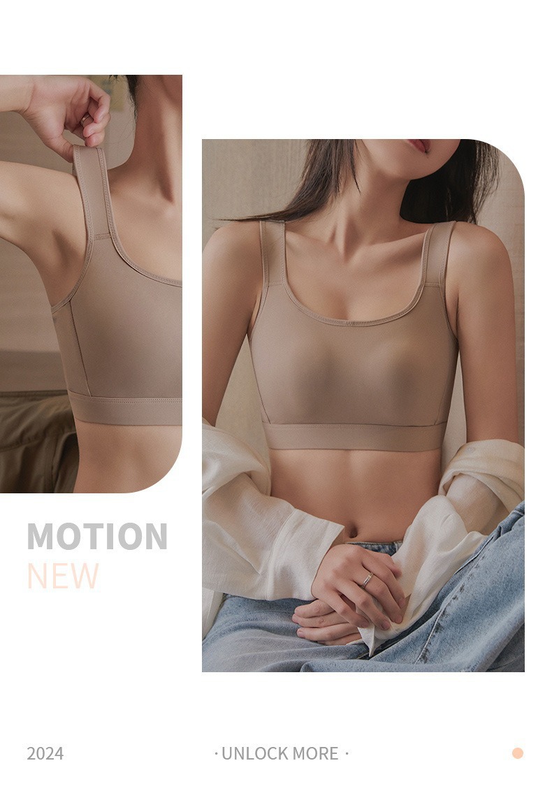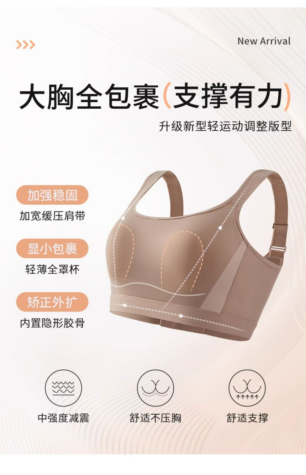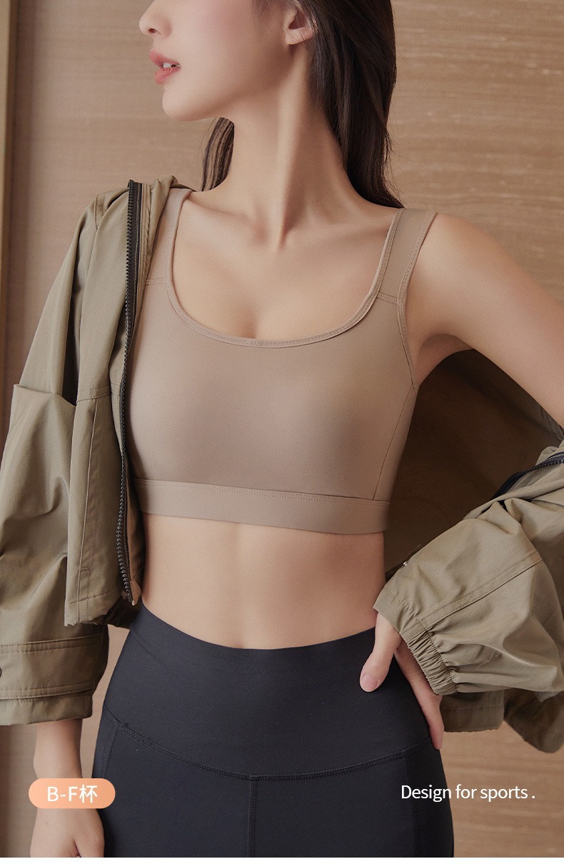 Qianmei 큰 가슴과 작은 가슴을 보여주는 여성용 스포츠 속옷, 흔적 없음, 충격 방지, 풀 컵, 얇은, 안티 다운, 육군 녹색 아몬드 설탕스토어 가기