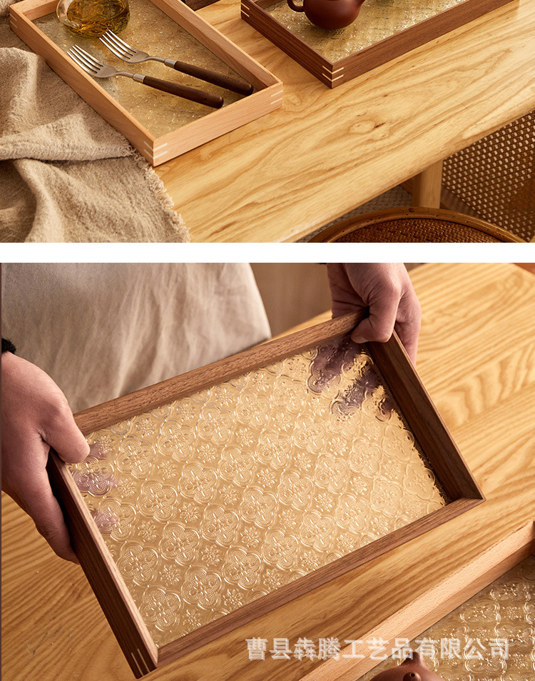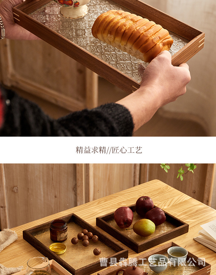이벤트 크로스보더 레트로 베고니아 트레이 너도밤나무 과일 트레이 레트로 티 트레이 아침 식사 트레이 블랙 호두 커피 트레이