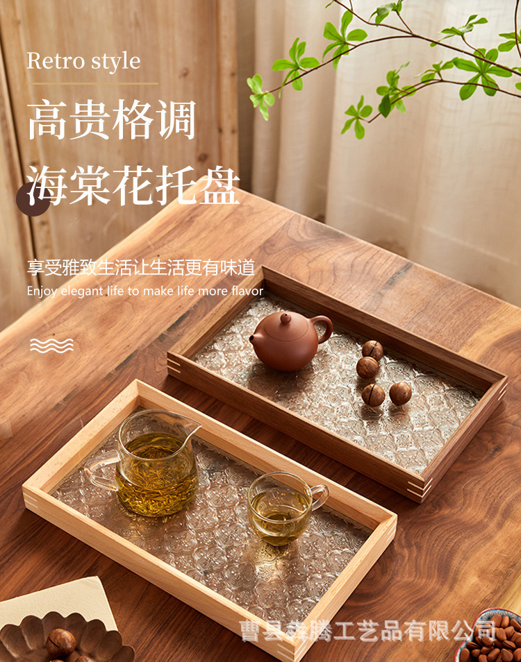 이벤트 크로스보더 레트로 베고니아 트레이 너도밤나무 과일 트레이 레트로 티 트레이 아침 식사 트레이 블랙 호두 커피 트레이스토어 가기