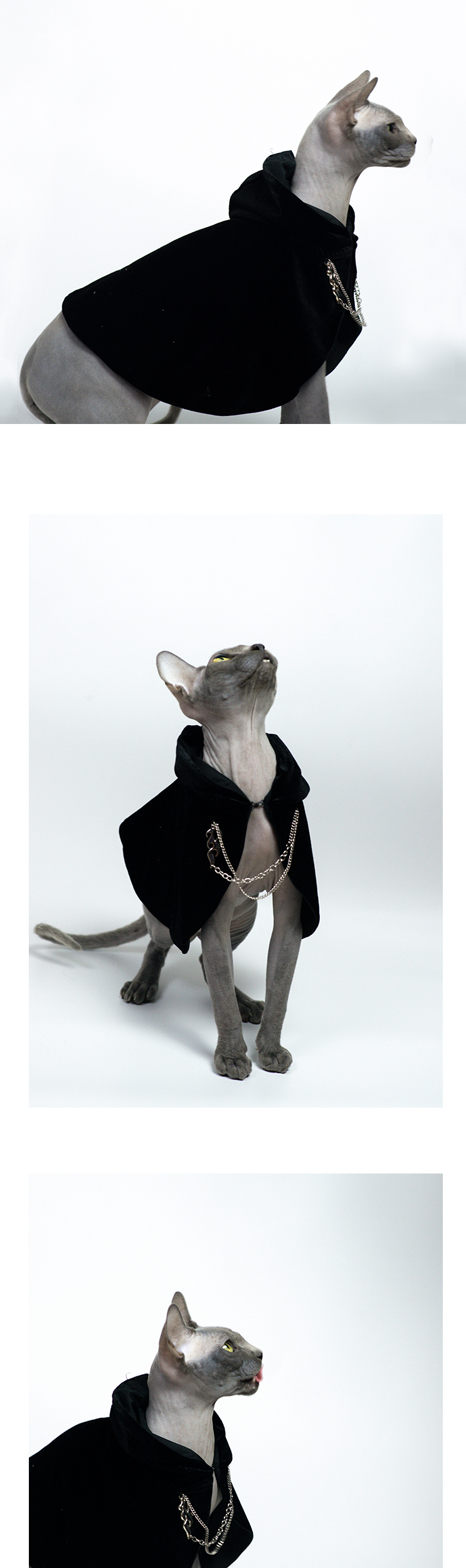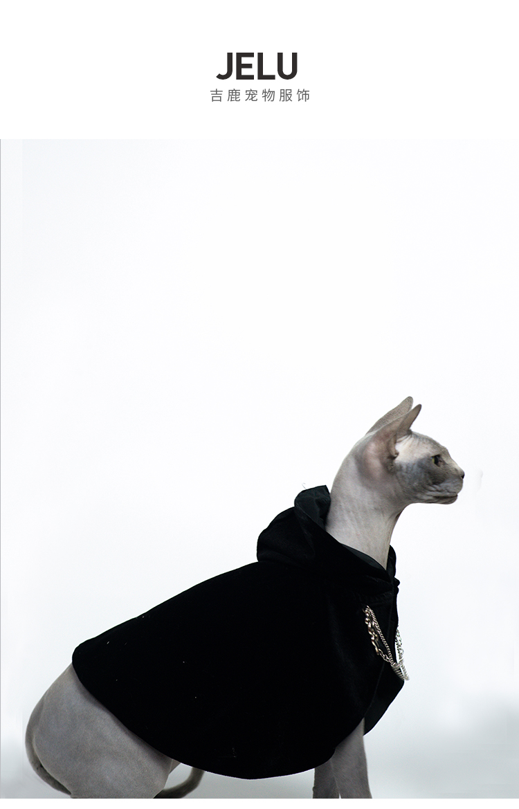 JELU 애완 동물 고양이와 개 옷 망토 중세 궁전 왕자 다크 망토 테디 데본 헤어리스