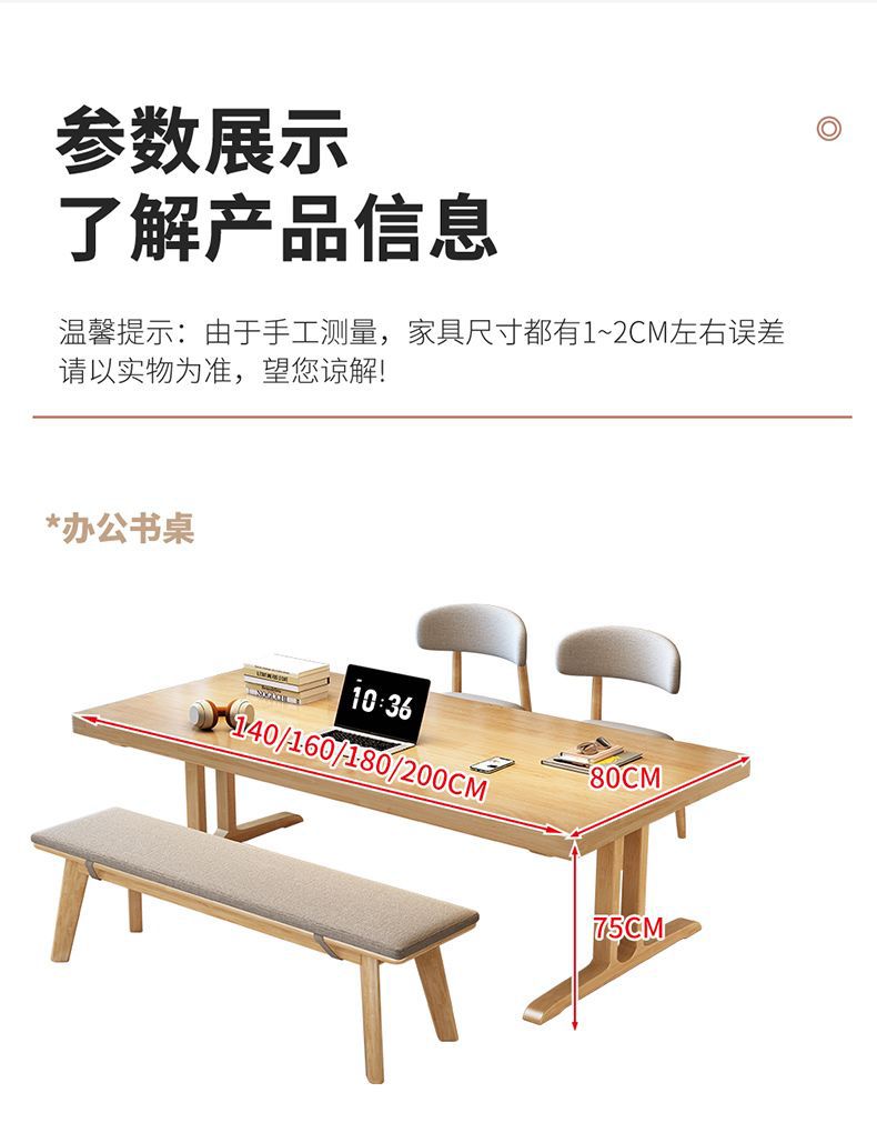 Gejiewei 단단한 나무 대형 책상 컴퓨터 책상 두꺼운 책상 거실 연구 대형 테이블 한 단어 대형 긴 테이블스토어 가기