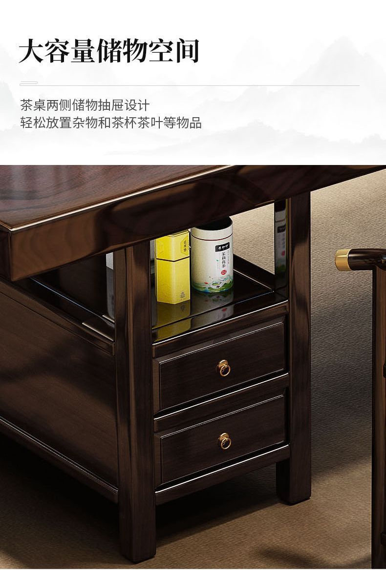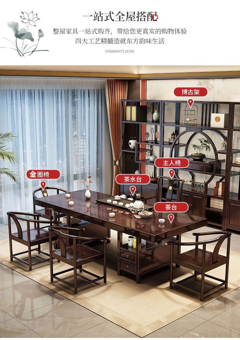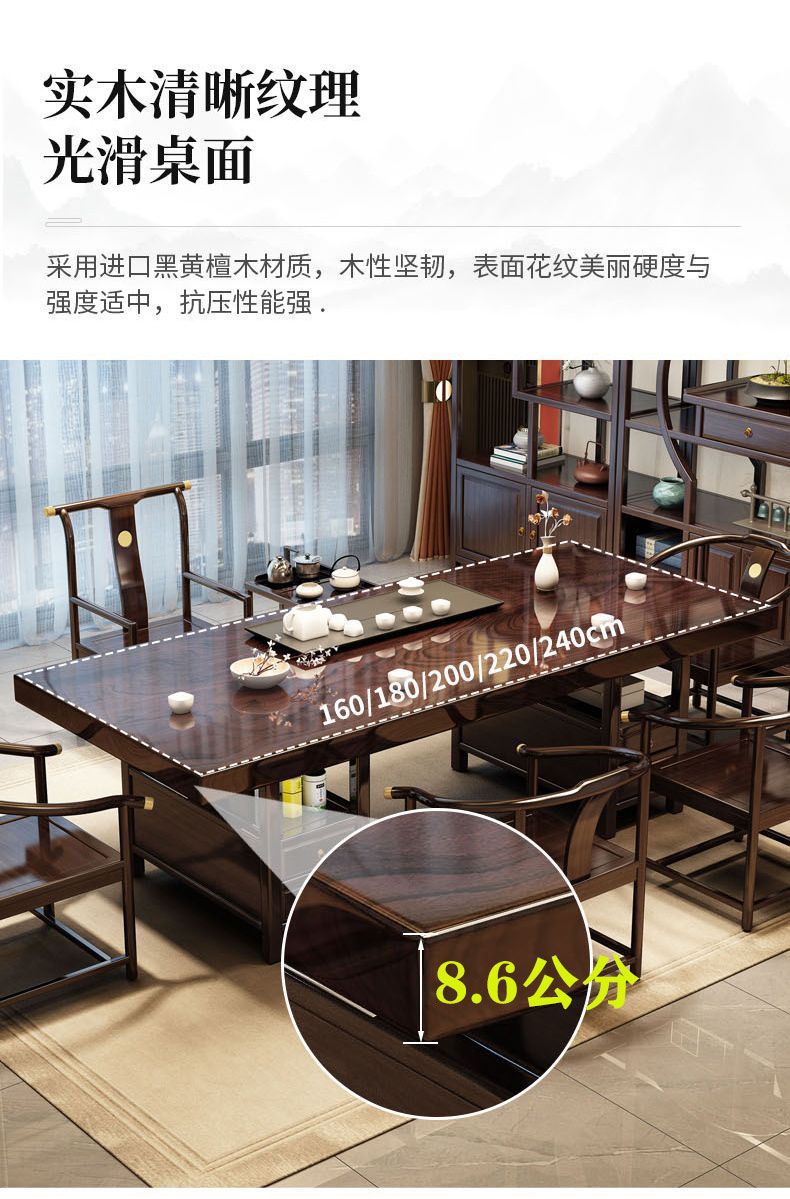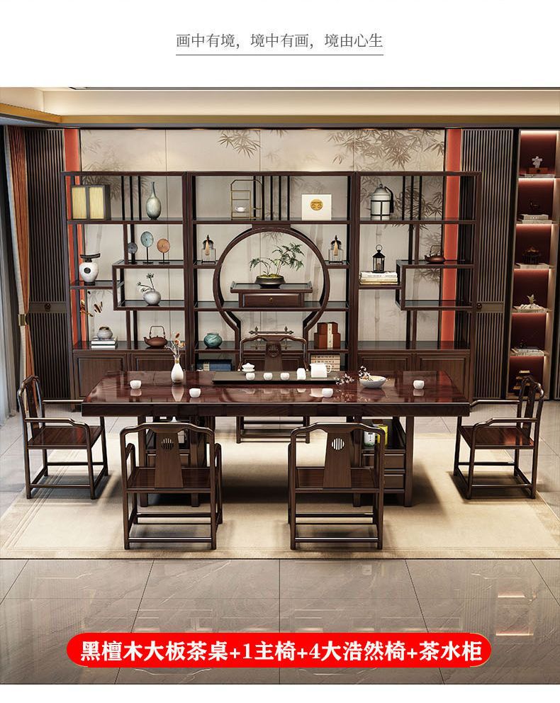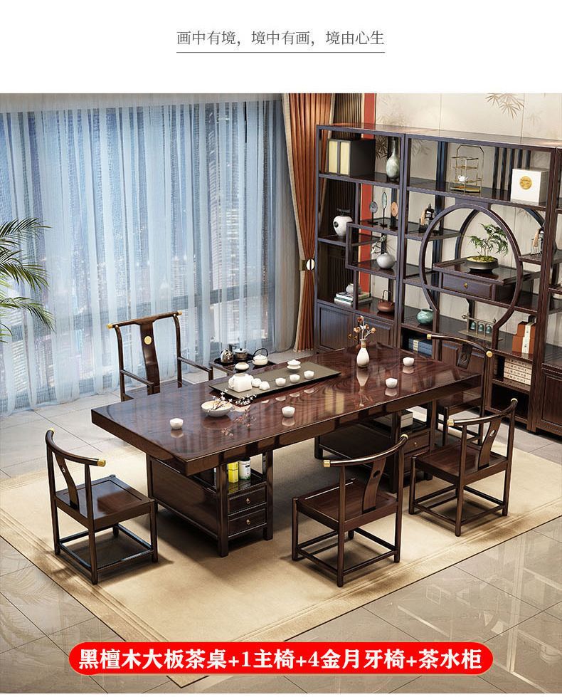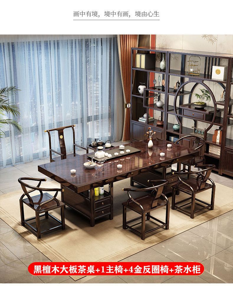 흑단 원목 대형 보드 티 테이블과 의자 조합 새로운 중국 스타일 전체 보드 티 테이블 사무실 이중 목적 테이블 고급 리셉션 테이블스토어 가기