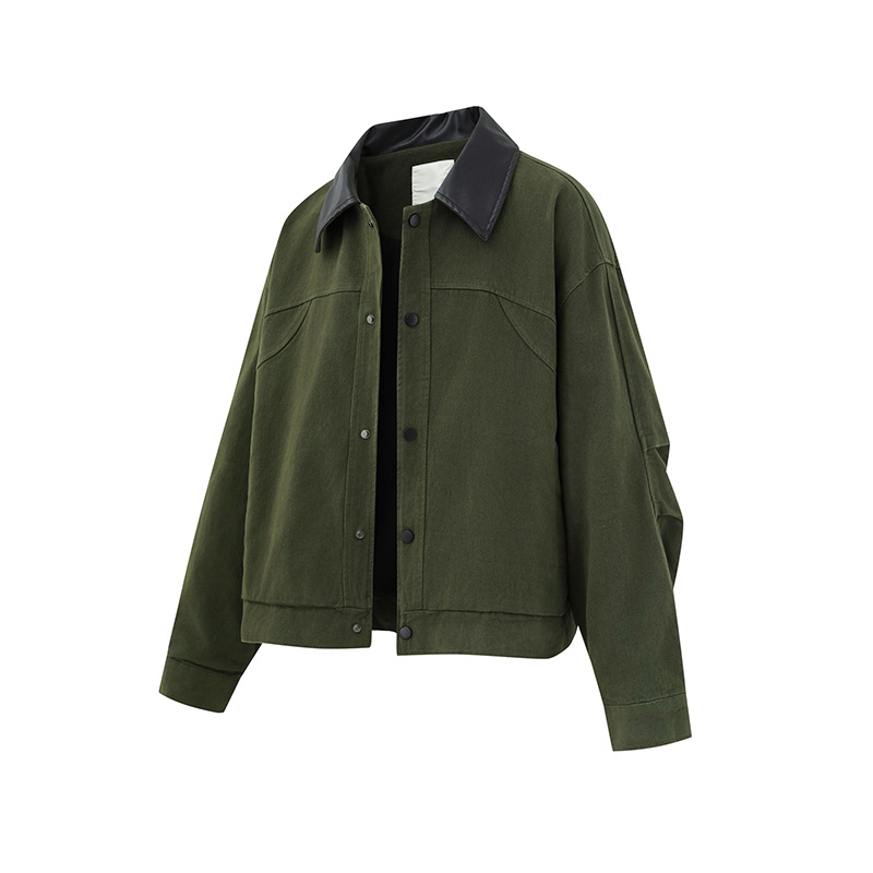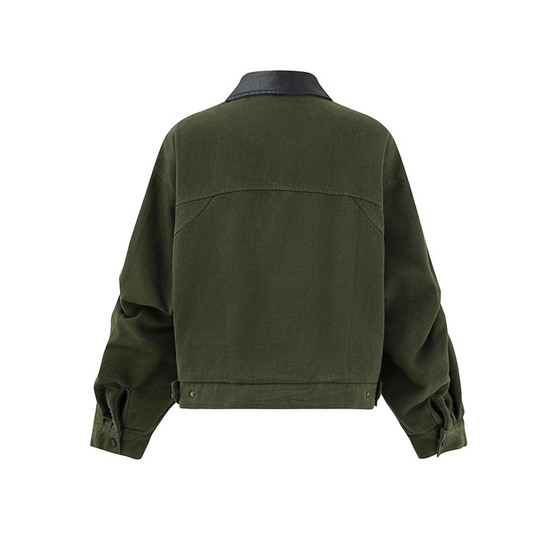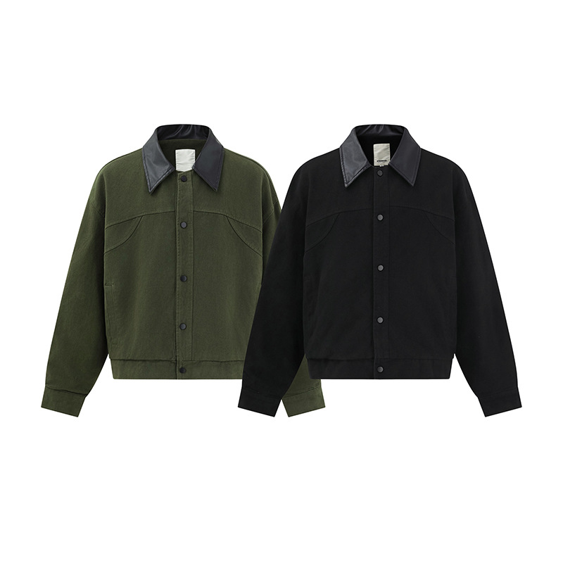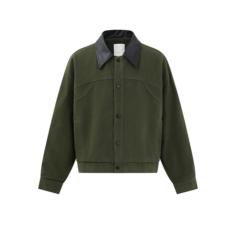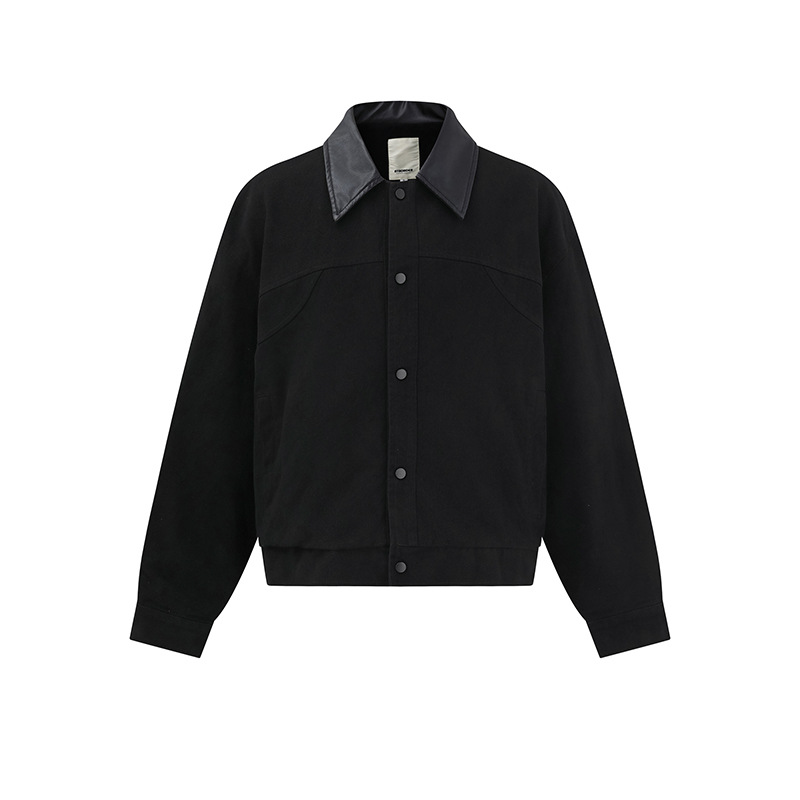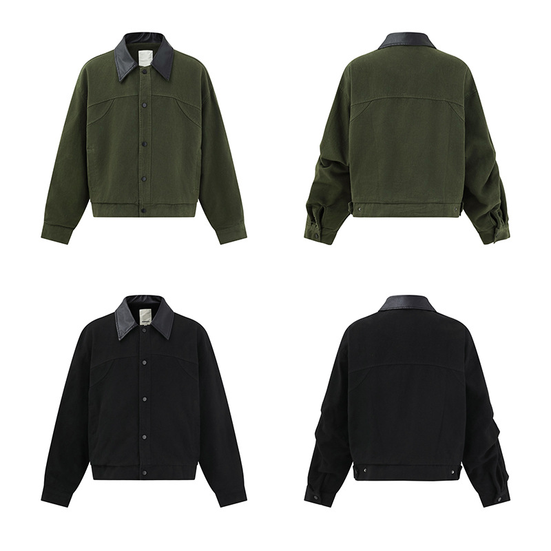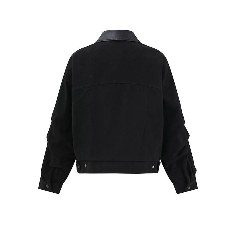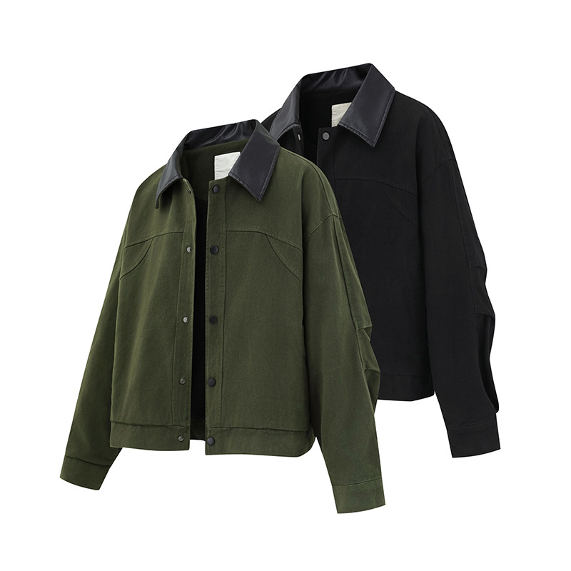 ATBORDER 2025 가을 일본 트렌디 PU 가죽 칼라 봄버 재킷 레트로 하이 엔드 유니섹스 코트스토어 가기