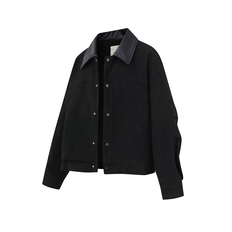 ATBORDER 2025 가을 일본 트렌디 PU 가죽 칼라 봄버 재킷 레트로 하이 엔드 유니섹스 코트