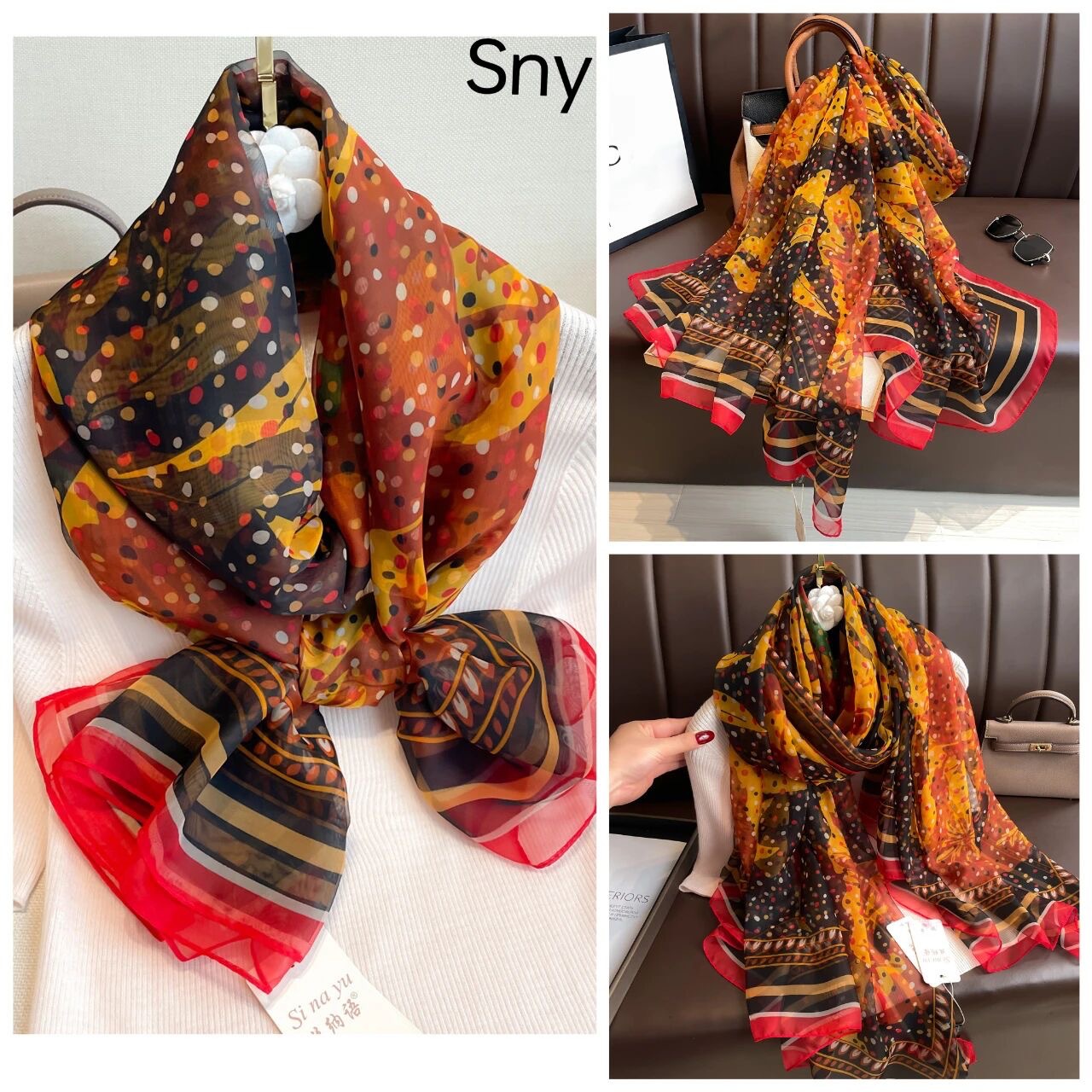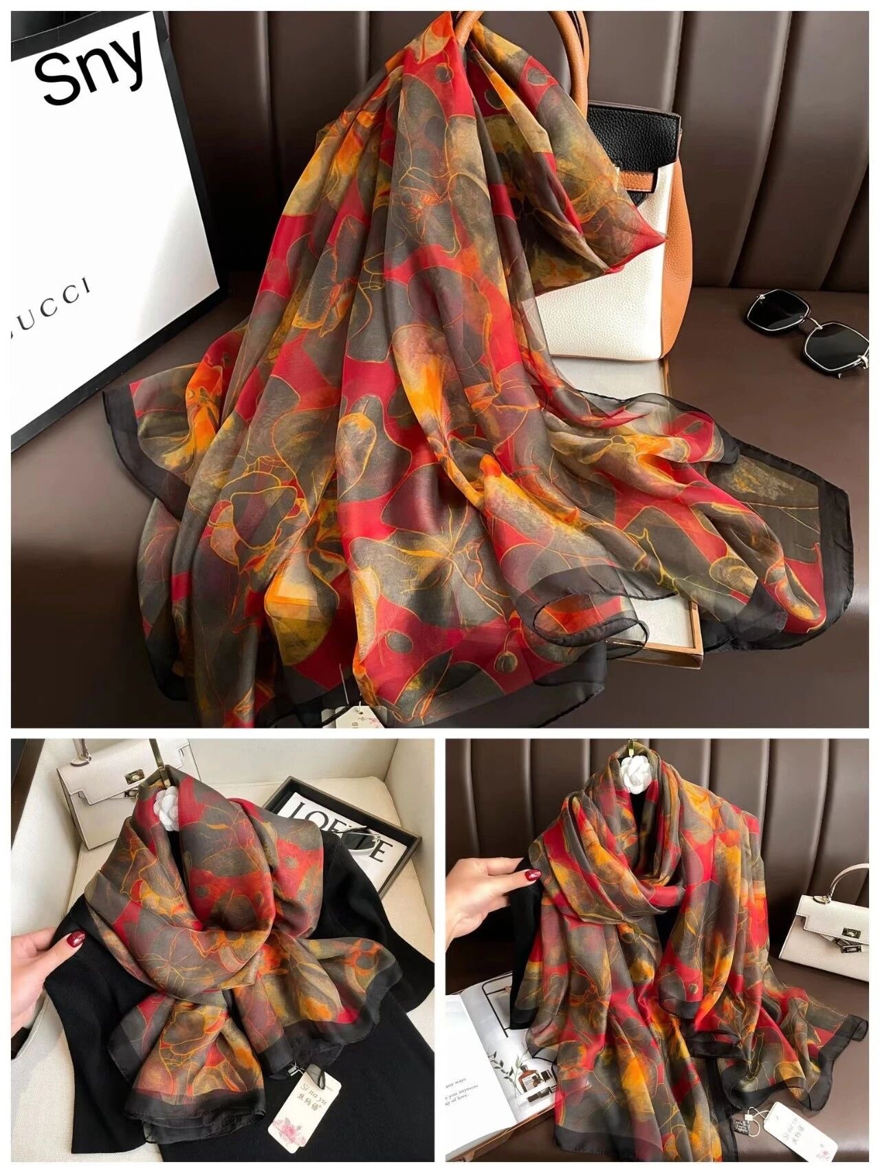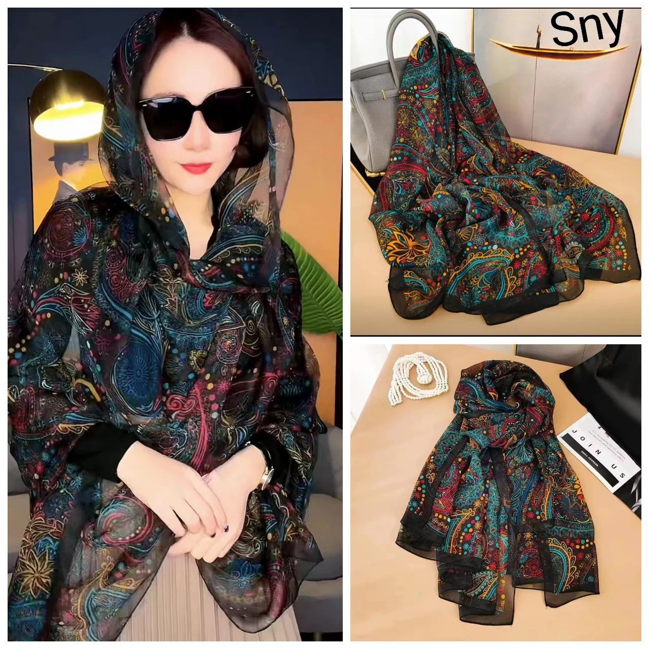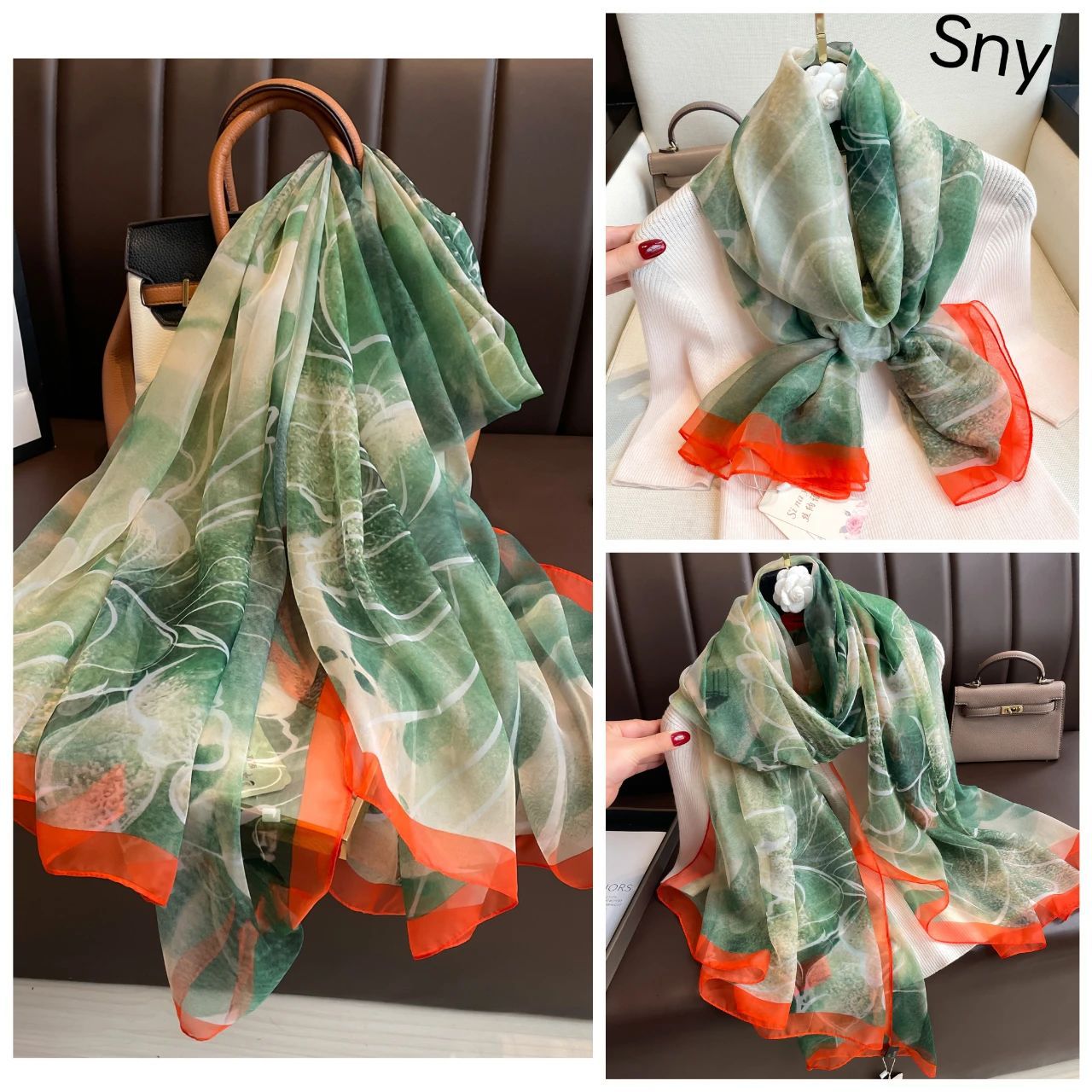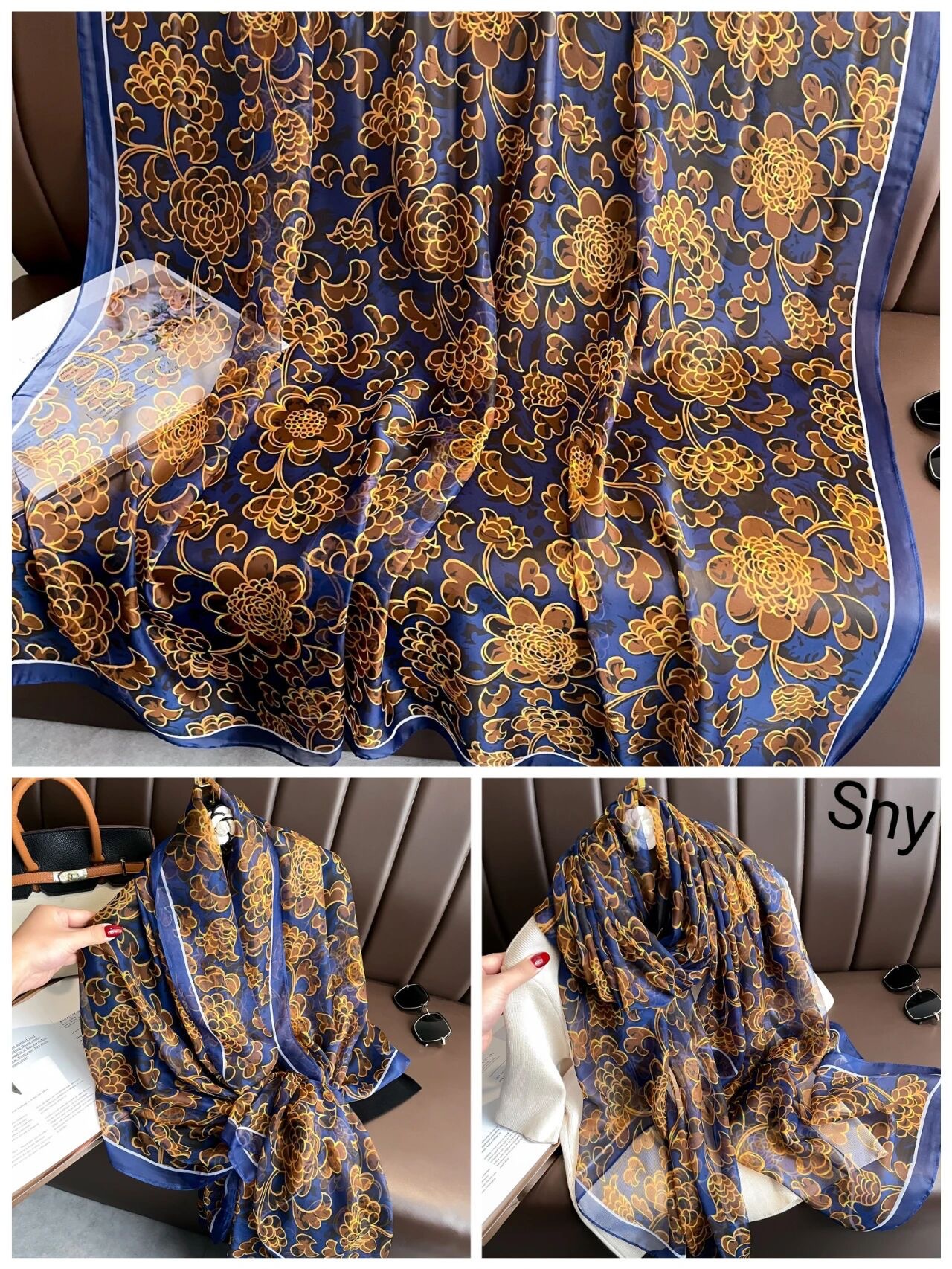 Yorou사 실크 스카프 130*190 가볍고 얇은 자외선 차단 숄 하이엔드 패션 다용도 사계절 프린트 새로운 여성 스카프