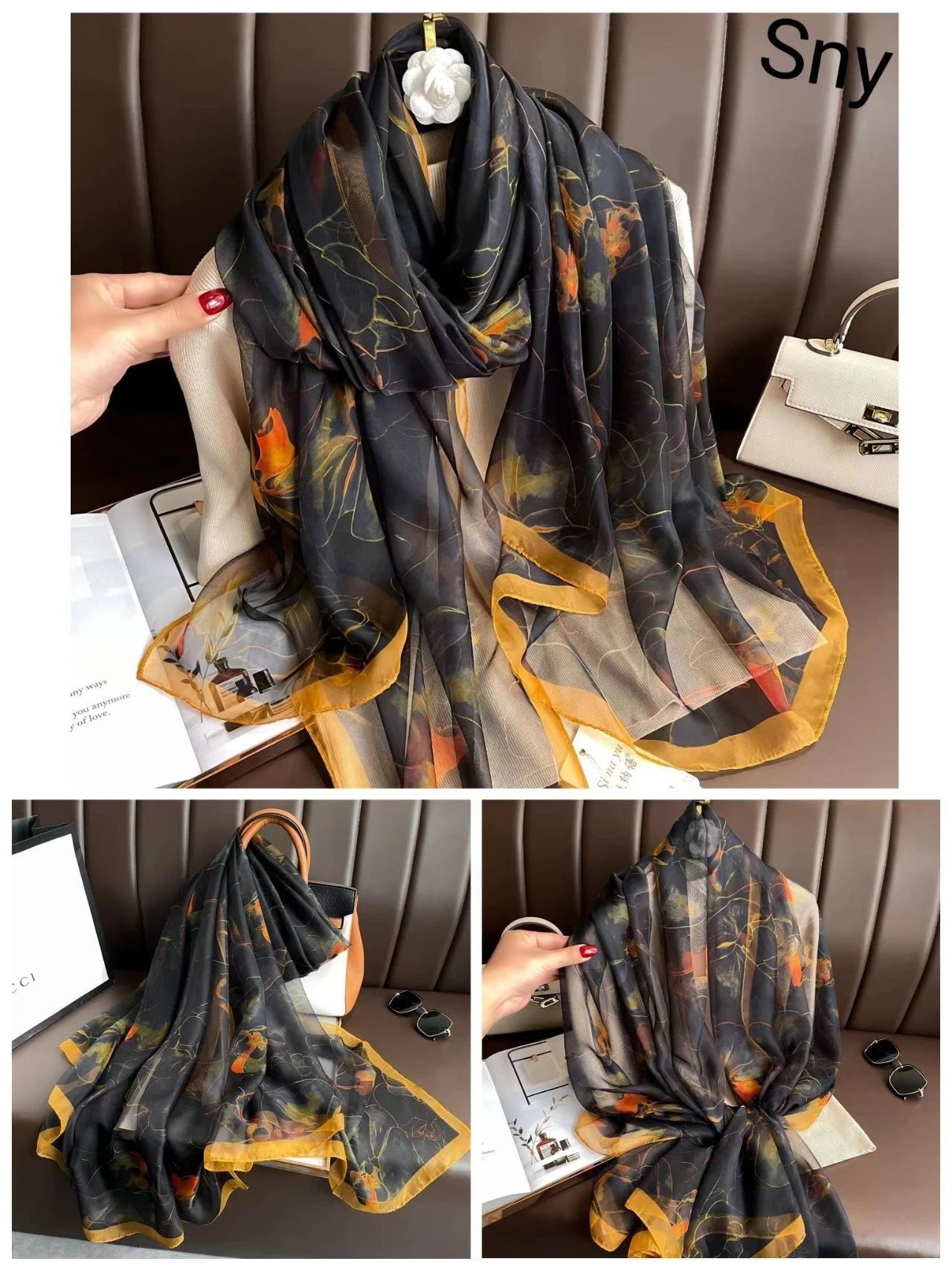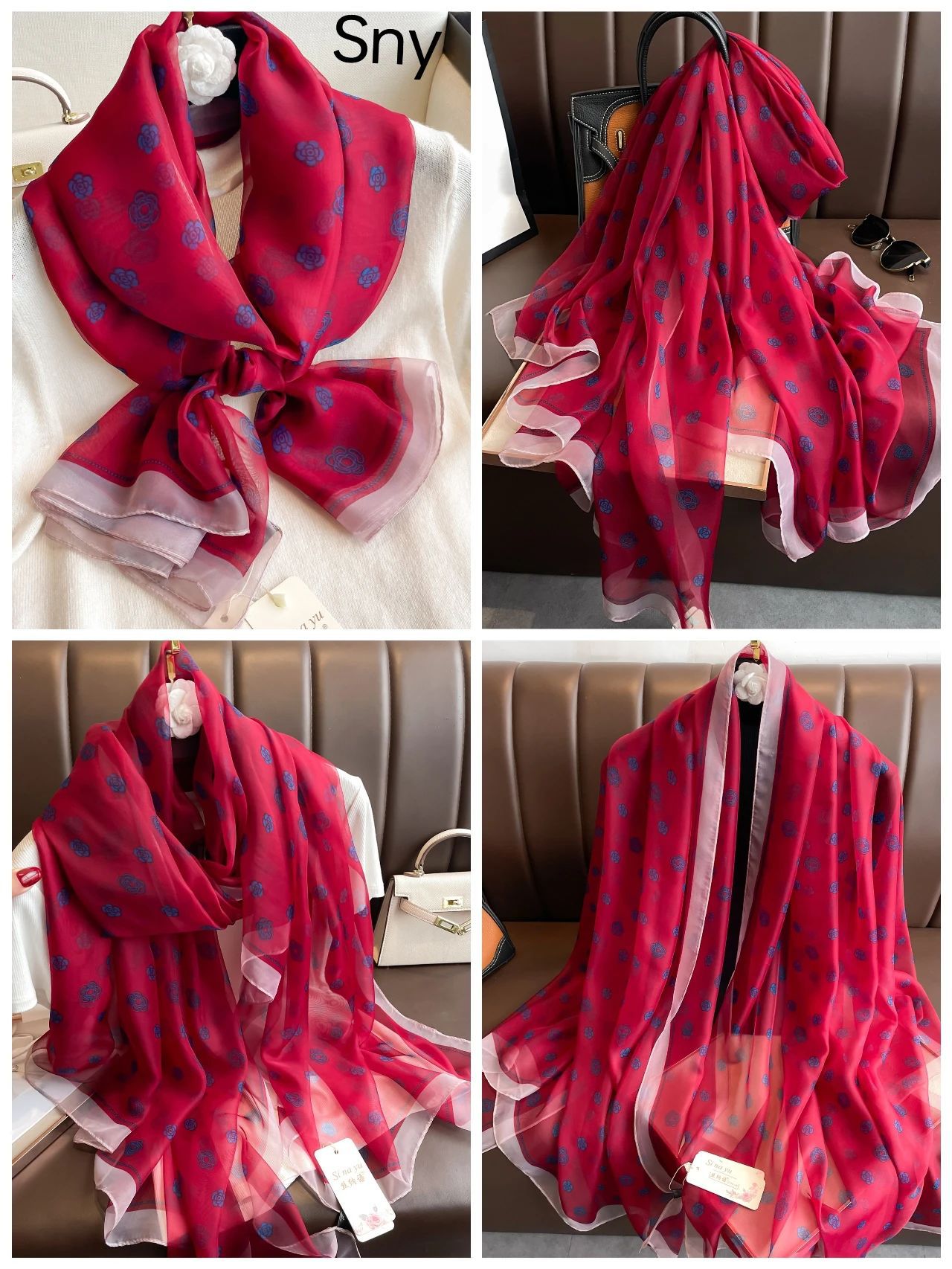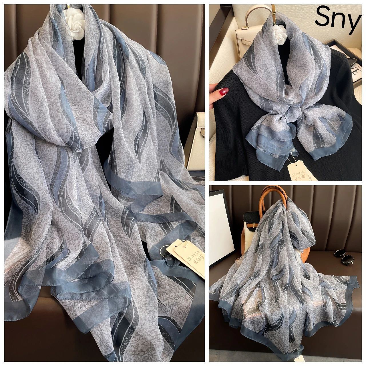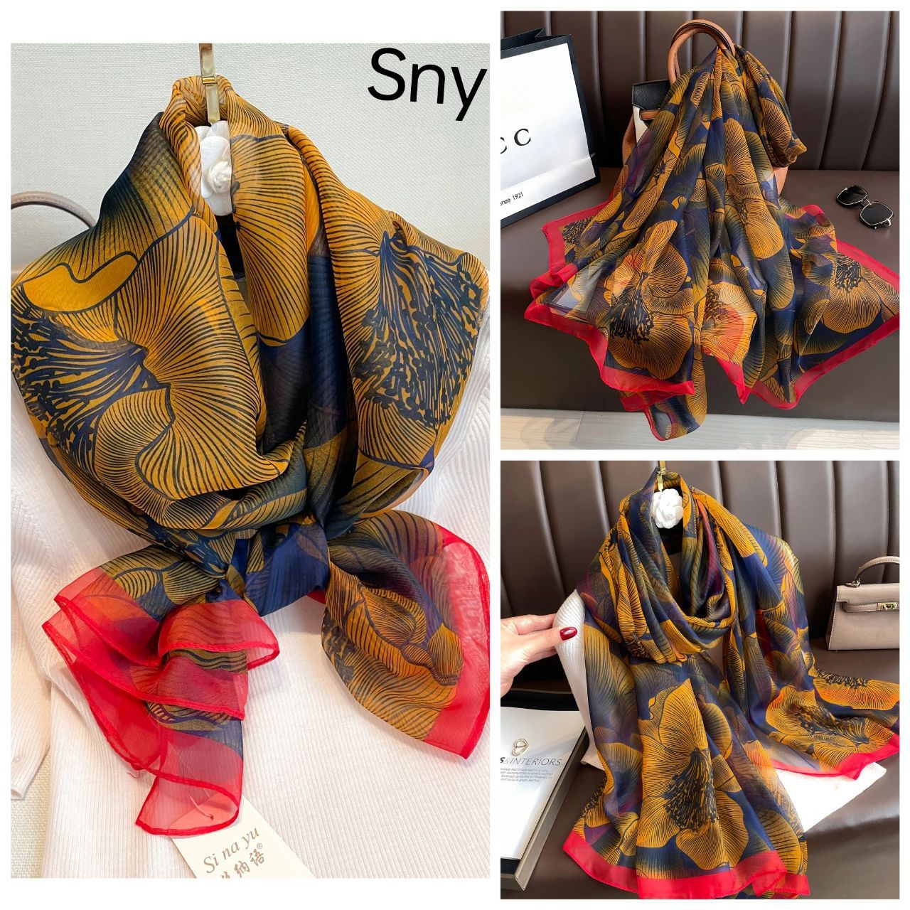 Yorou사 실크 스카프 130*190 가볍고 얇은 자외선 차단 숄 하이엔드 패션 다용도 사계절 프린트 새로운 여성 스카프
