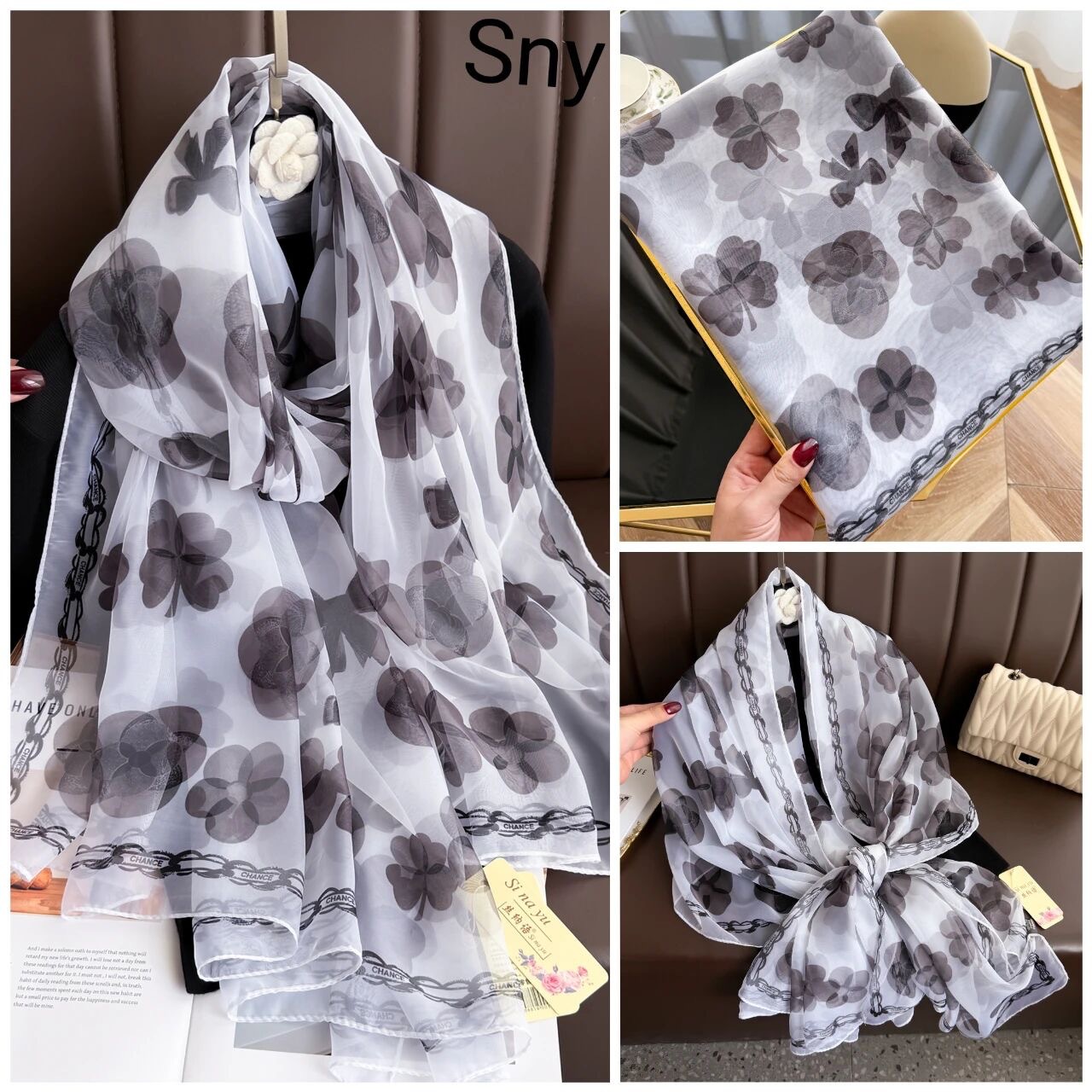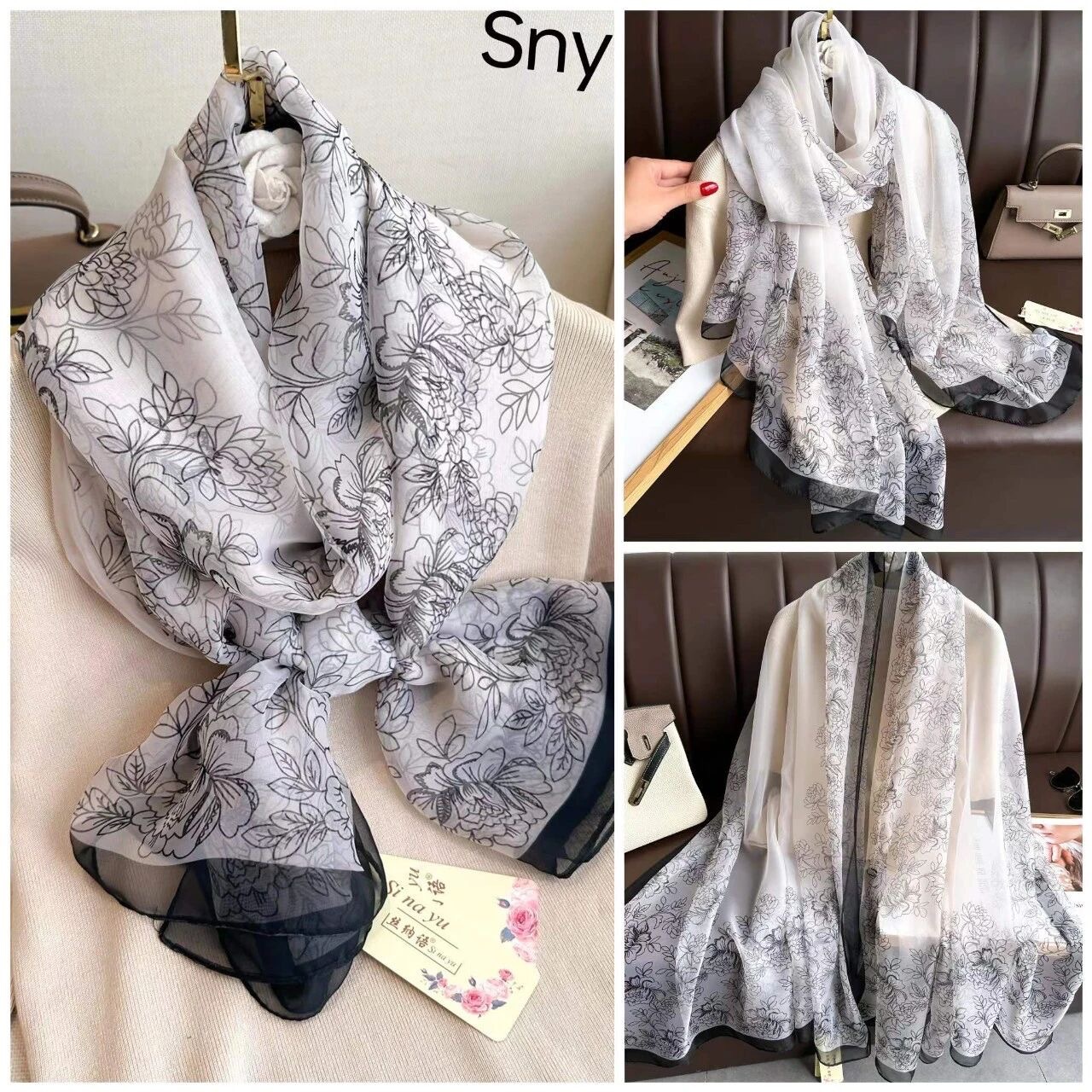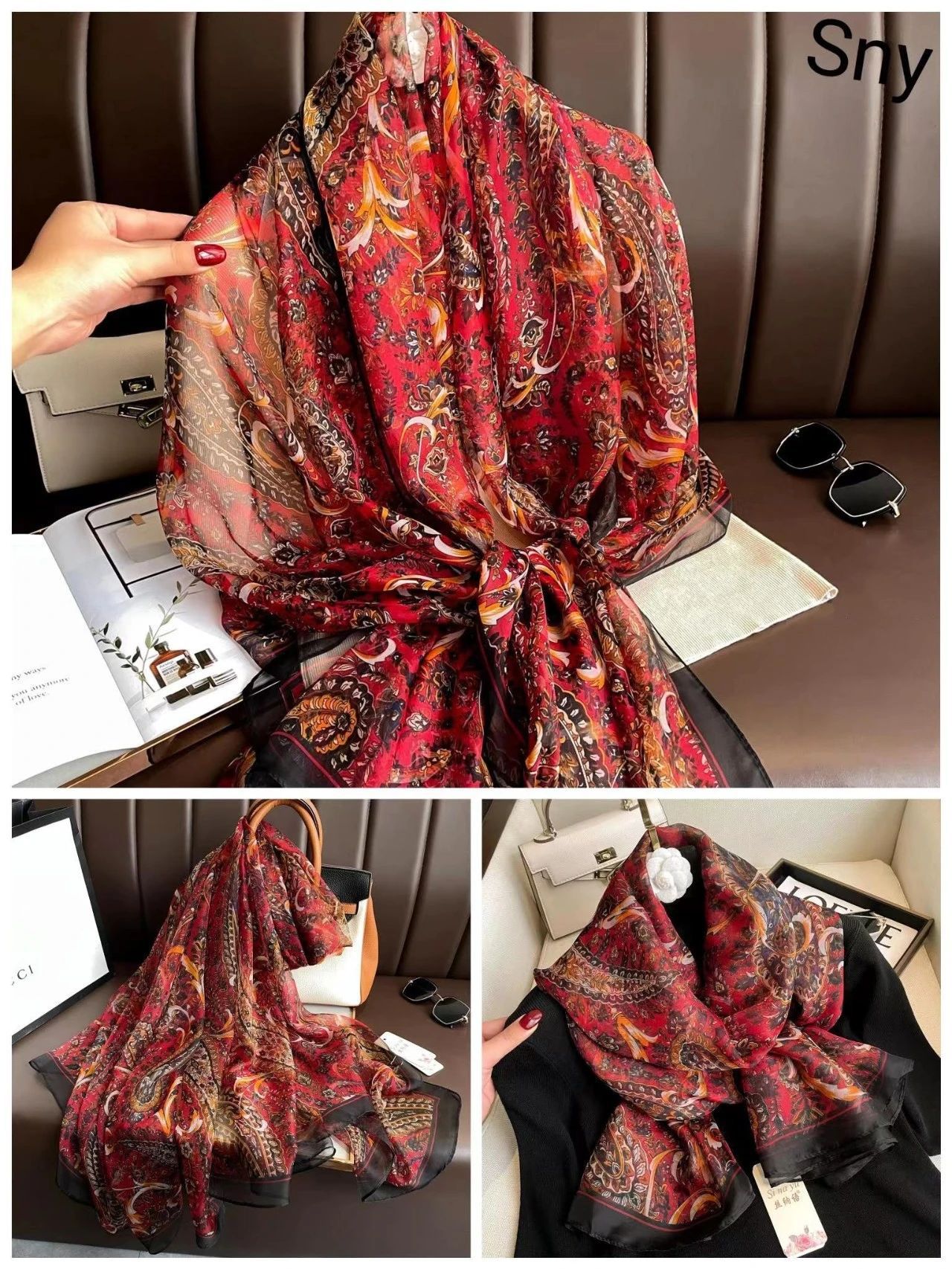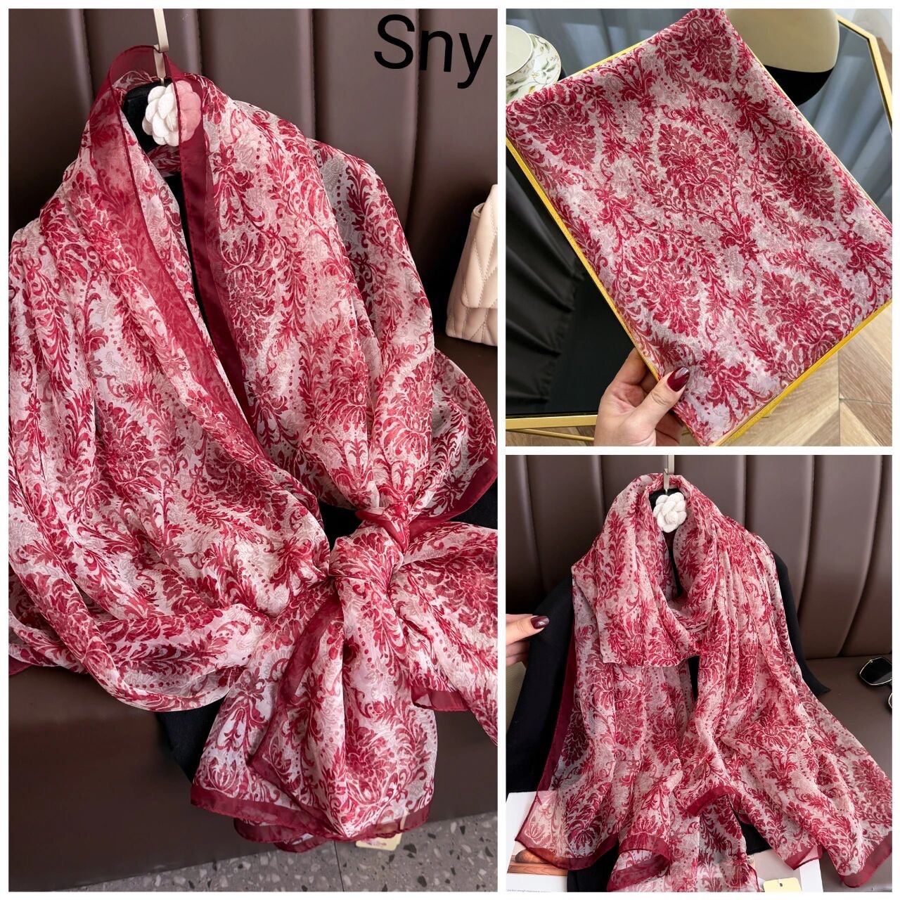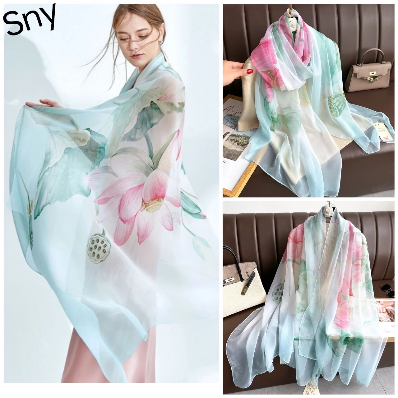 Yorou사 실크 스카프 130*190 가볍고 얇은 자외선 차단 숄 하이엔드 패션 다용도 사계절 프린트 새로운 여성 스카프