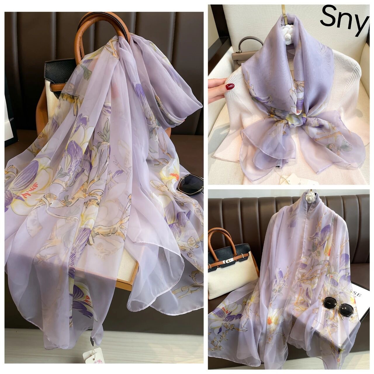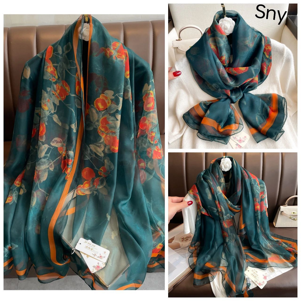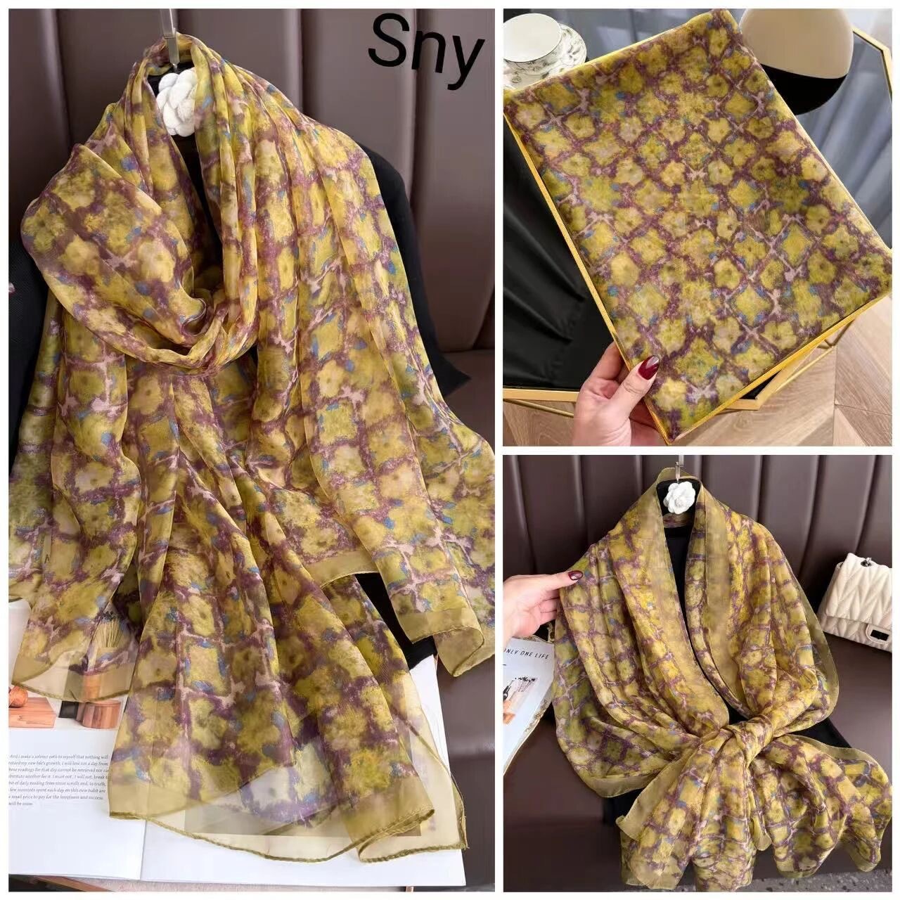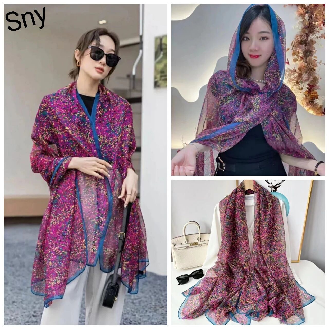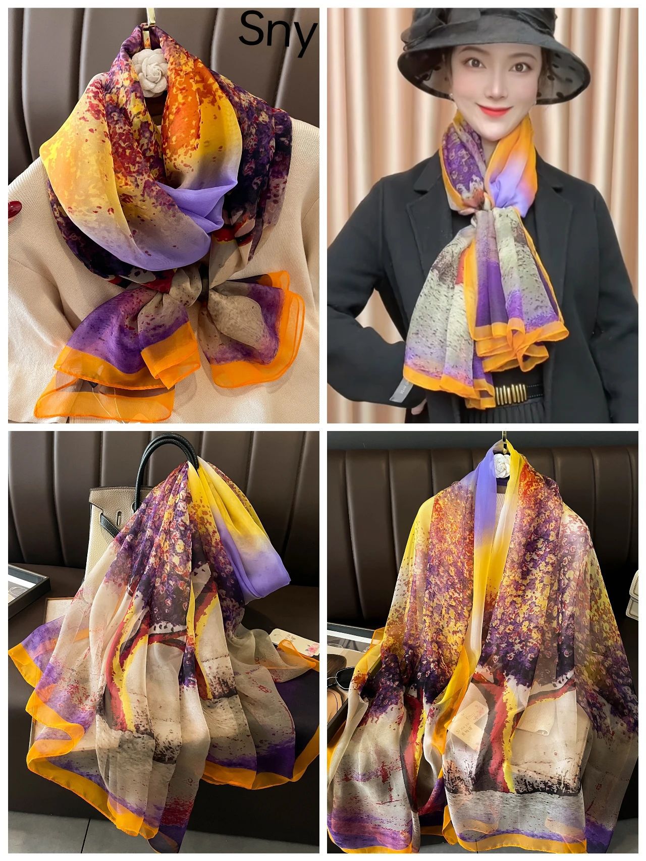 Yorou사 실크 스카프 130*190 가볍고 얇은 자외선 차단 숄 하이엔드 패션 다용도 사계절 프린트 새로운 여성 스카프스토어 가기