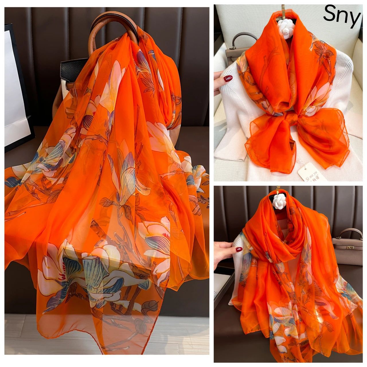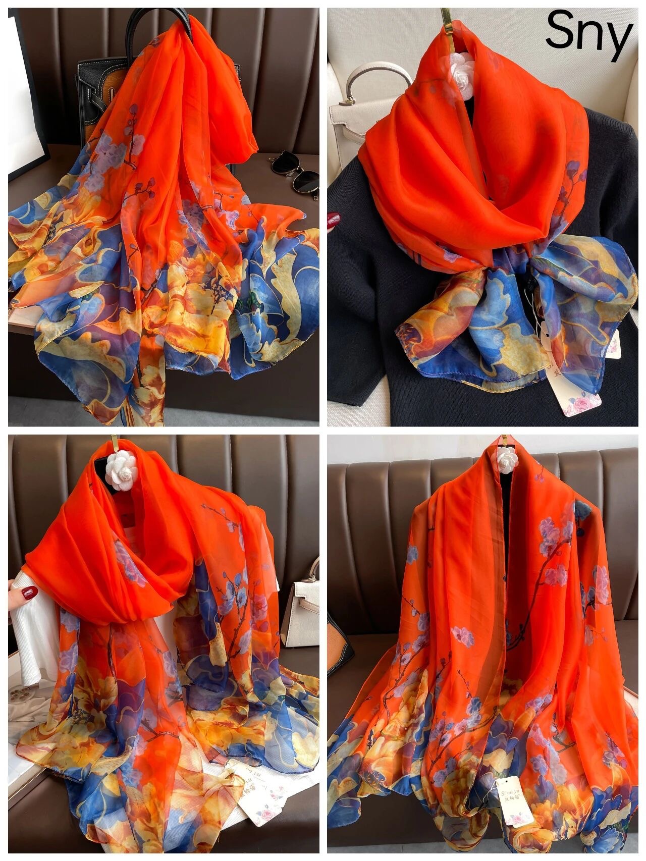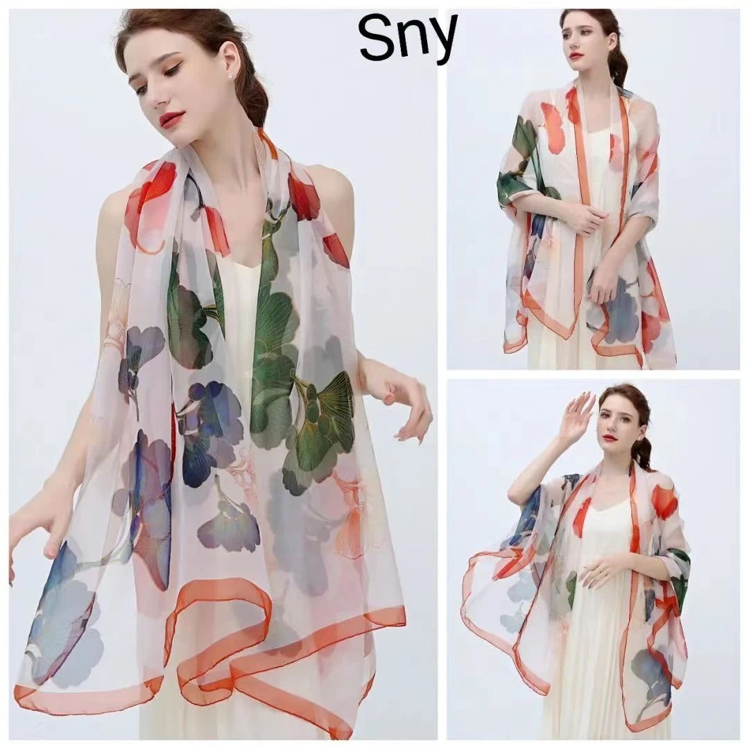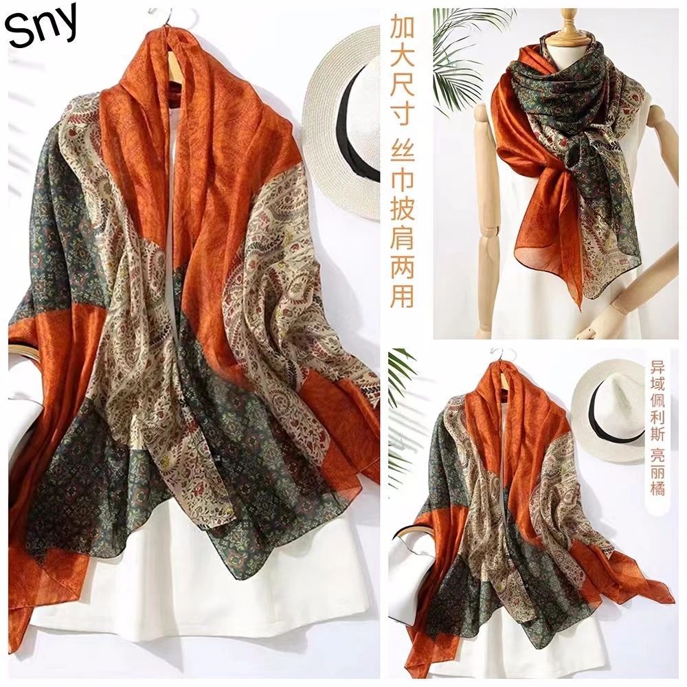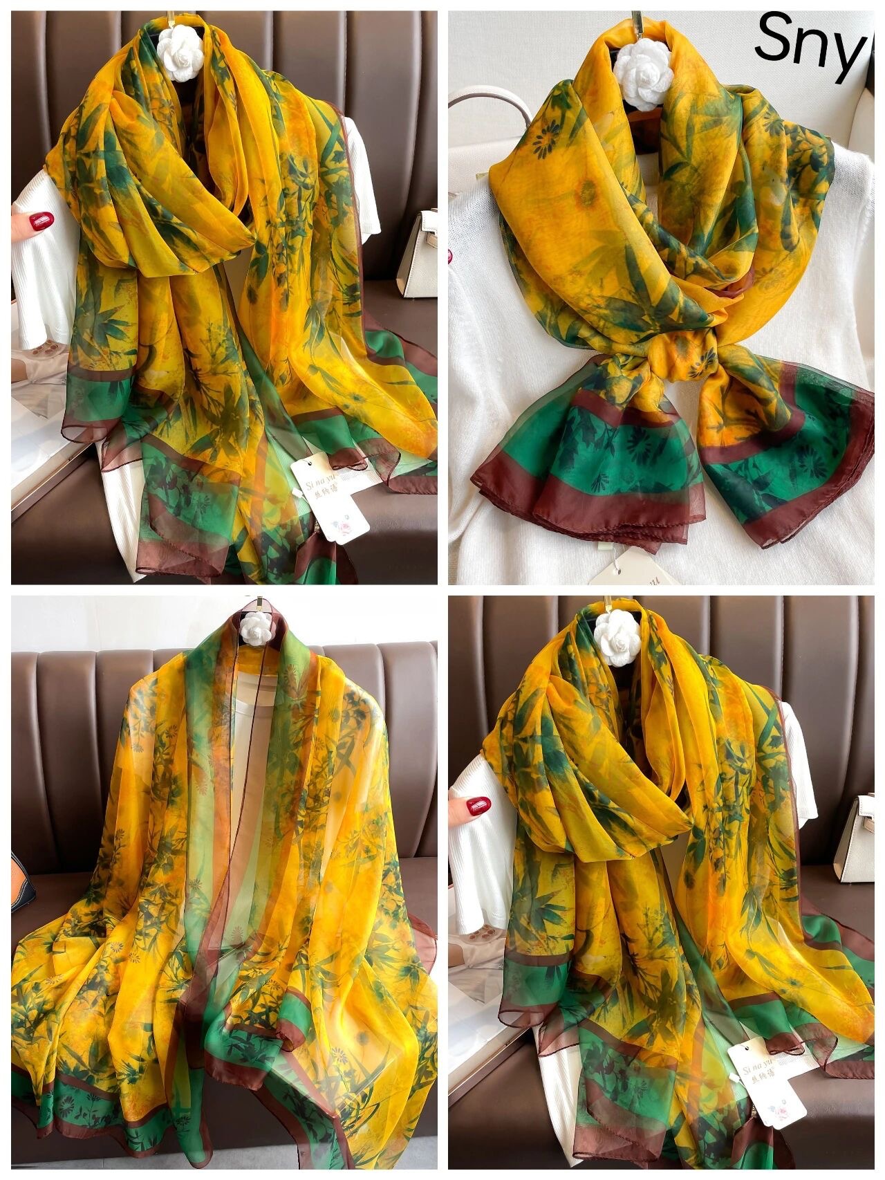 Yorou사 실크 스카프 130*190 가볍고 얇은 자외선 차단 숄 하이엔드 패션 다용도 사계절 프린트 새로운 여성 스카프스토어 가기