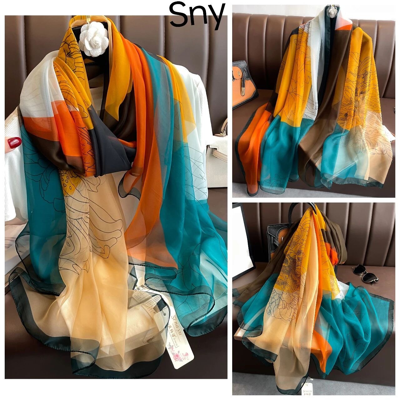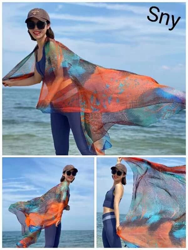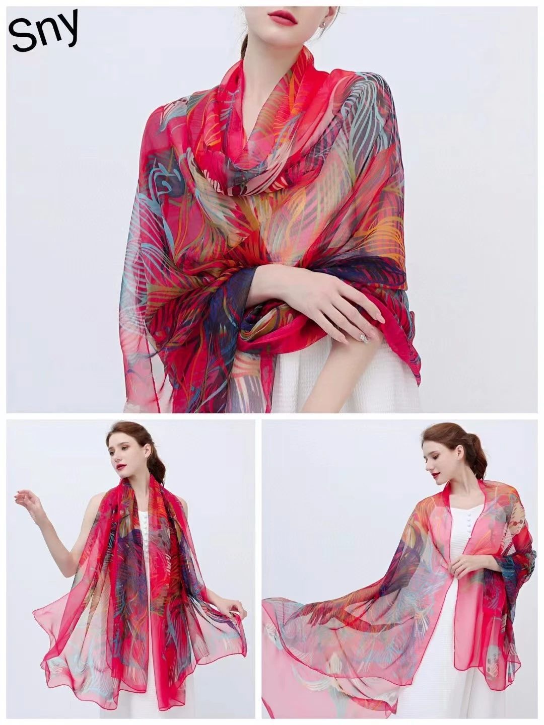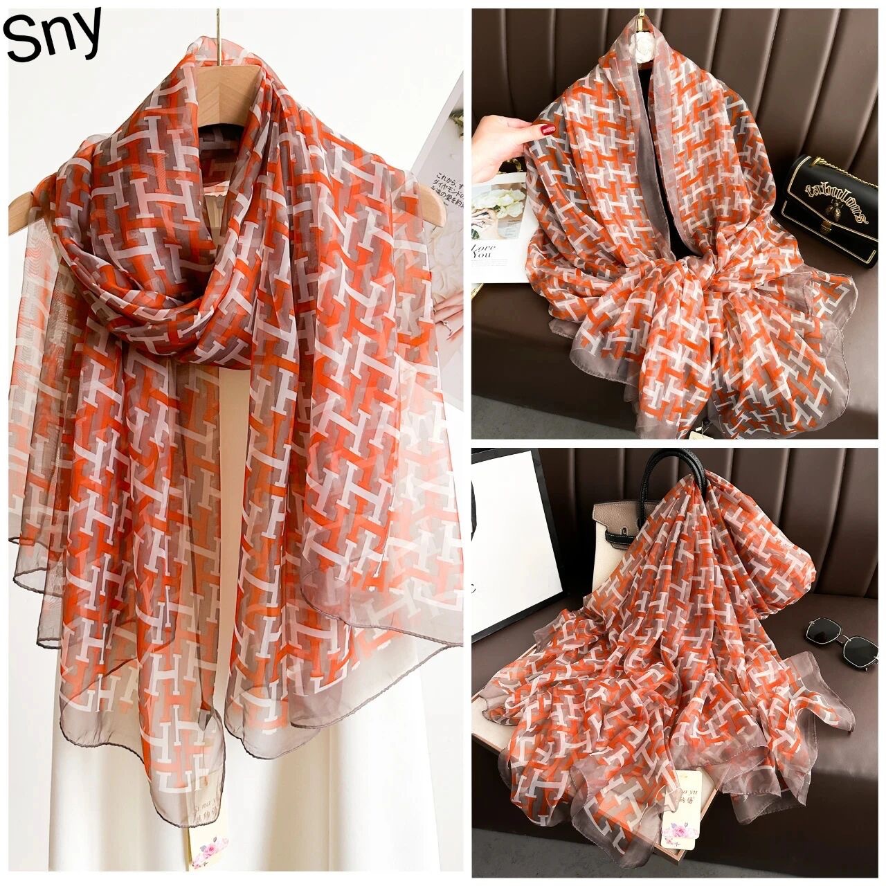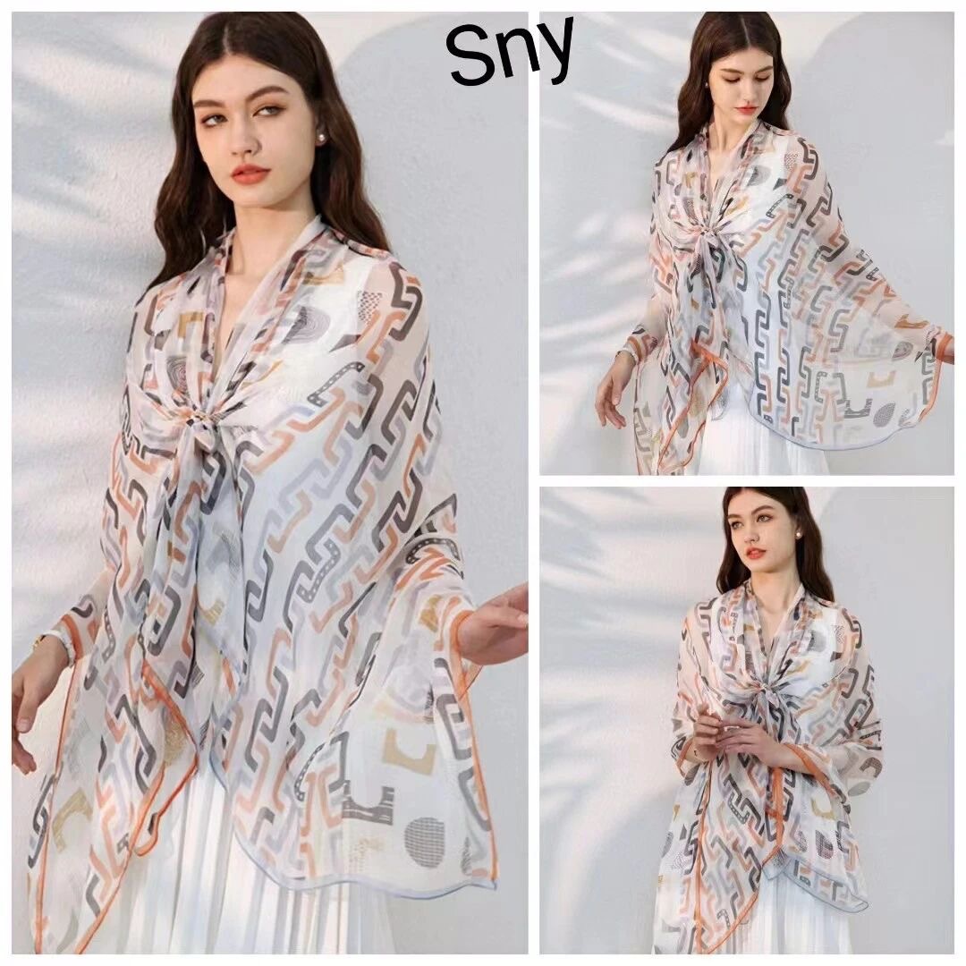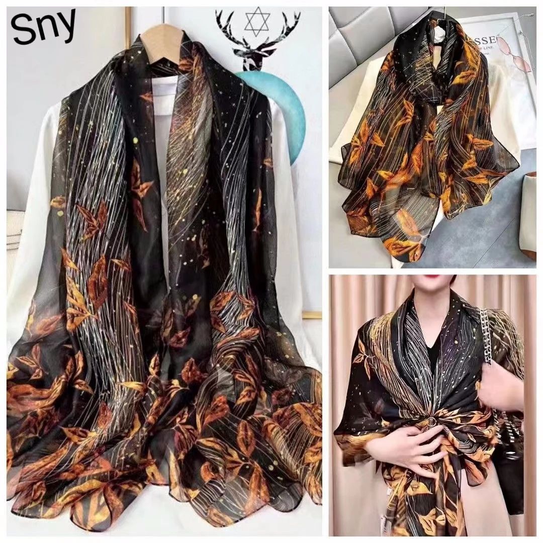 Yorou사 실크 스카프 130*190 가볍고 얇은 자외선 차단 숄 하이엔드 패션 다용도 사계절 프린트 새로운 여성 스카프스토어 가기