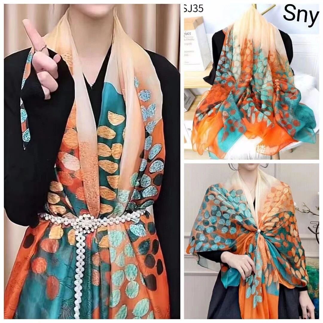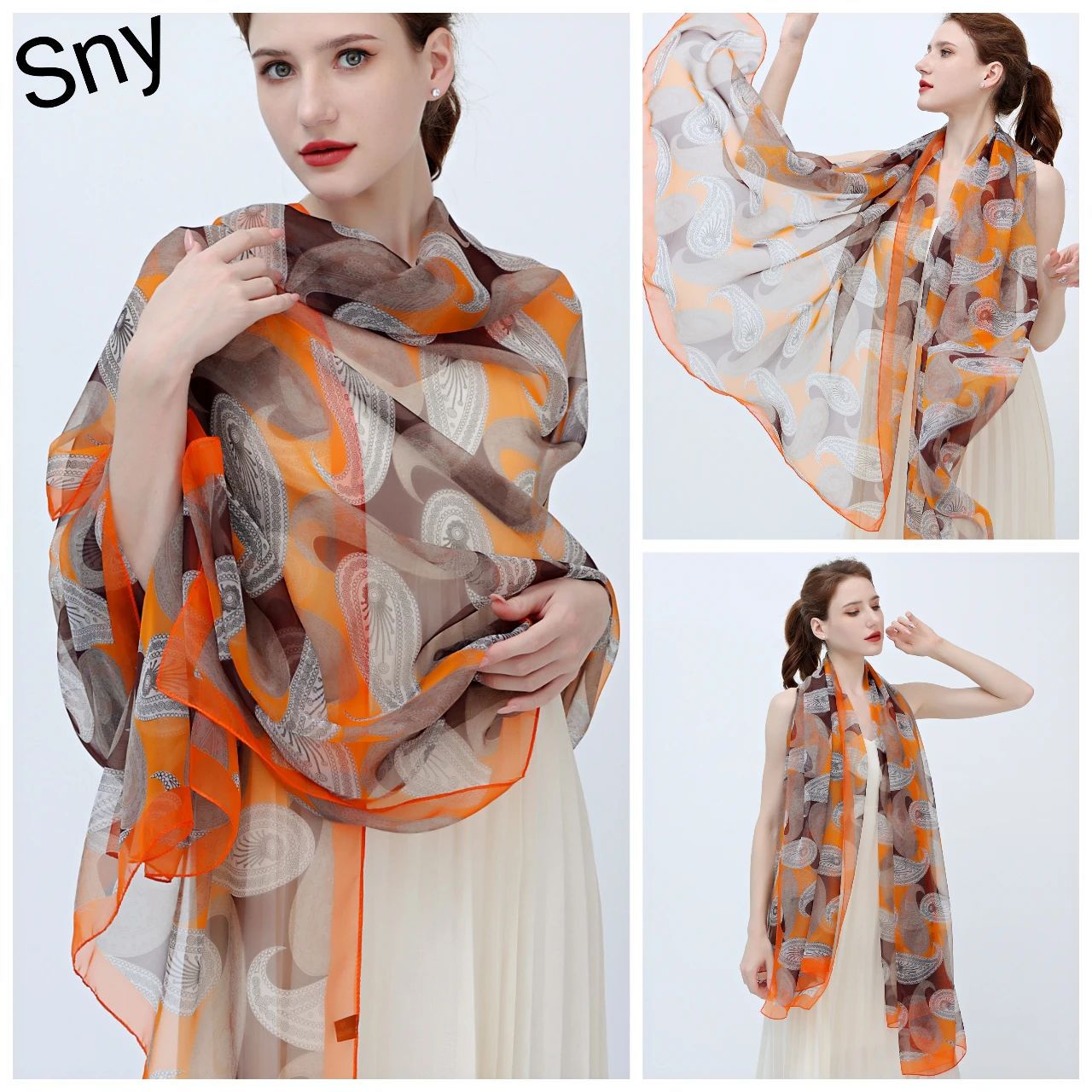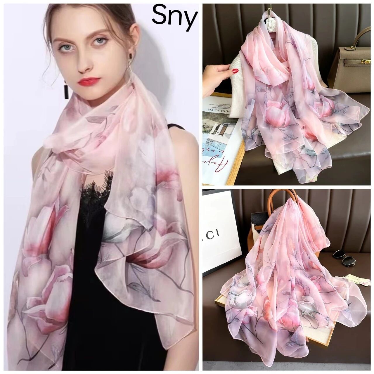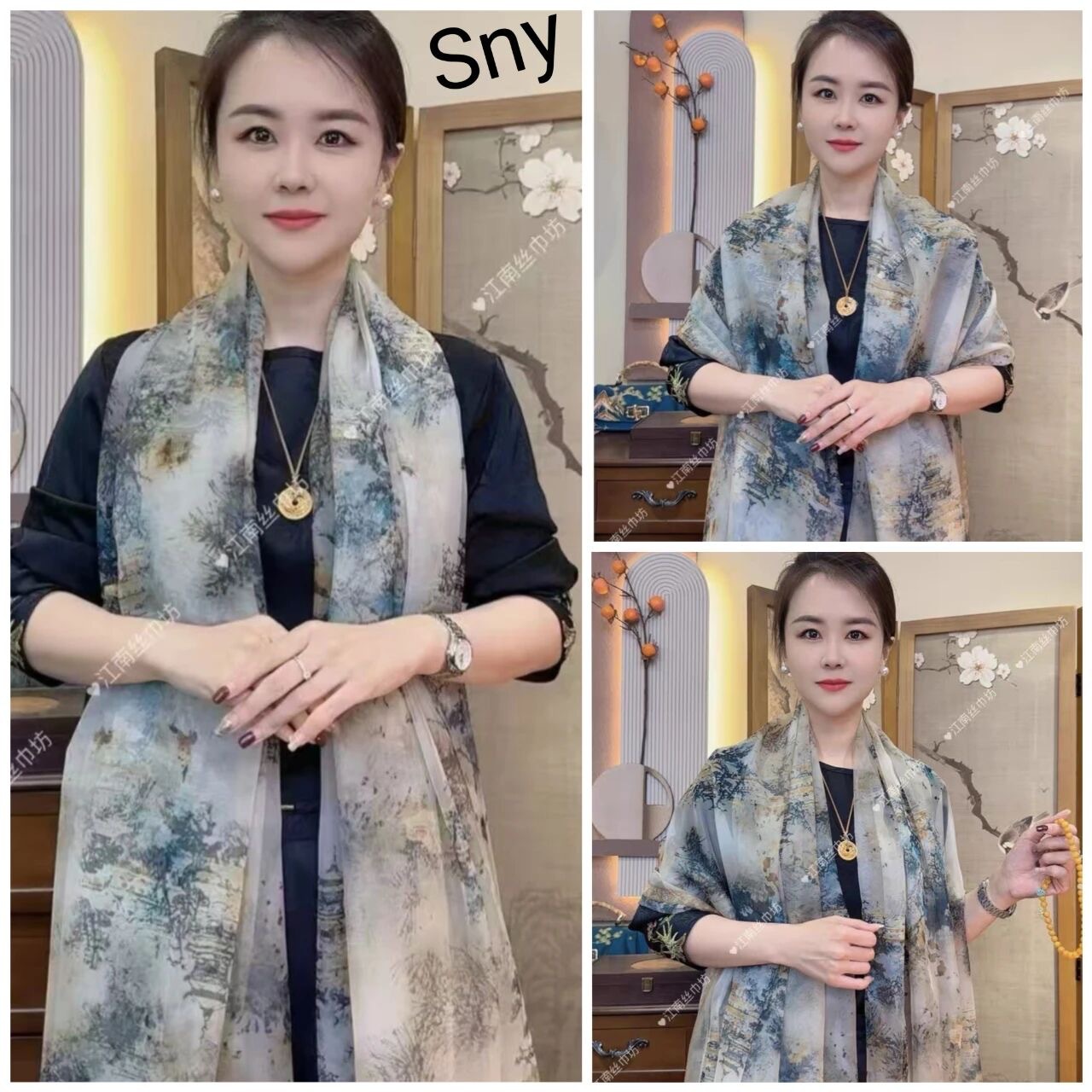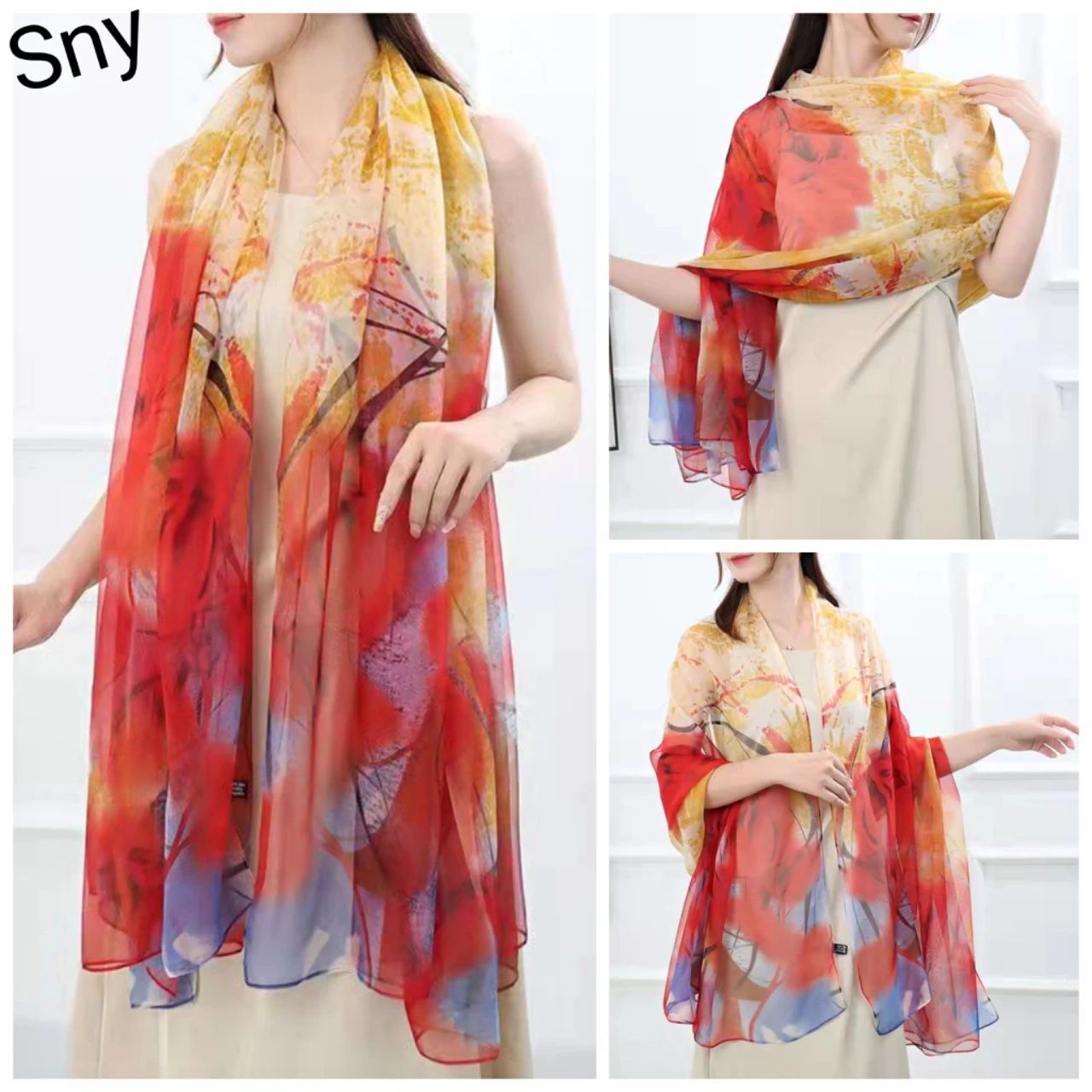 Yorou사 실크 스카프 130*190 가볍고 얇은 자외선 차단 숄 하이엔드 패션 다용도 사계절 프린트 새로운 여성 스카프스토어 가기