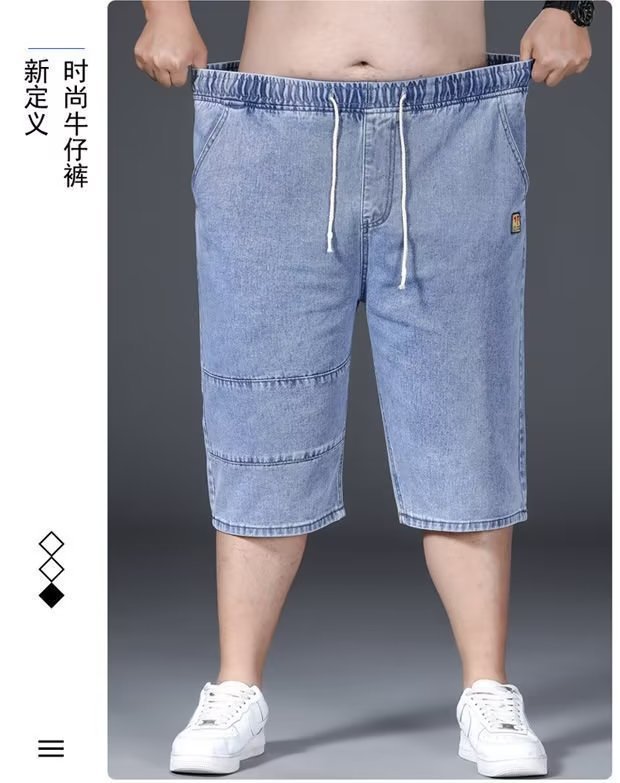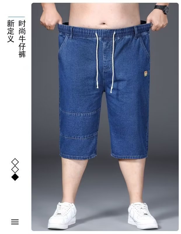 남성용 크롭 팬츠, 루즈하고 플러스 사이즈, 남성용 데님 반바지, 대형 사이즈, 남성용 크롭 팬츠, 트렌디하고 활용도가 높은 여름 미드팬츠