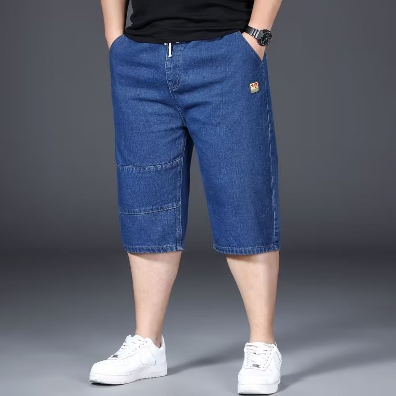 남성용 크롭 팬츠, 루즈하고 플러스 사이즈, 남성용 데님 반바지, 대형 사이즈, 남성용 크롭 팬츠, 트렌디하고 활용도가 높은 여름 미드팬츠스토어 가기