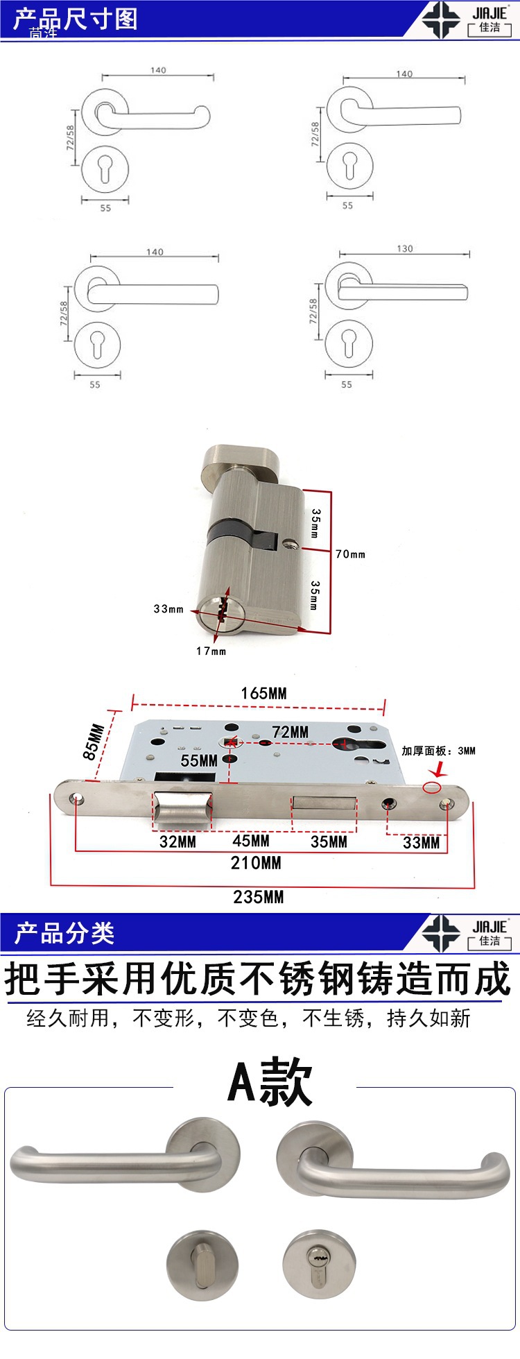 7255 스테인레스 스틸 방화문 단일 곡선 직각 분할 잠금 장치 병원 사무실 건물 이중 곡선 핸들 도어 잠금 장치 U 자형 핸들