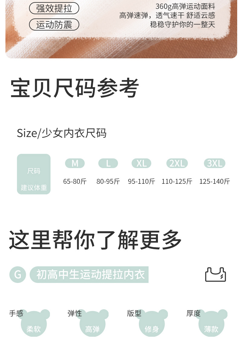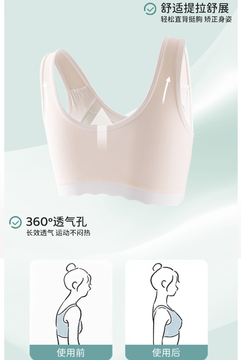 발달기 여아용 브라, 순면, 2~3단계, 중, 고등학생 속옷, 고정컵, 아동용 여아조끼, 얇은스토어 가기