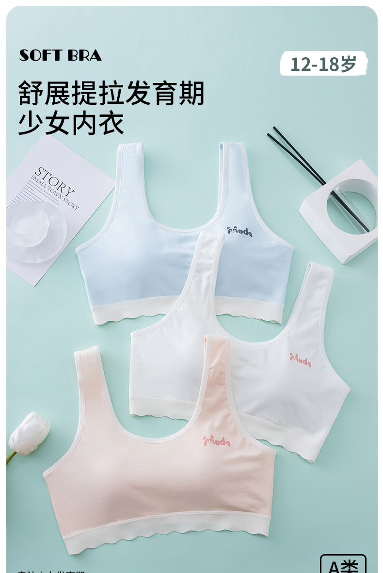발달기 여아용 브라, 순면, 2~3단계, 중, 고등학생 속옷, 고정컵, 아동용 여아조끼, 얇은