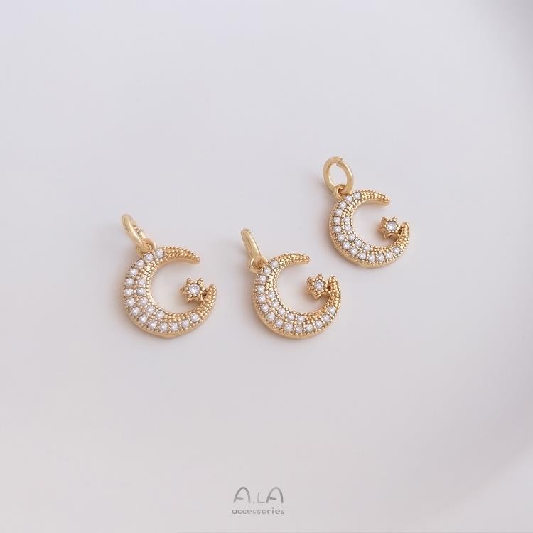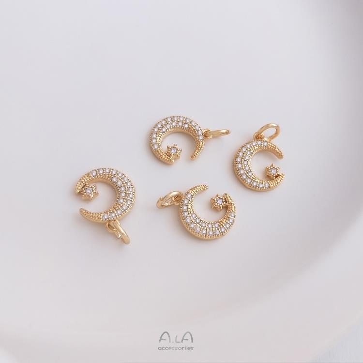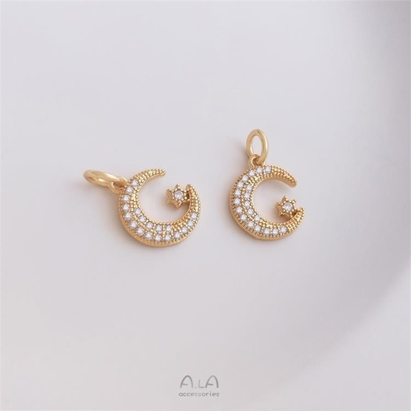 마이크로 상감 지르콘 14K 금도금 전기 도금 별과 달 펜던트 문 펜던트 수제 diy 팔찌 목걸이 쥬얼리 펜던트스토어 가기