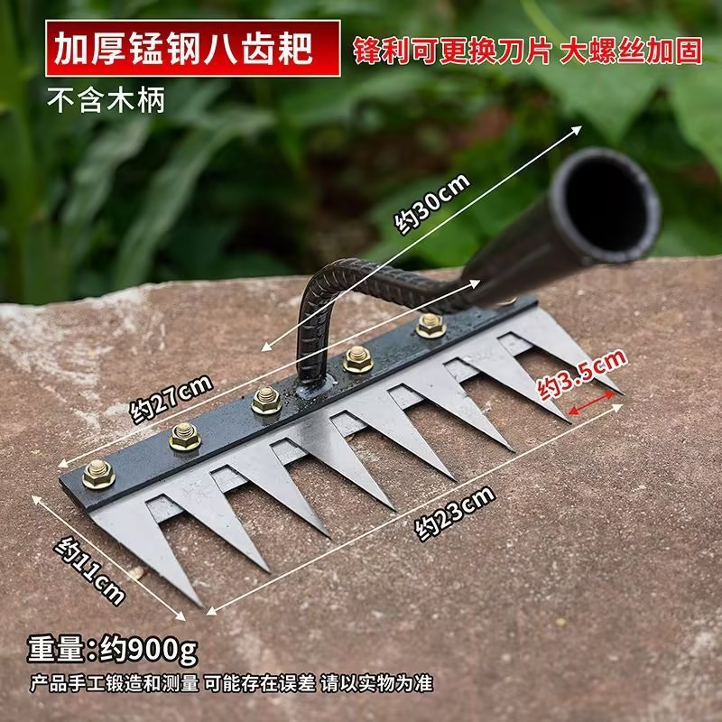 농업용 갈퀴, 망간강 치아 갈퀴, 제초 도구, 두꺼운 망간강 8치 갈퀴, 농업용 도구, 흙을 뒤집고 흙을 뒤집는 도구