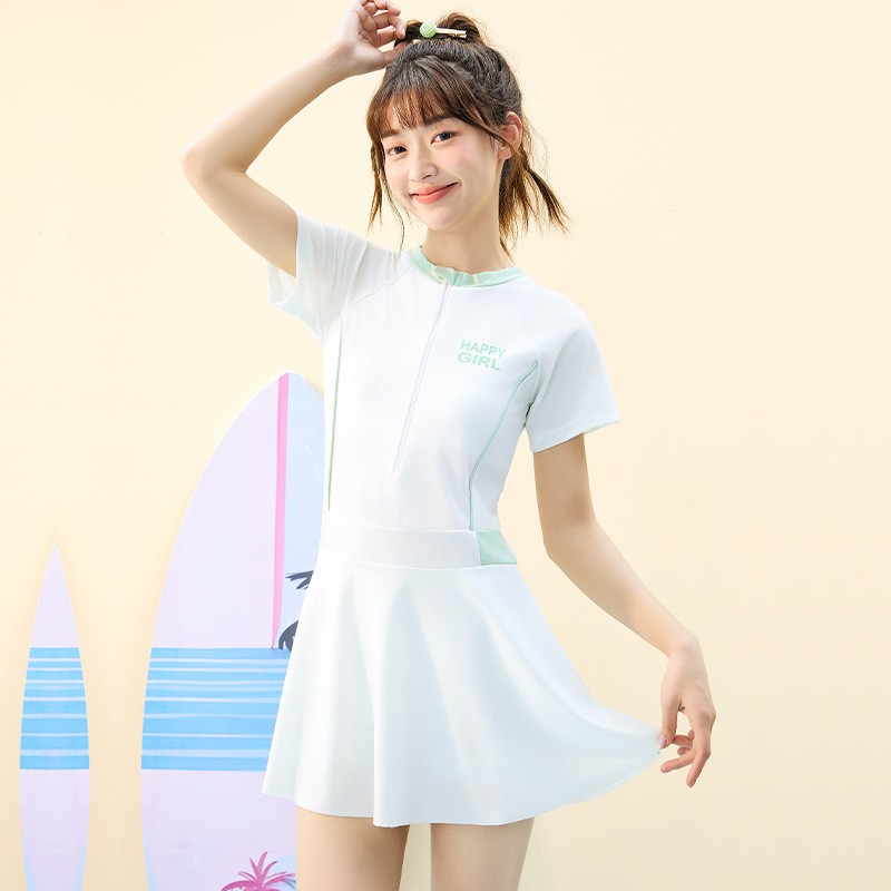 여아, 중학생을 위한 아동 수영복, 보수적인 원피스 수영복, 새로운 슬리밍 수영복, 달콤한 반팔 소녀스토어 가기