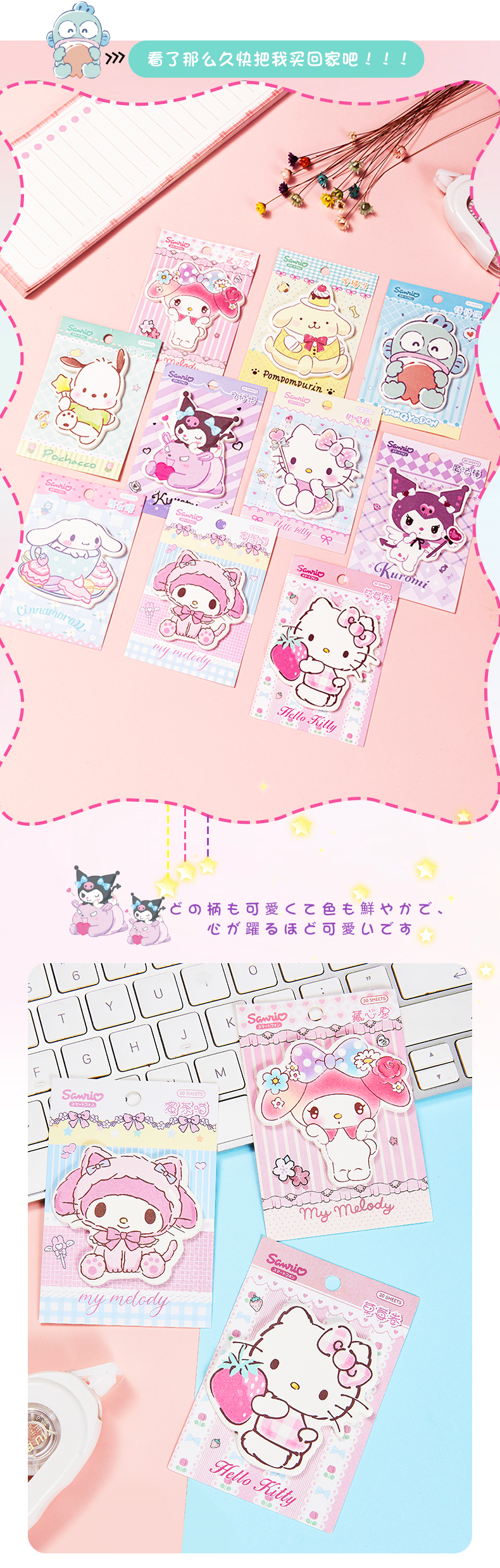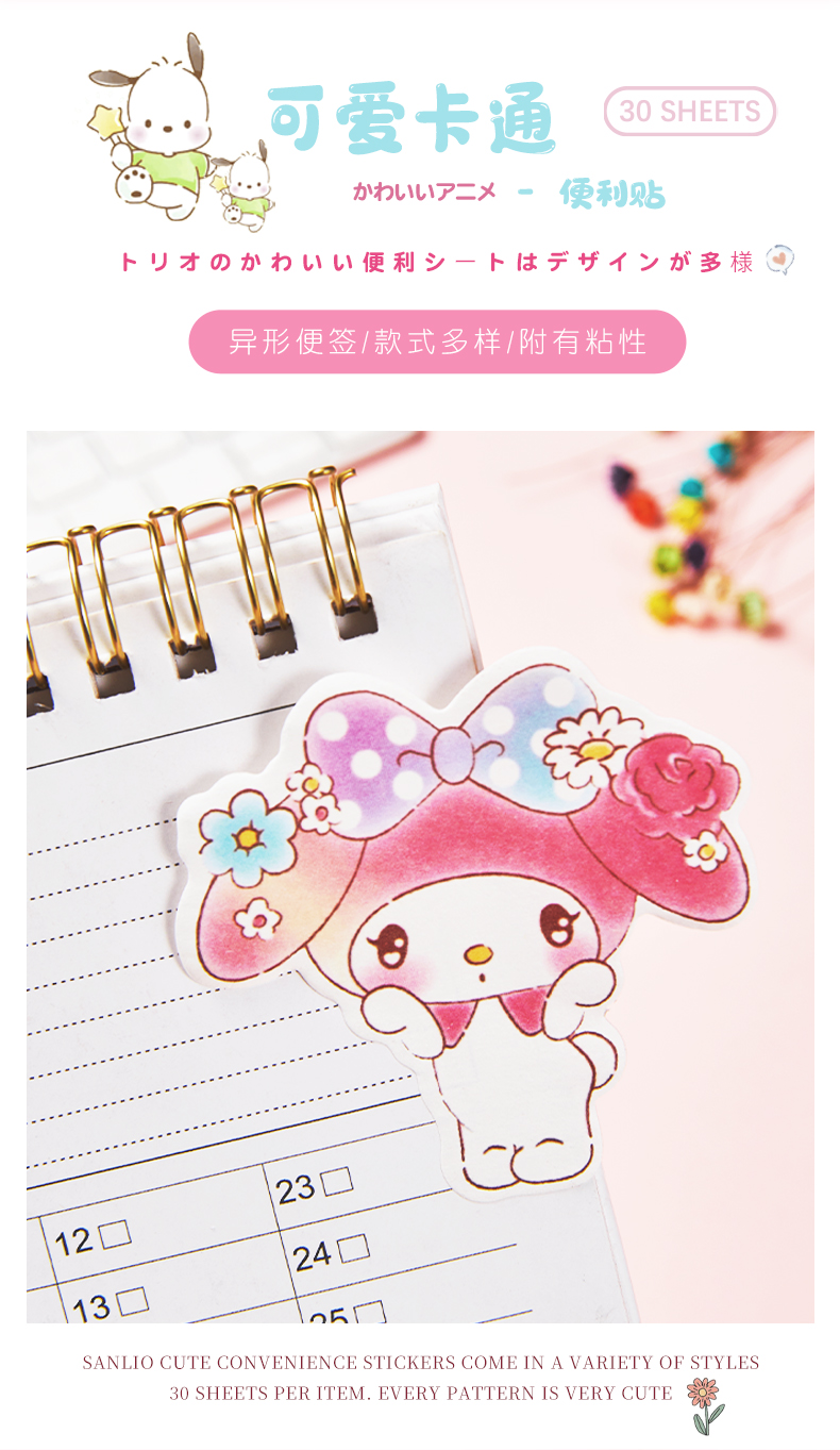 일본 만화 미니 특수 모양의 스티커 메모 귀여운 멜로디 소녀 메모 용지 접착 메시지 스티커 메모 10 스타일스토어 가기