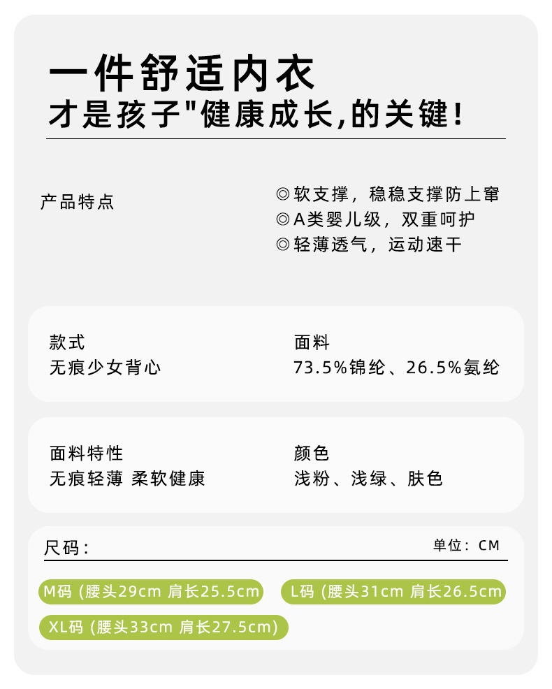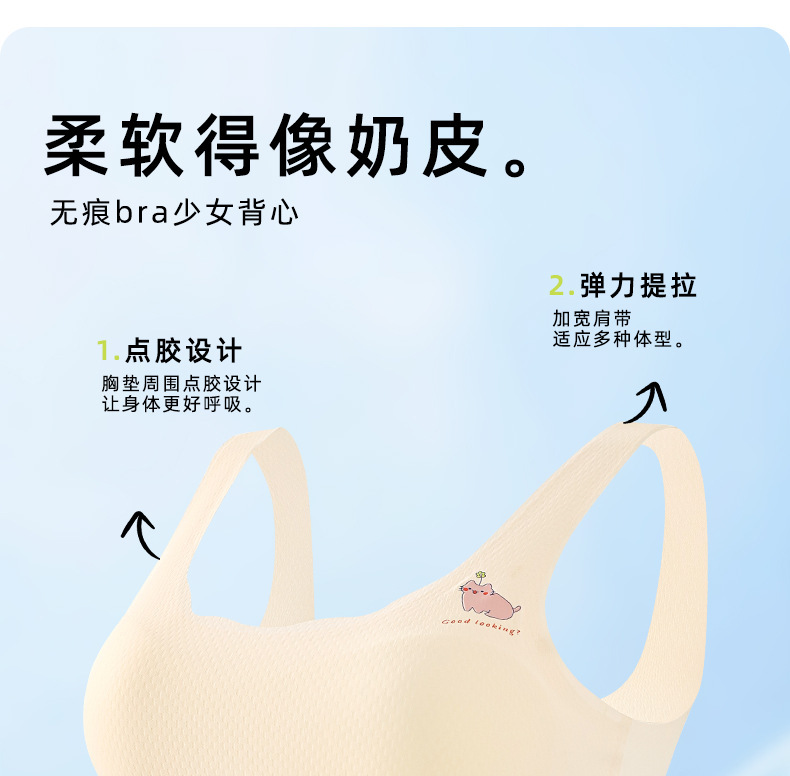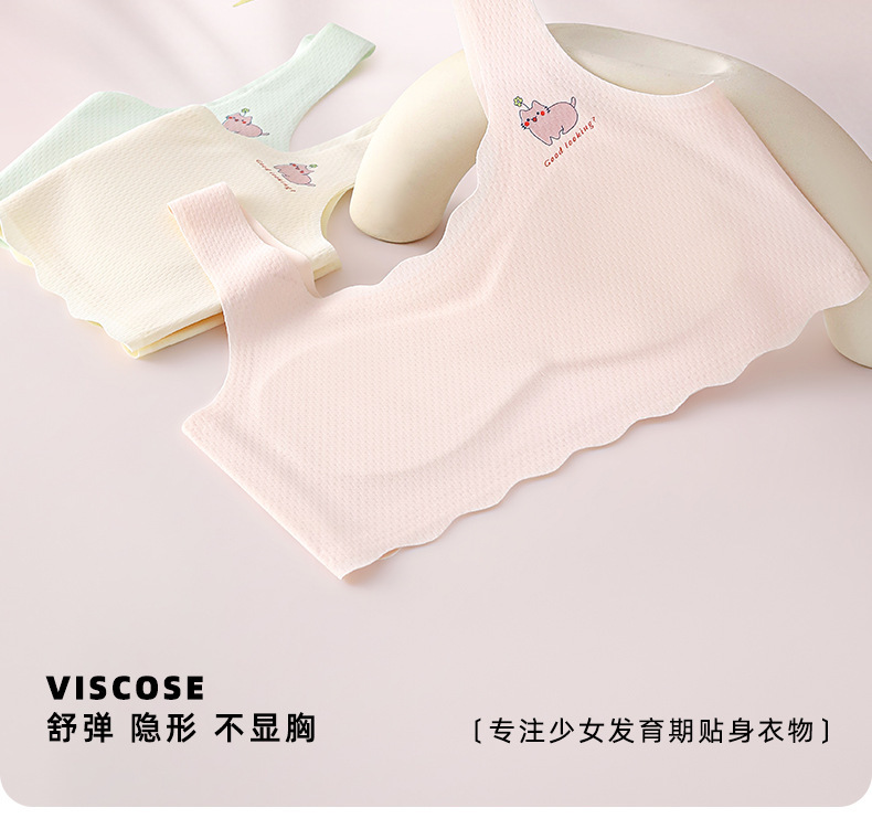 여아 속옷, 청소년 발달기, 아이스 실크 무봉제 브라, 편안하고 통기성이 좋은 작은 조끼, 여름용 가볍고 얇은 고정 컵스토어 가기