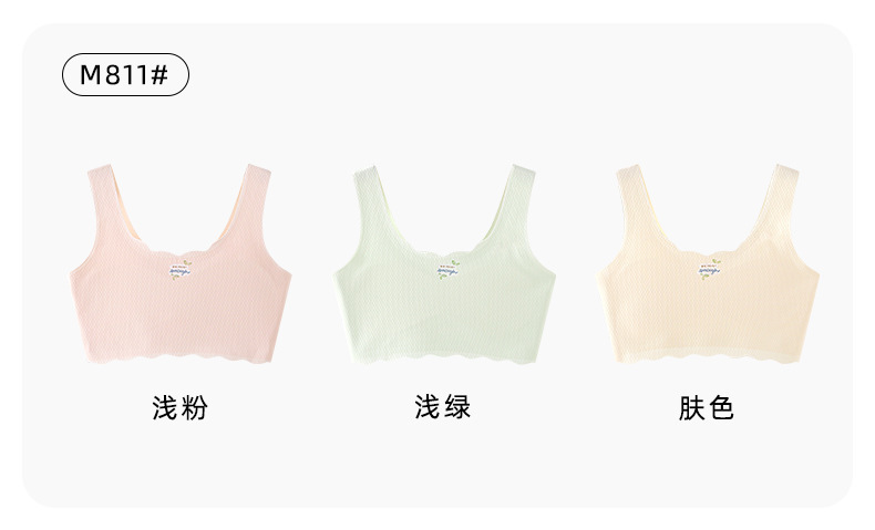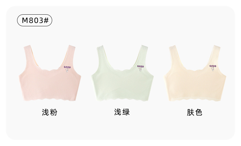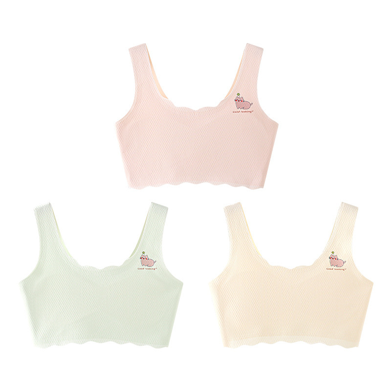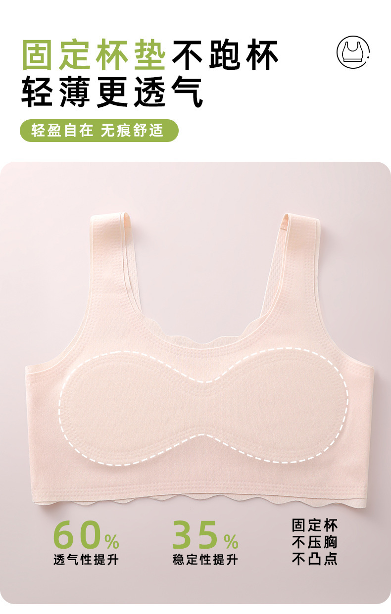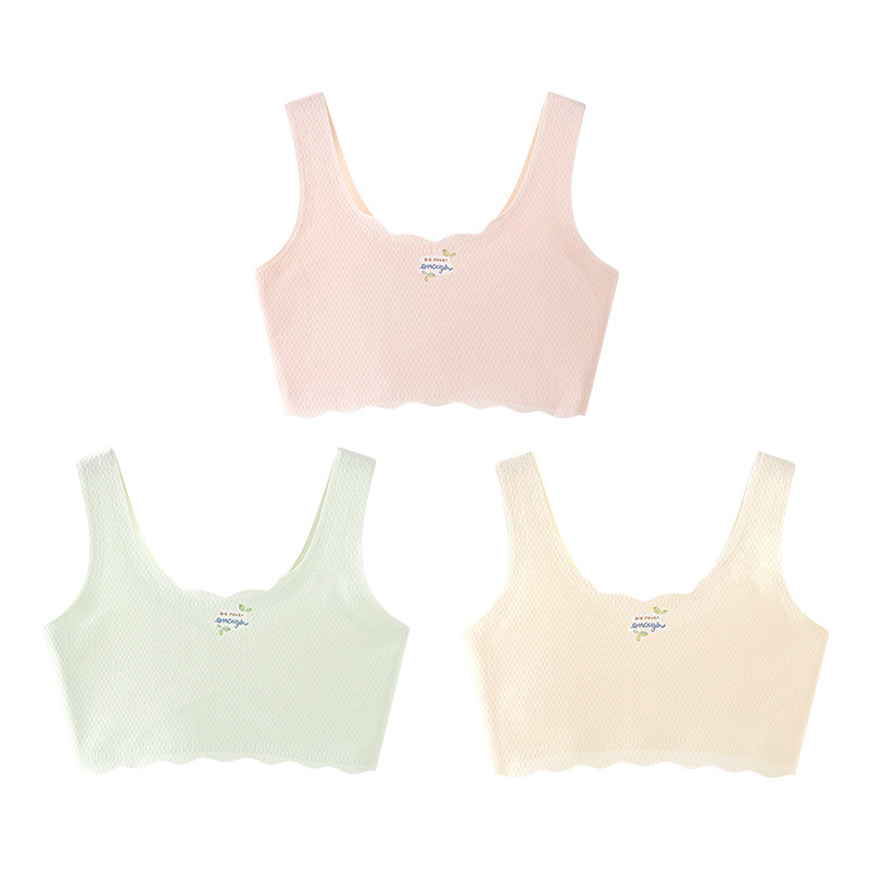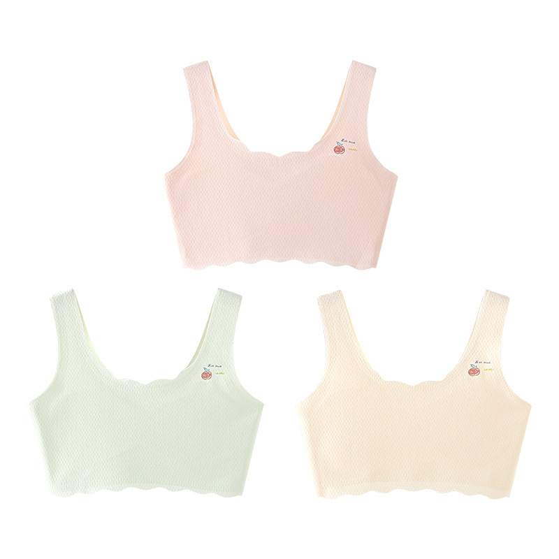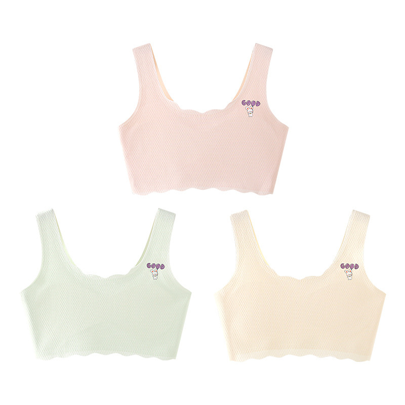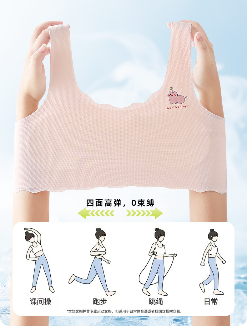 여아 속옷, 청소년 발달기, 아이스 실크 무봉제 브라, 편안하고 통기성이 좋은 작은 조끼, 여름용 가볍고 얇은 고정 컵