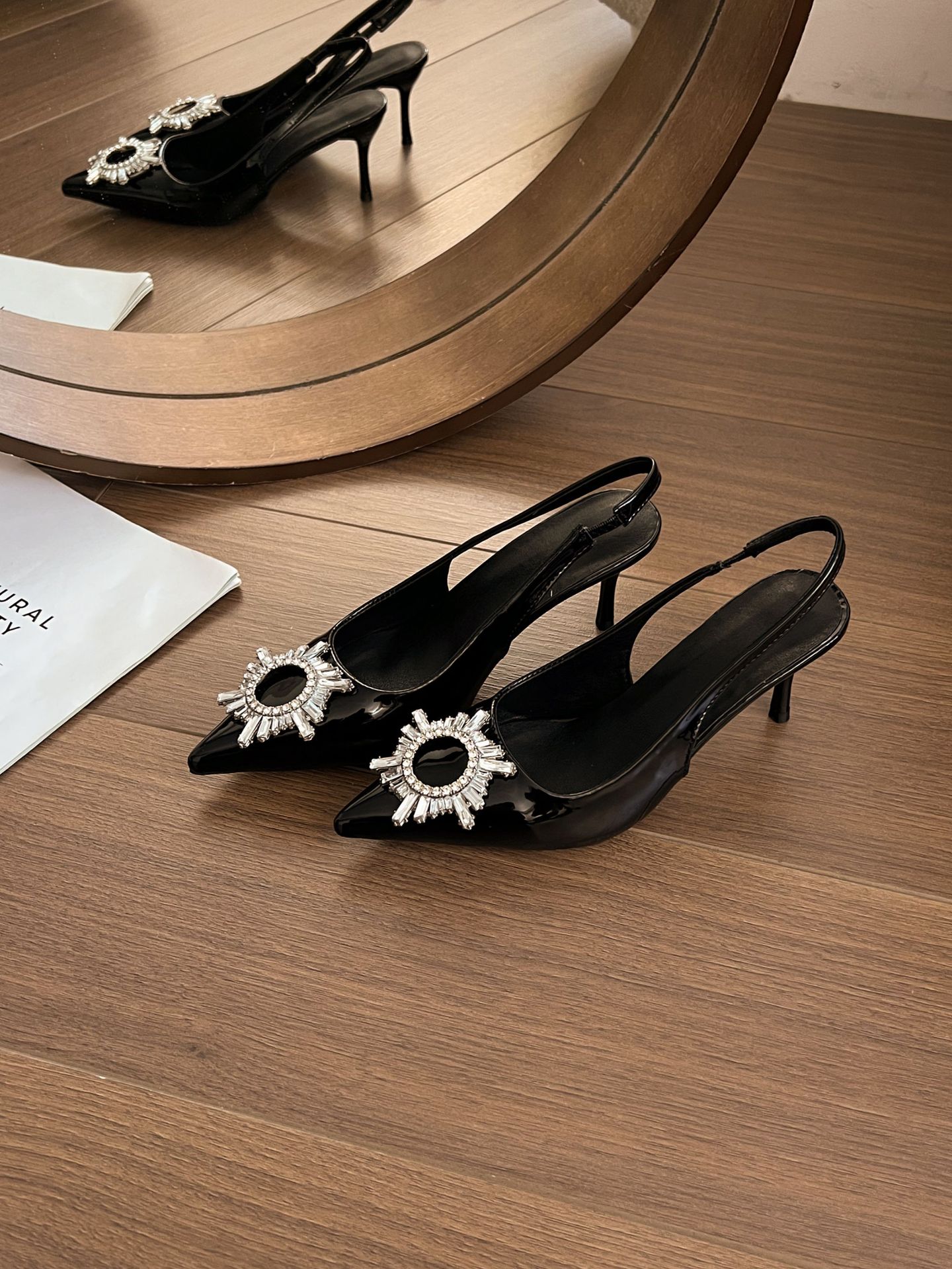 2025 봄 신상 뾰족한 발가락 스틸레토 페이턴트 가죽 발가락 샌들, 우아한 펌프스, 라인스톤 뾰족한 여성 하이힐스토어 가기
