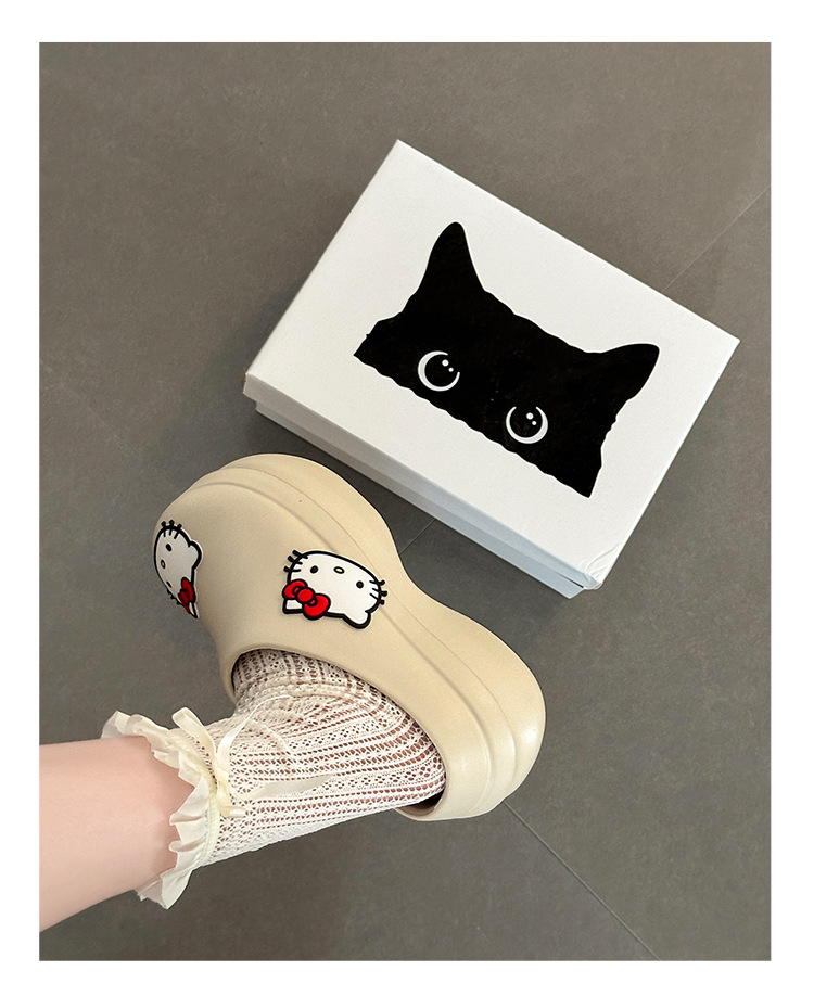 심플하고 귀여운 만화 고양이 디자인 여성용 2025년 여름 신상 편안한 외출용 캐주얼 슬리퍼스토어 가기
