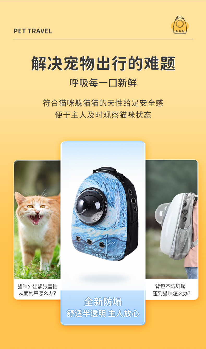 고양이 가방, 휴대용 가방, 통기성 어깨 애완 동물 배낭, 대용량 고양이 학교 가방, 고양이 케이지, 우주 캡슐, 고양이 용품스토어 가기