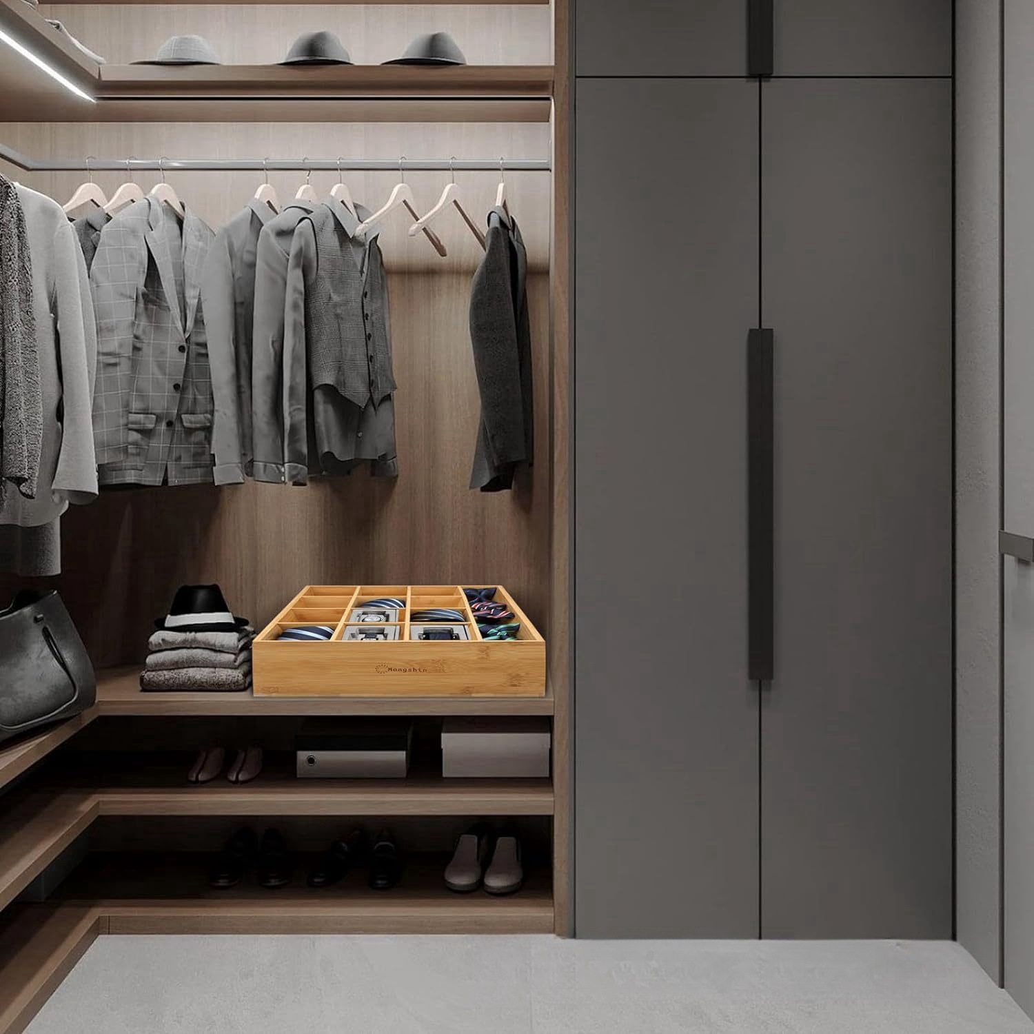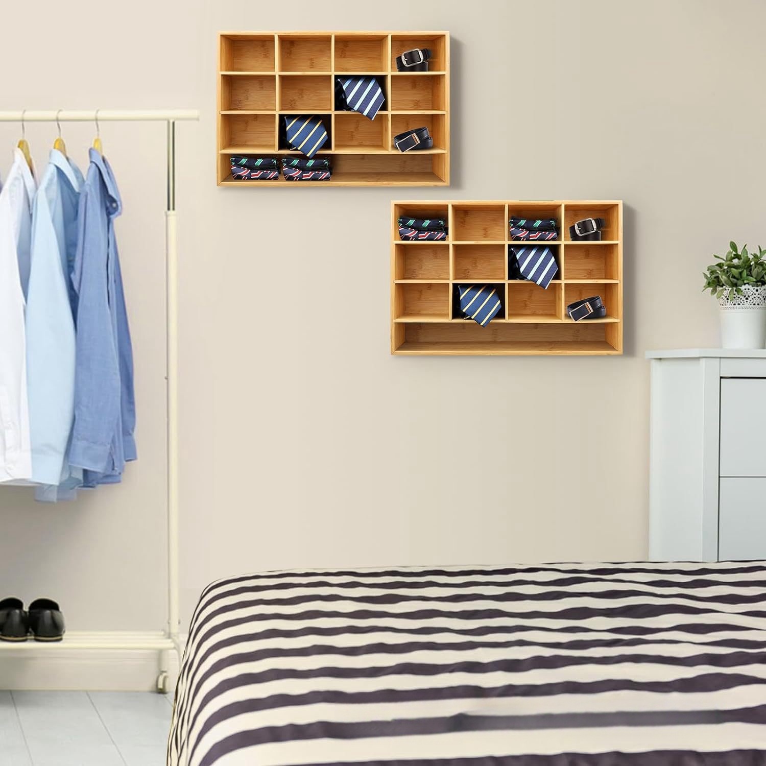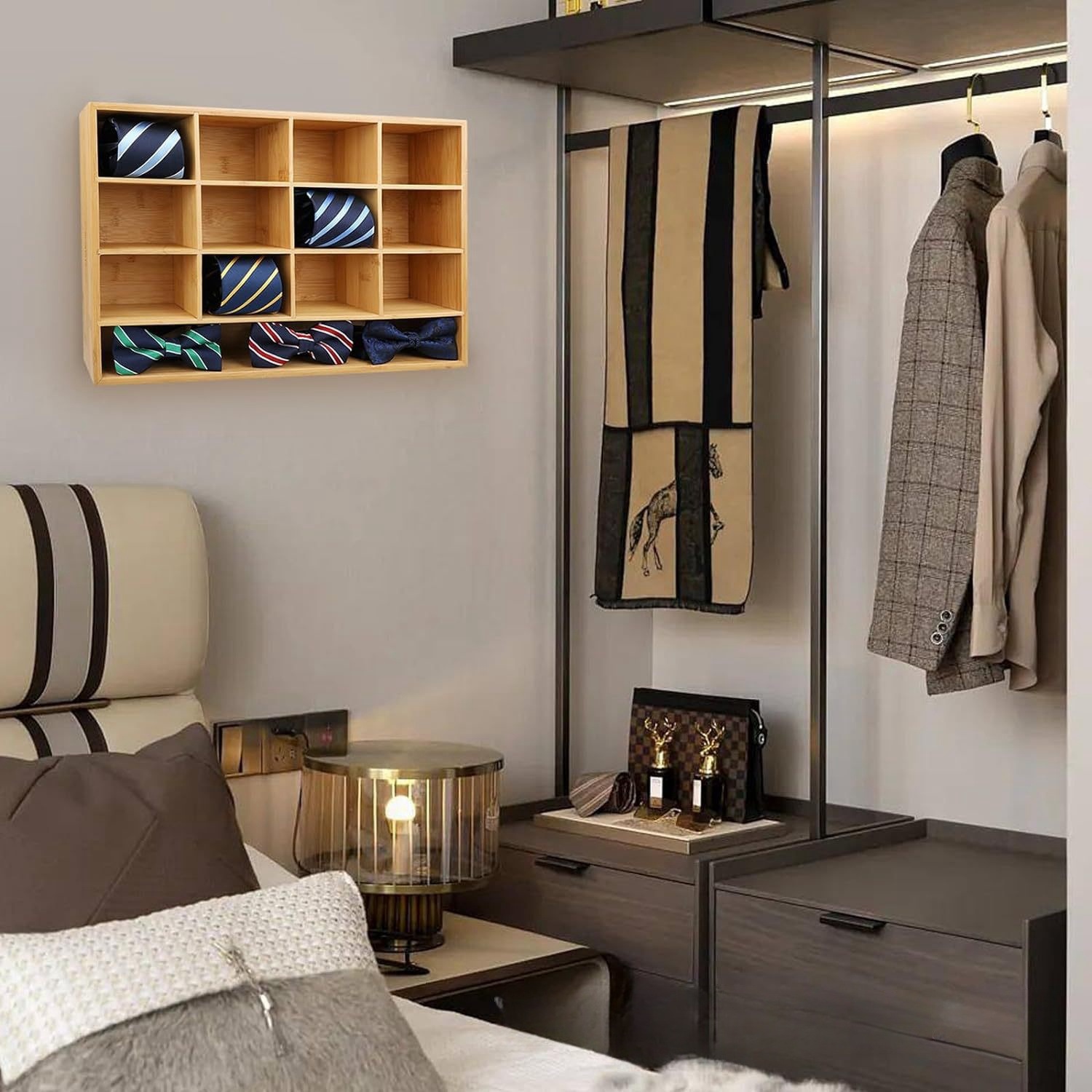 대나무 넥타이 걸이 디스플레이 랙 서랍 양말 보관 랙 홈 벽걸이 형 보관 랙 16 그리드 속옷 보관
