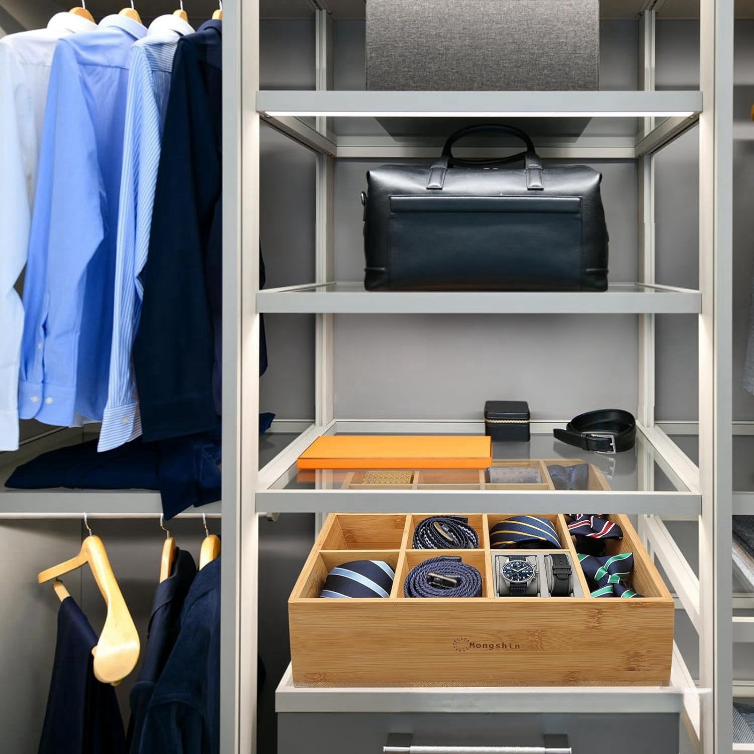 대나무 넥타이 걸이 디스플레이 랙 서랍 양말 보관 랙 홈 벽걸이 형 보관 랙 16 그리드 속옷 보관스토어 가기