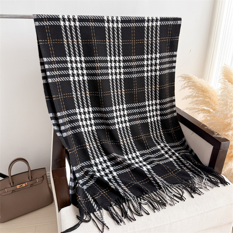 새로운 흑백 물떼새 격자 모조 캐시미어 따뜻한 목도리 스카프 가을, 겨울 패션 분위기 여성용 다용도 술 스카프