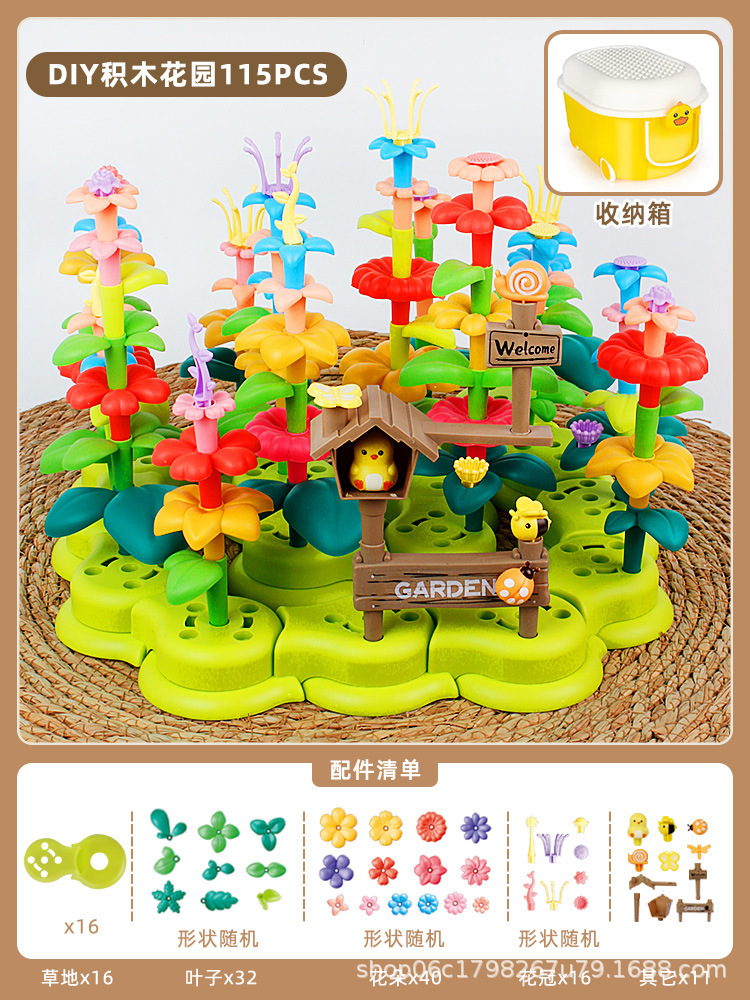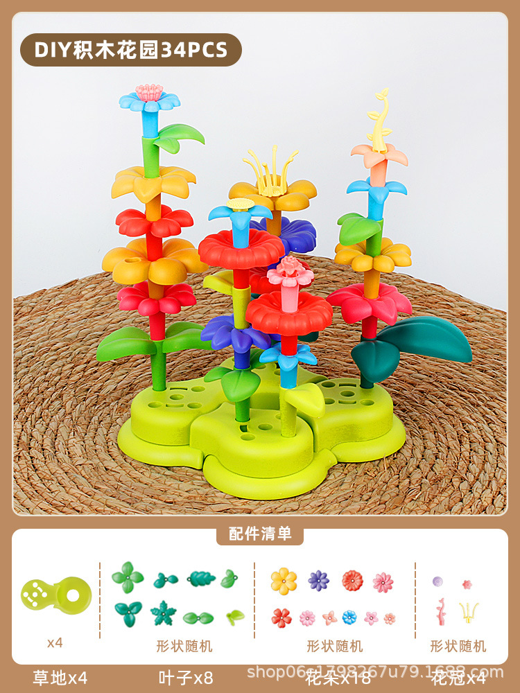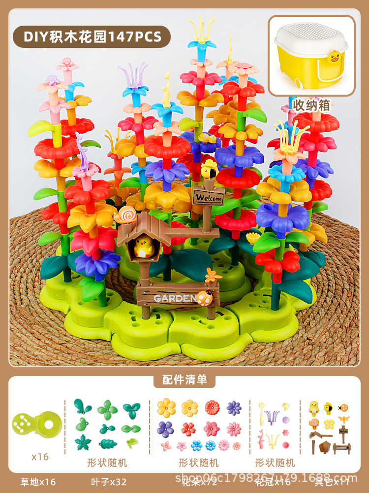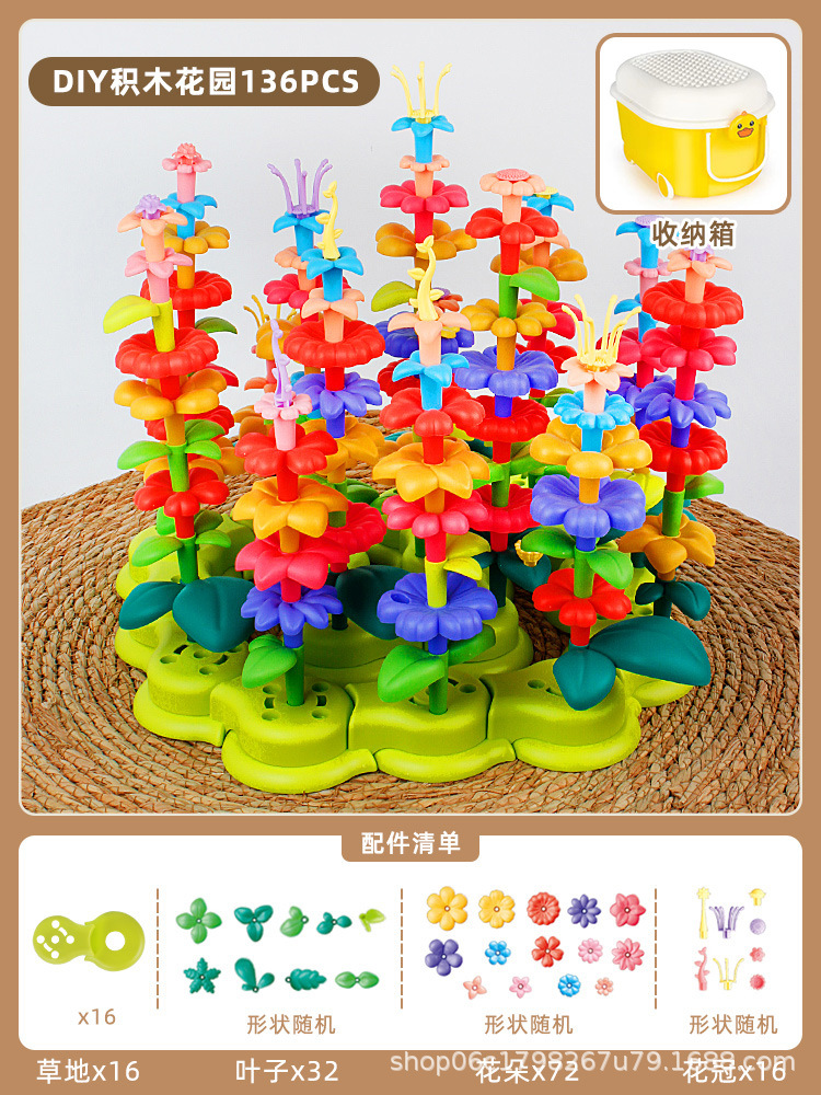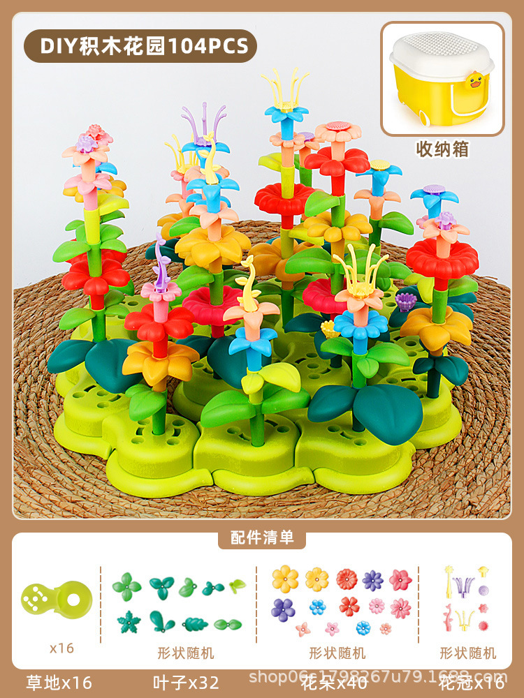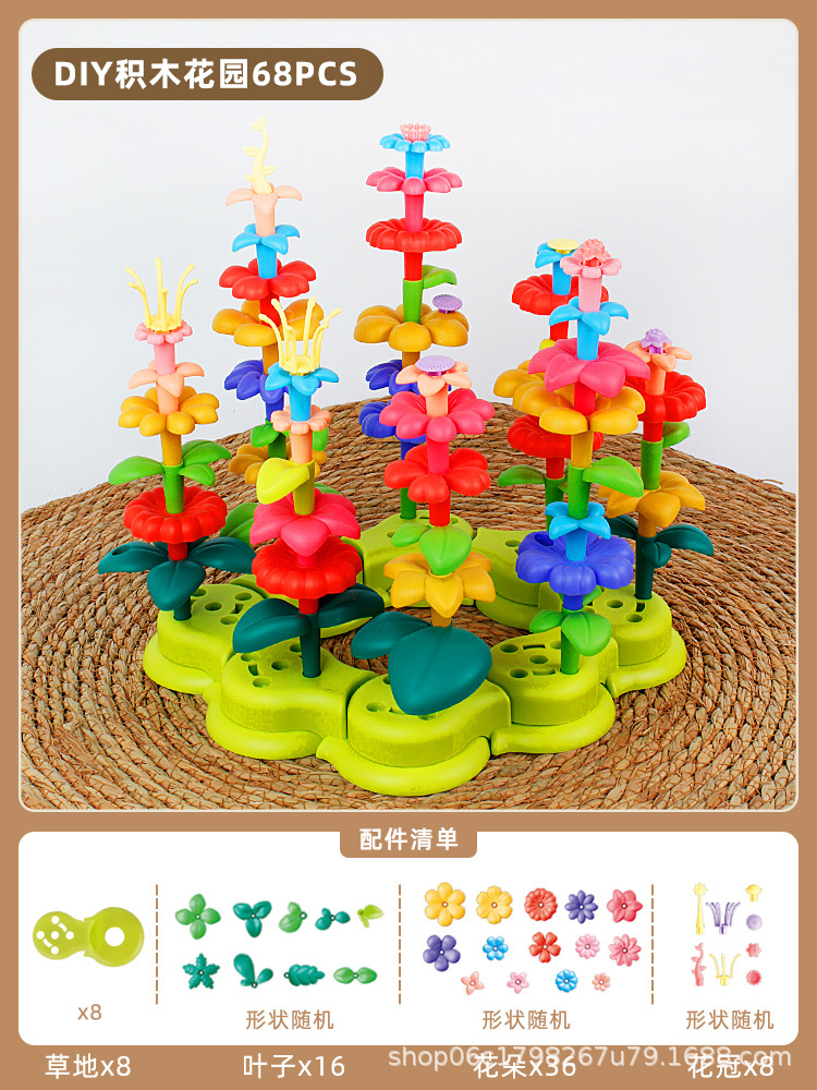 새로운 꽃 빌딩 블록 조립 교육 장난감 소녀의 다양한 정원 DIY 꽃꽂이 어린이 청하이 장난감 도매스토어 가기