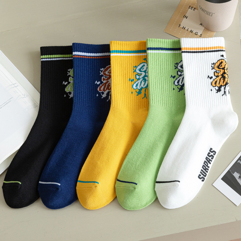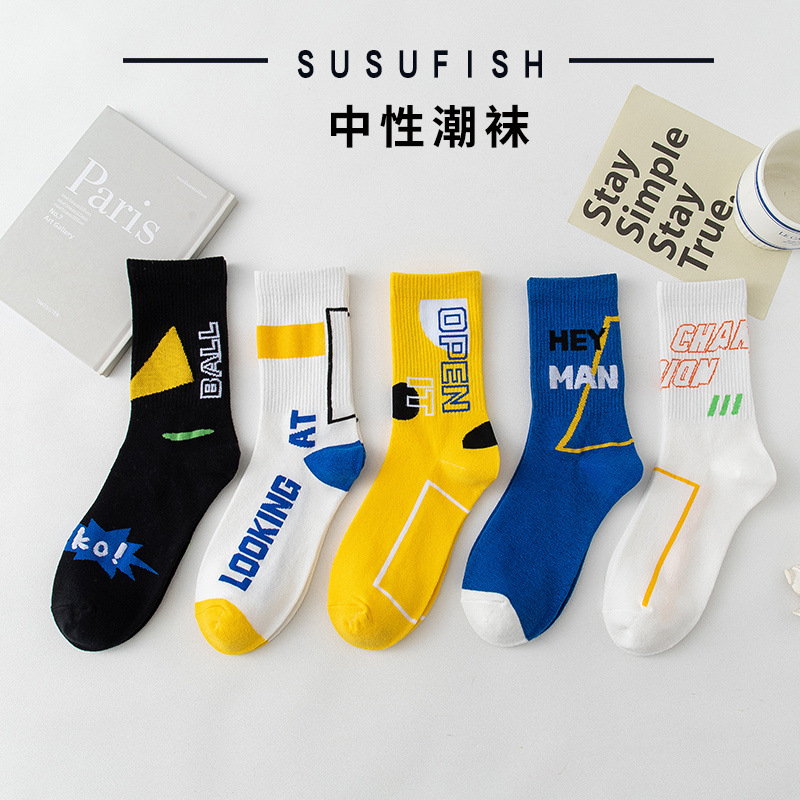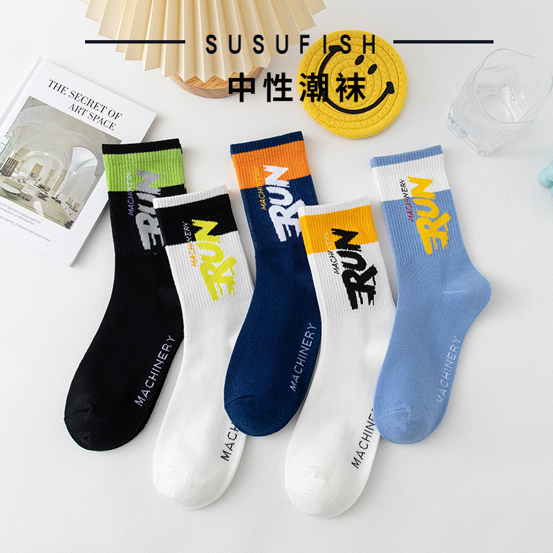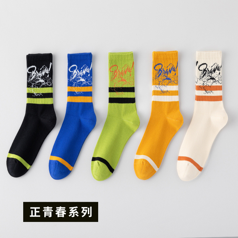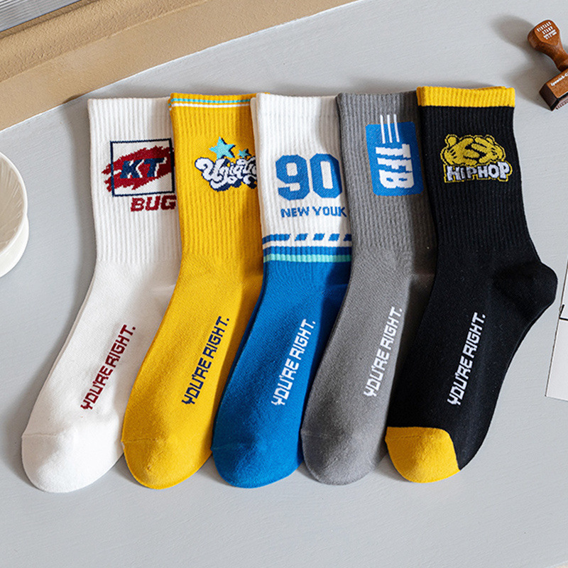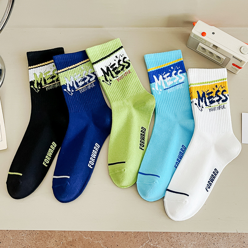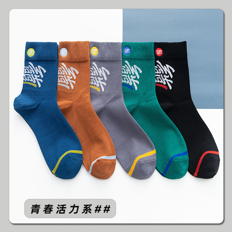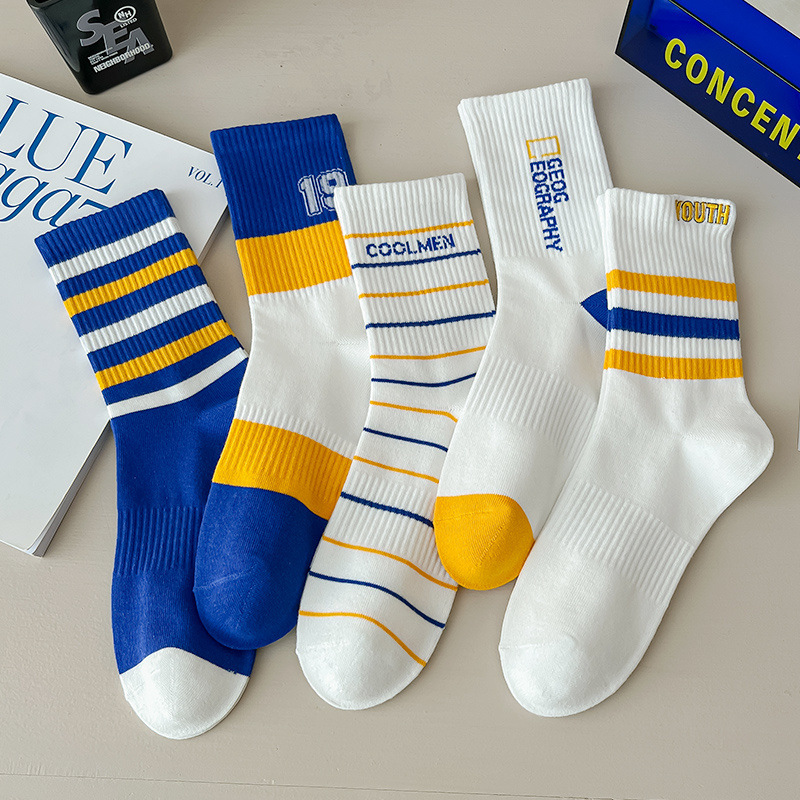 청소년 양말 남성용 종아리 중간 면 가을 따뜻하고 탈취제 및 땀 흡수 기능이 있는 트렌디한 농구 스포츠 긴 튜브 학생스토어 가기