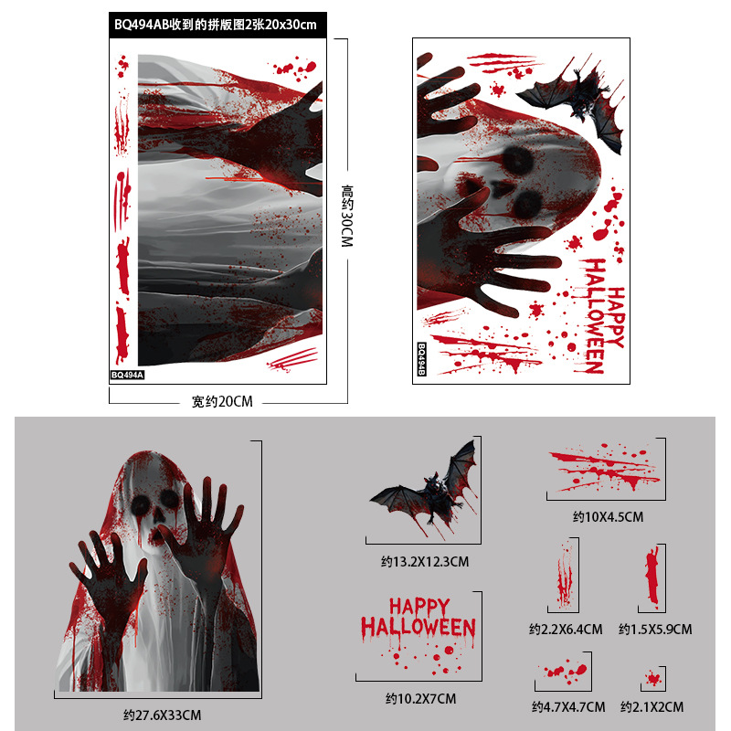 할로윈 장식 유리 스티커 공포 죽음 유령 창 스티커 유령 분위기 레이아웃 피 묻은 손자국 정전기 스티커스토어 가기