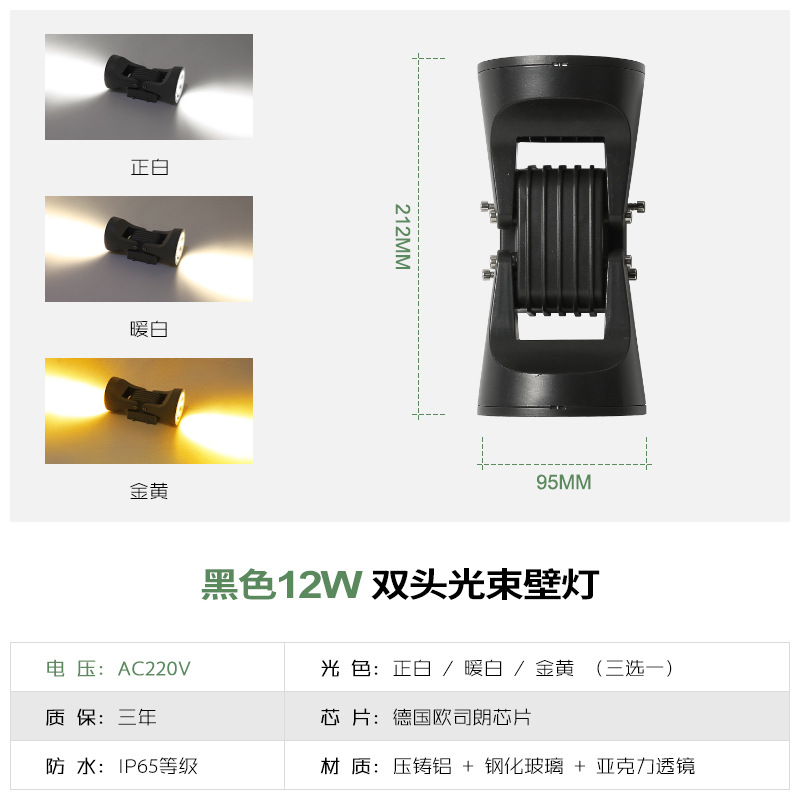 빛의 꽃다발 벽 램프 야외 방수 외벽 입면 조명 건물 조명 장식 스포트라이트 led 더블 헤드 스포트라이트