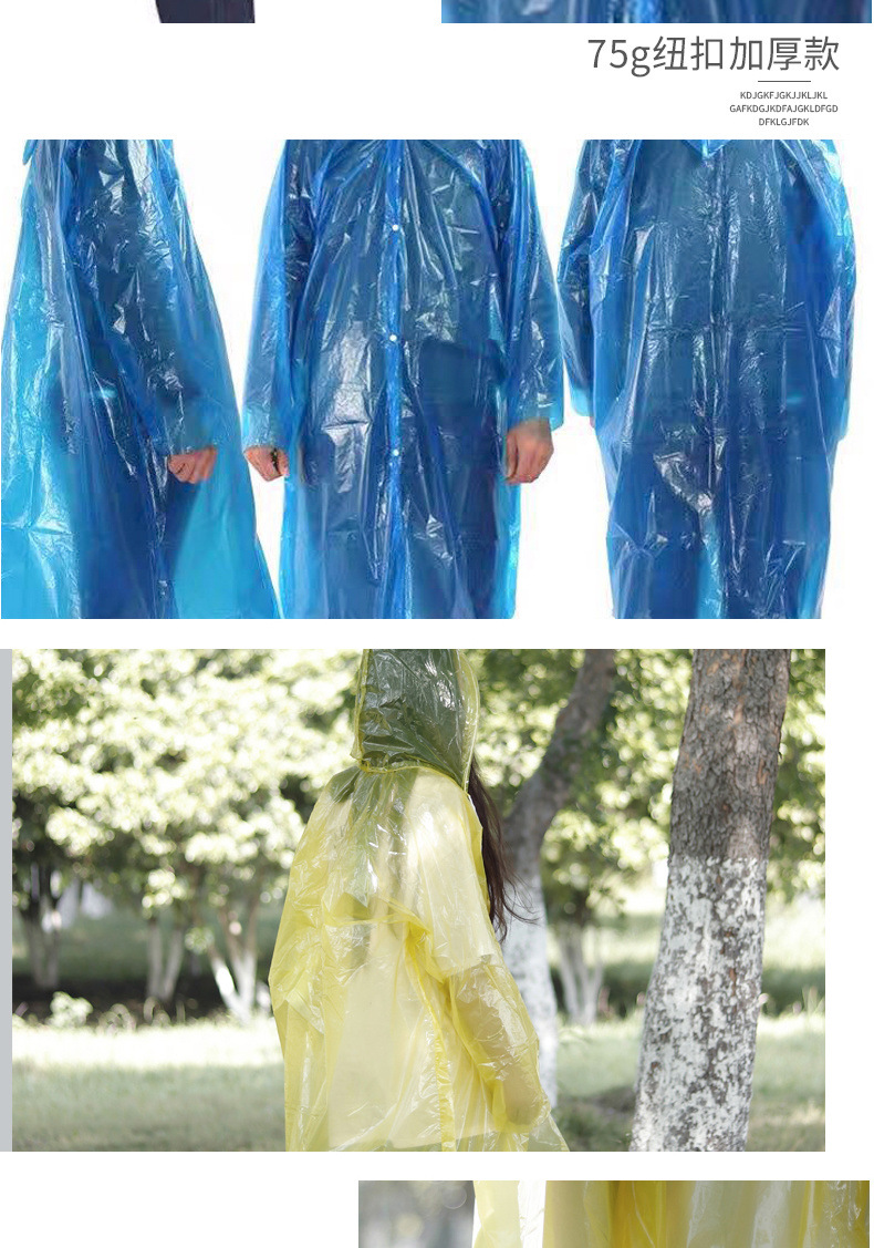 여행용 일회용 휴대용 비옷 워터파크 래프팅 남성용 및 여성용 버튼 스타일 환경 친화적인 편안한 프리 사이즈 도매