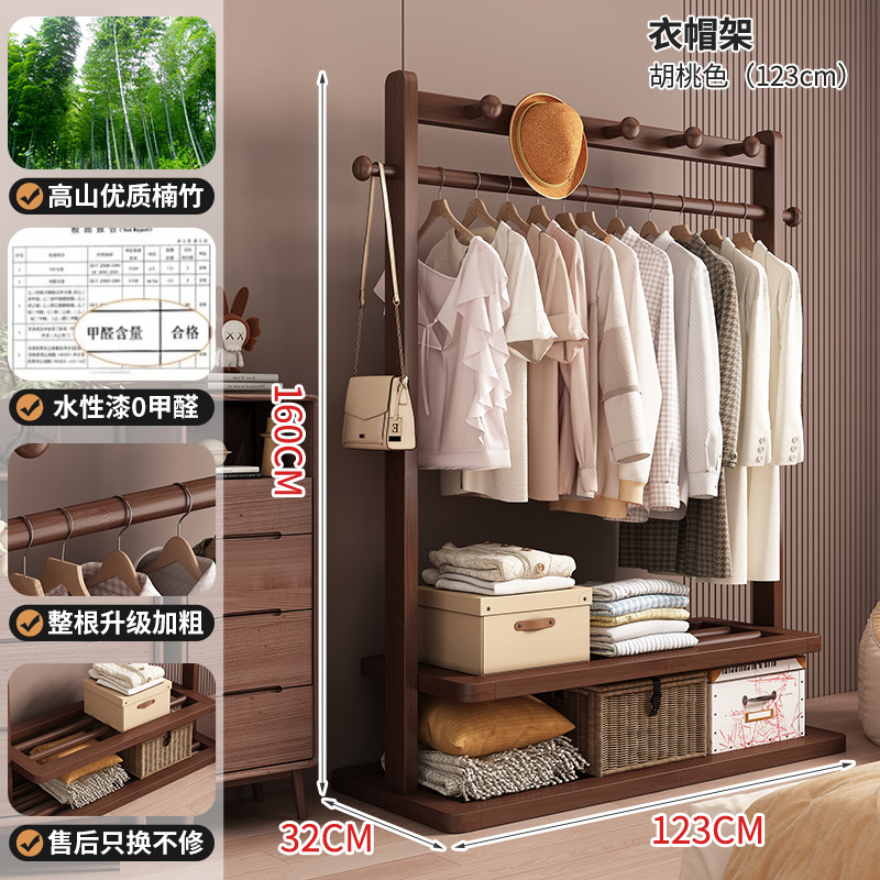도매 단단한 나무 옷걸이 옷걸이 바닥 침실 홈 올드 나무 옷걸이 간단한 옷 건조 랙 실내 옷스토어 가기