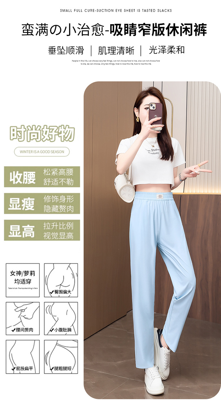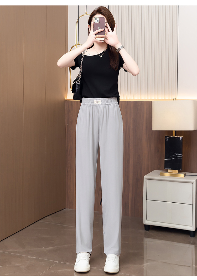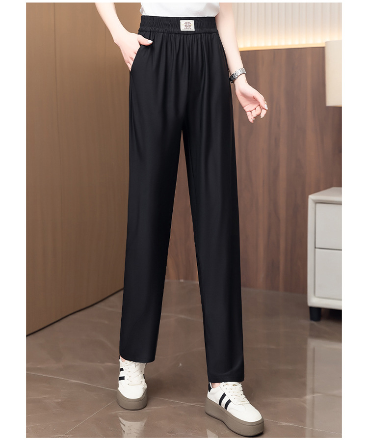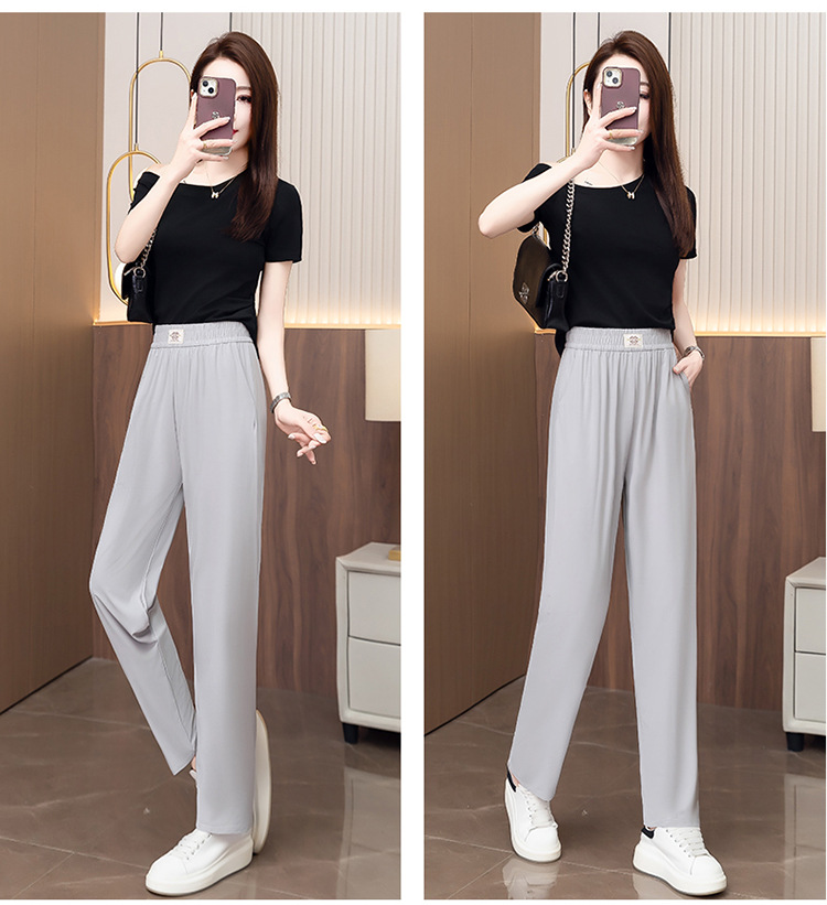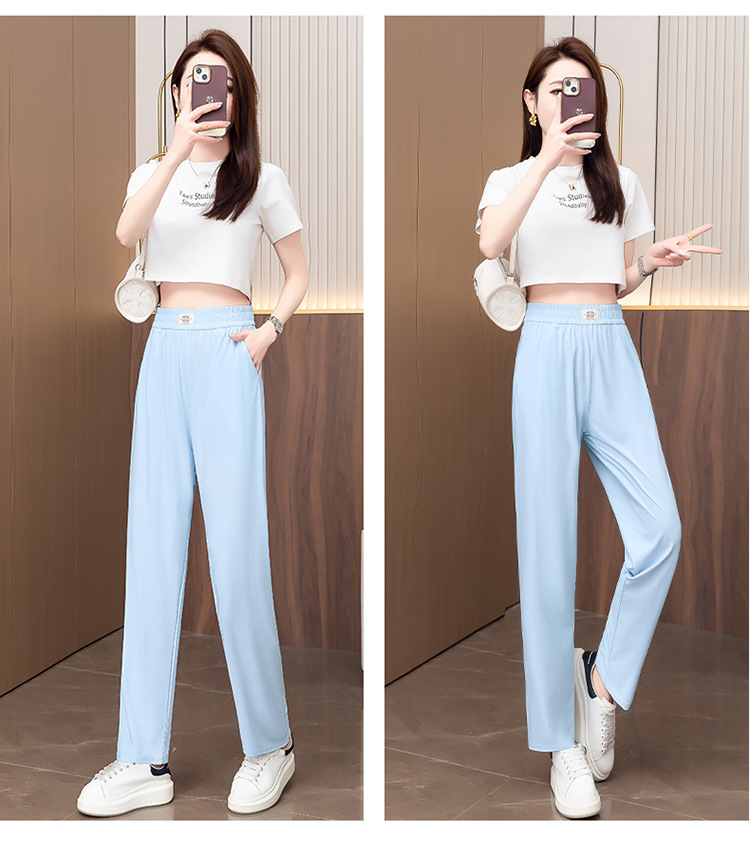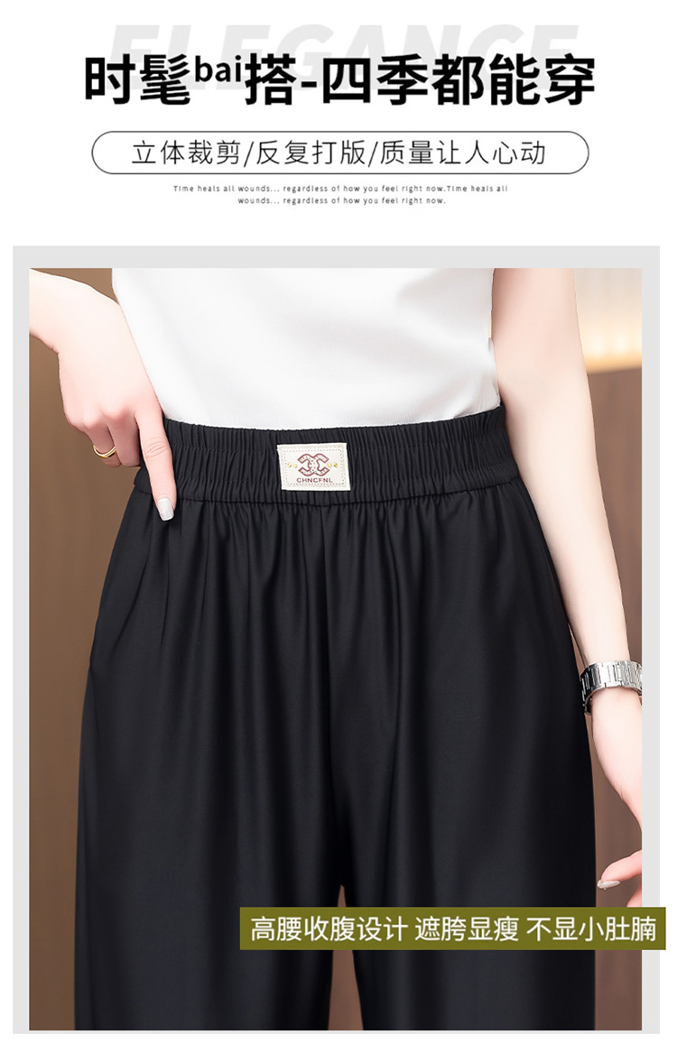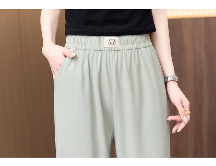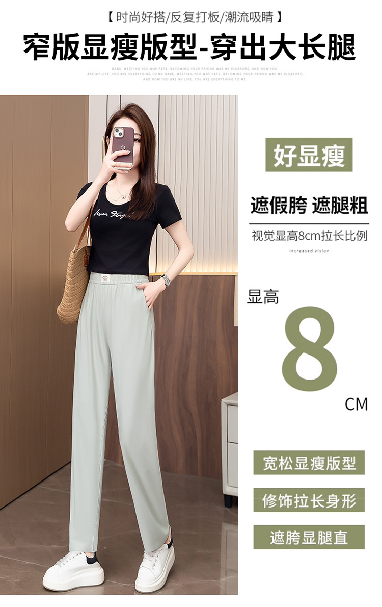 여성용 캐주얼 하렘 팬츠, 하이웨이스트 9부 팬츠, 루즈한 아이스 실크 여름 팬츠, 여성용 신상 여름 얇은 신축성 있는 허리 팬츠스토어 가기